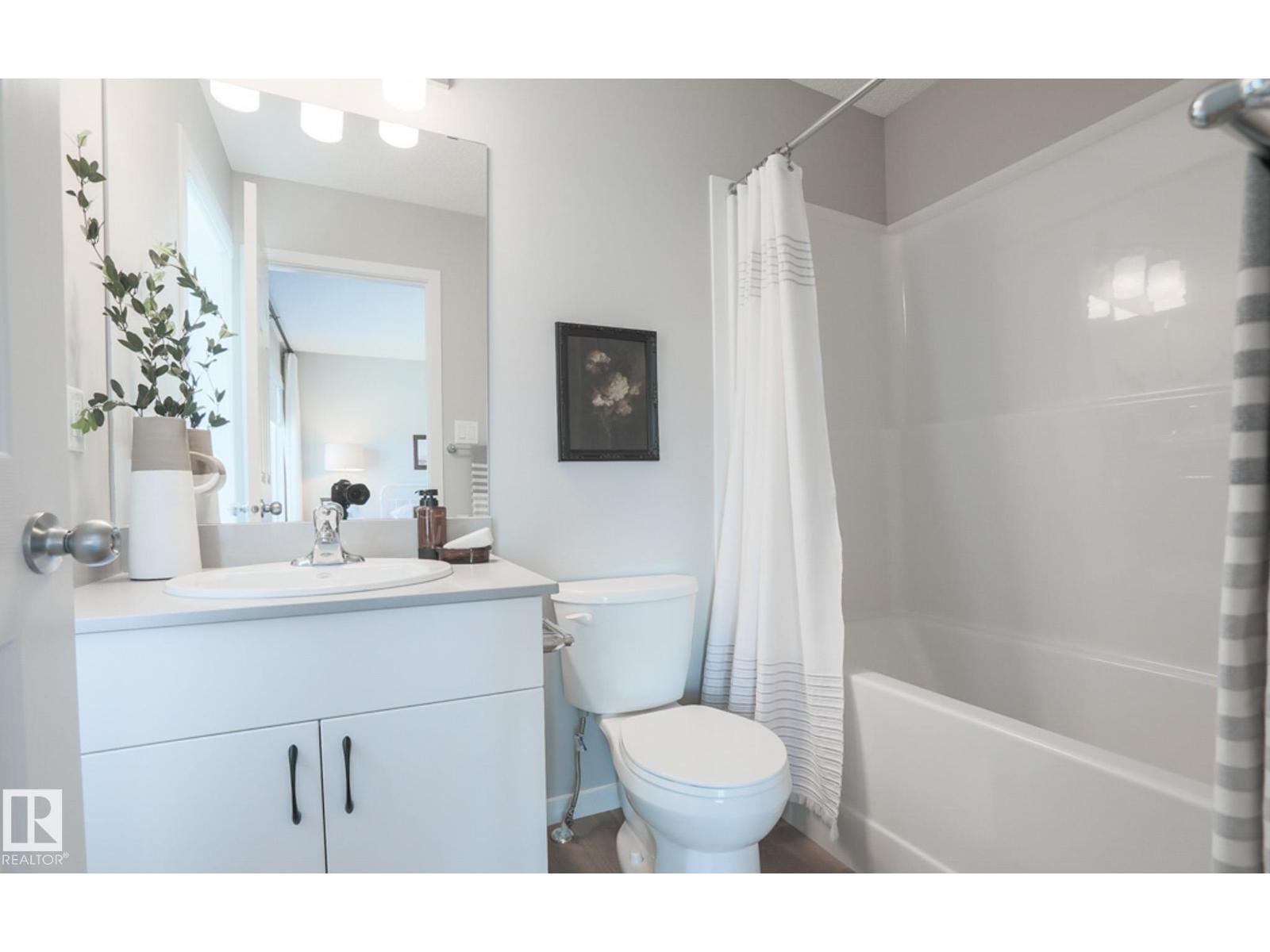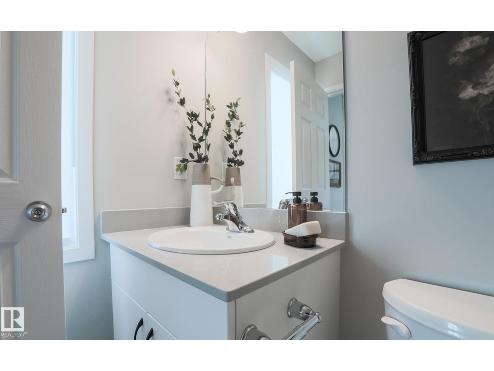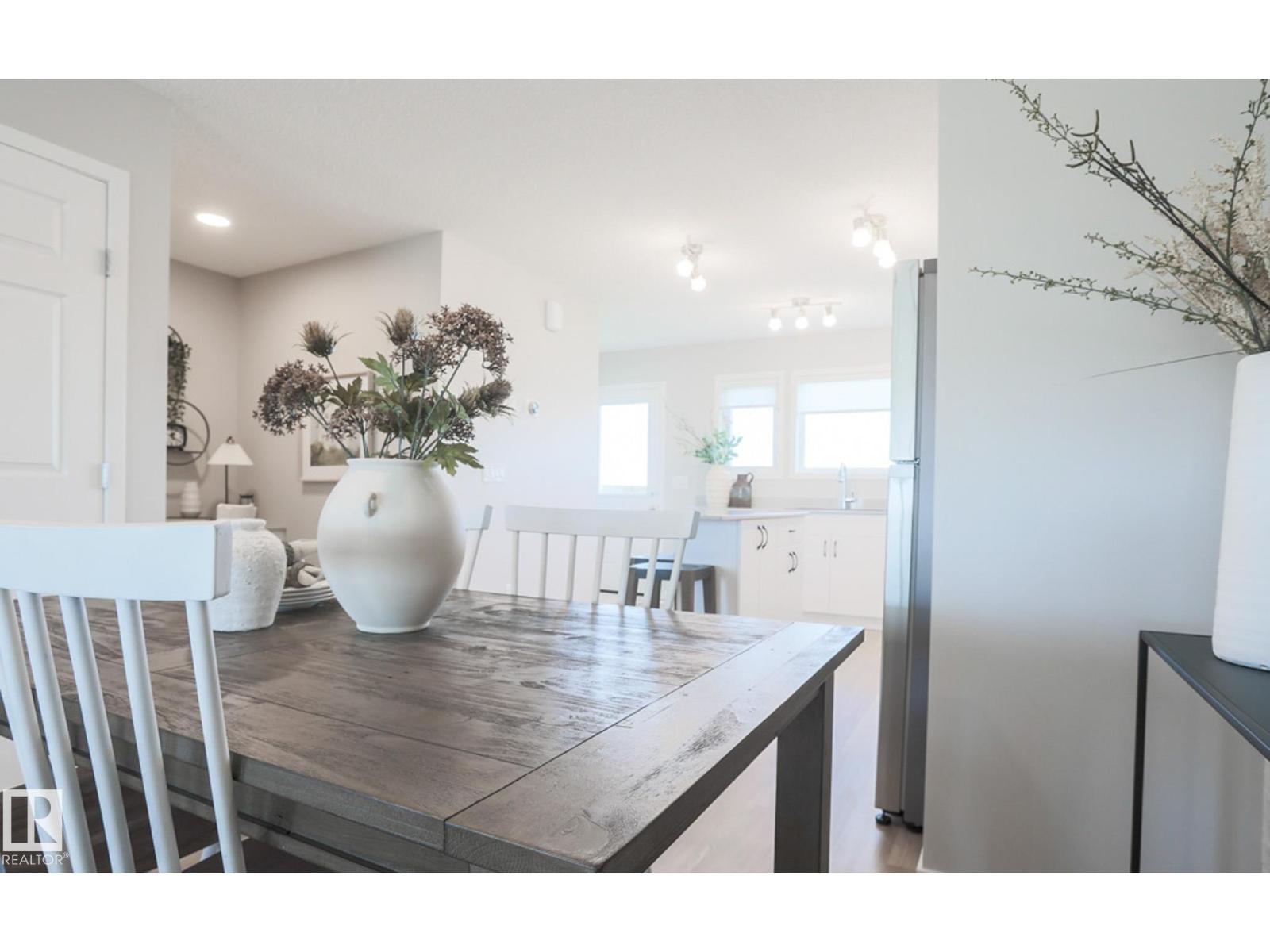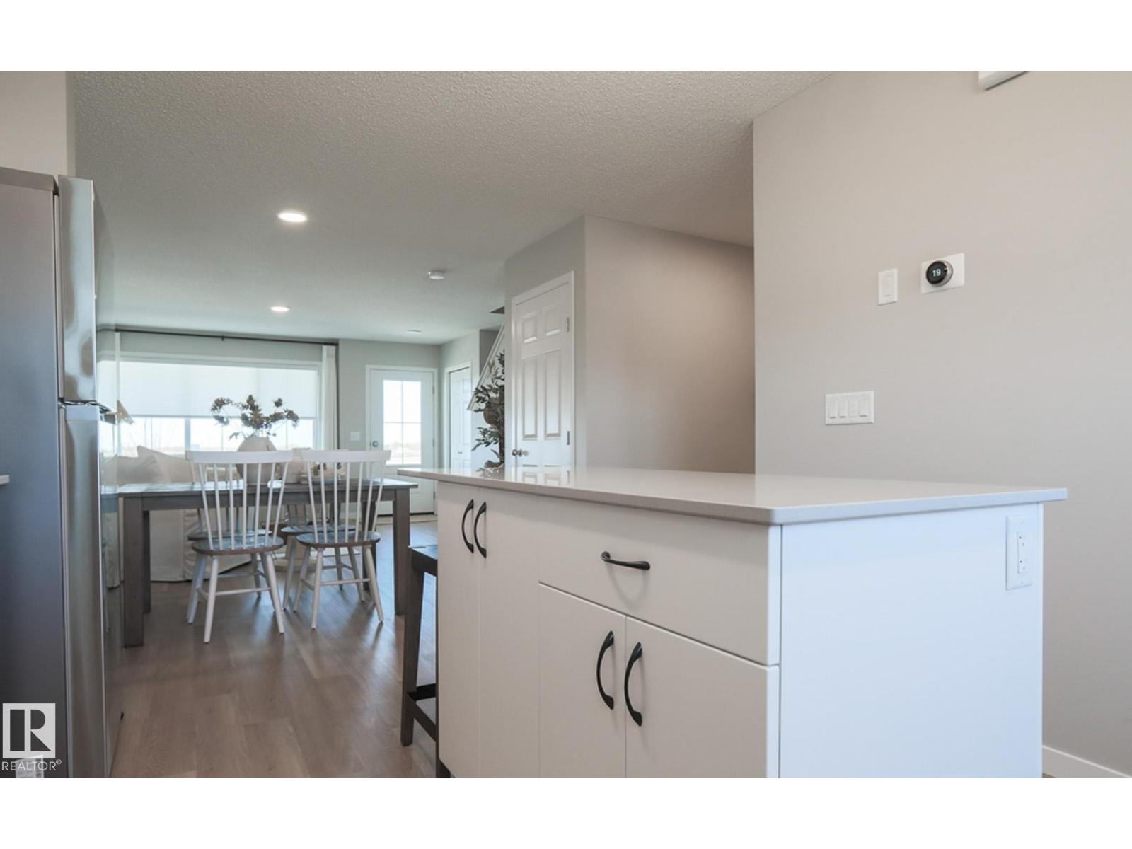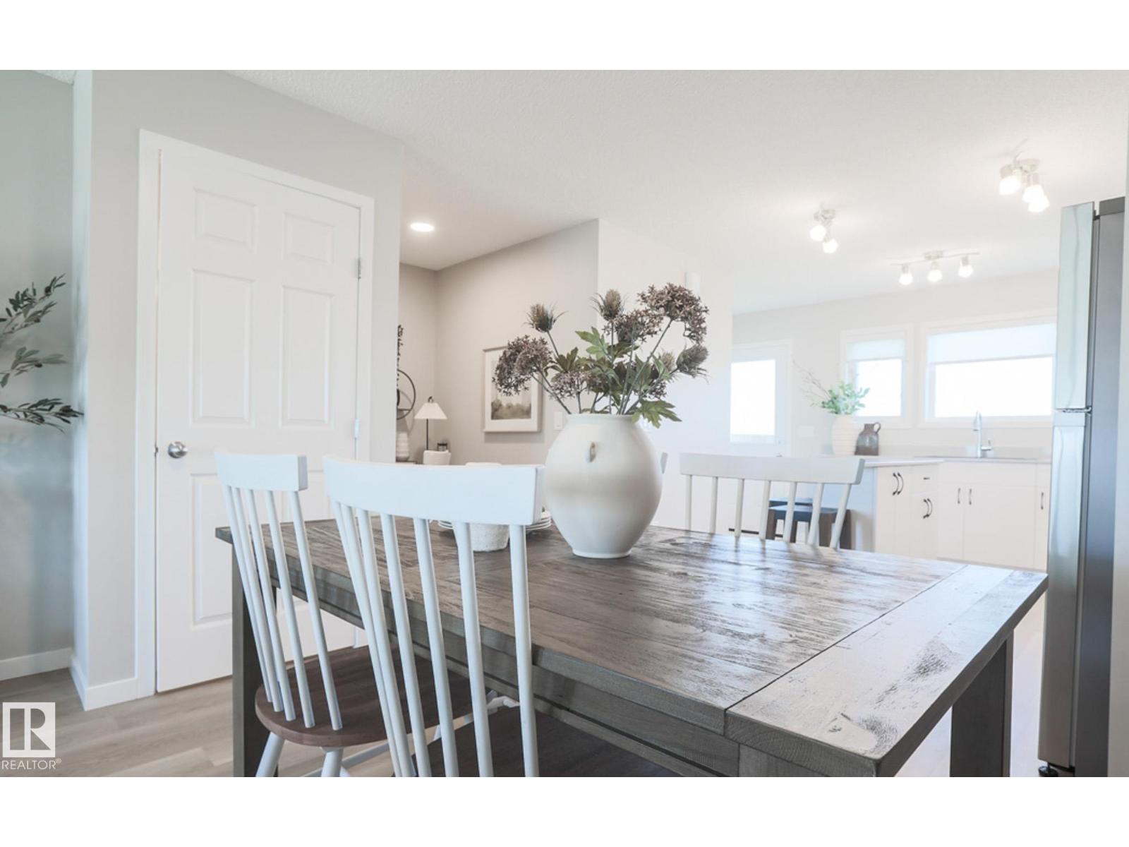 Charming and thoughtfully designed 2-storey built by Sterling Homes, offering modern comfort and smart use of space. The main floor features durable luxury vinyl plank flooring and a bright, open layout ideal for everyday living. Large front and rear windows fill the home with natural light, while the U-shaped kitchen with peninsula seating creates the perfect space for cooking and gathering. A convenient 2-piece bath completes the main level. Upstairs, you’ll find three bedrooms including a bright primary suite with walk-in closet and private ensuite. Upper-floor laundry adds everyday convenience. A separate side entrance and basement rough-in provide excellent future development potential. Parking pad included with option to add a detached double garage. (id:63190)