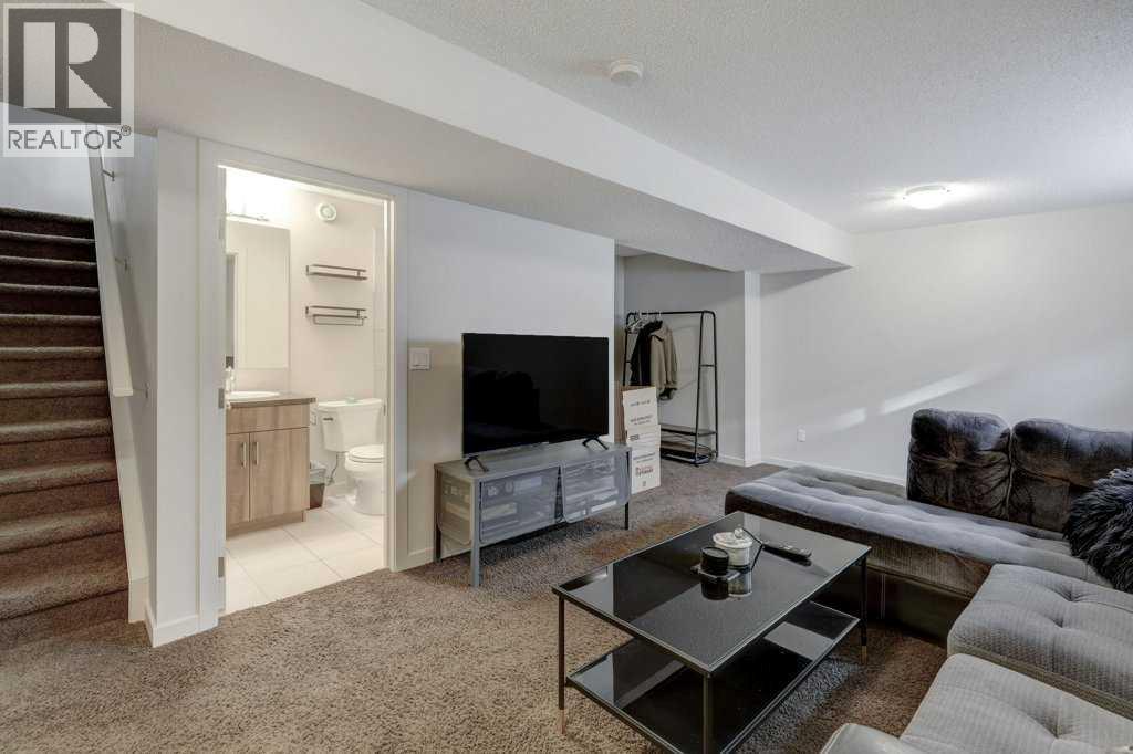 Gorgeous END unit townhome facing a green space and perfectly located in the heart of Auburn Bay! You are greeted with gleaming hardwood floors as you enter, through the living room & kitchen area with plenty of windows for loads of natural sunlight! Bright and Sunny! Functional kitchen with plenty of cabinet & counter space, mosaic tiled backsplash, raised breakfast bar & stainless-steel appliances. The second level features a master bedroom with walk in closet & ensuite bath, a second bedroom & another full bathroom. Up to the third level & you will find a huge, sunny loft/bonus room area that can be used as a rec room, bedroom, etc. The lower level is also fully finished with a rec room and another full bathroom as well as some storage space and laundry area. Front patio area is perfect for BBQing & entertaining! This home is steps to the school and a short trip to all the areas amenities, Deerfoot & Stoney Trails, transit, hospital, parks, pathways, theatre AND the lake! (id:63190)