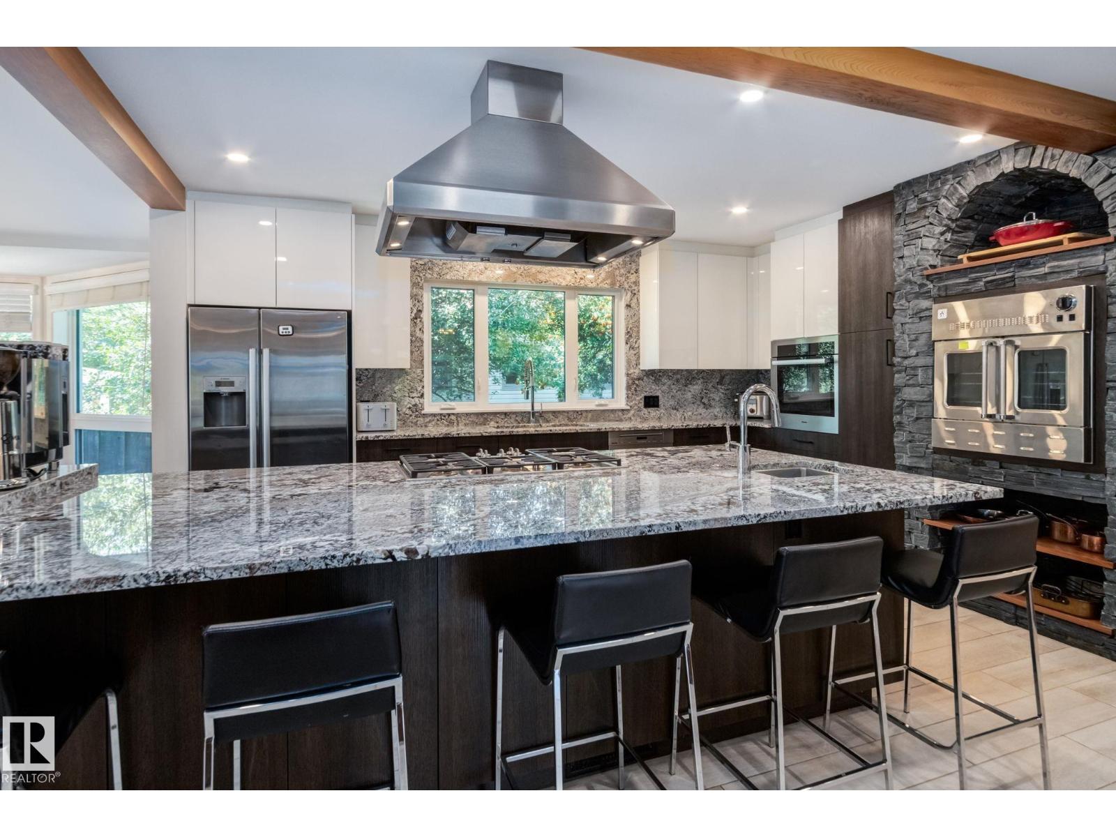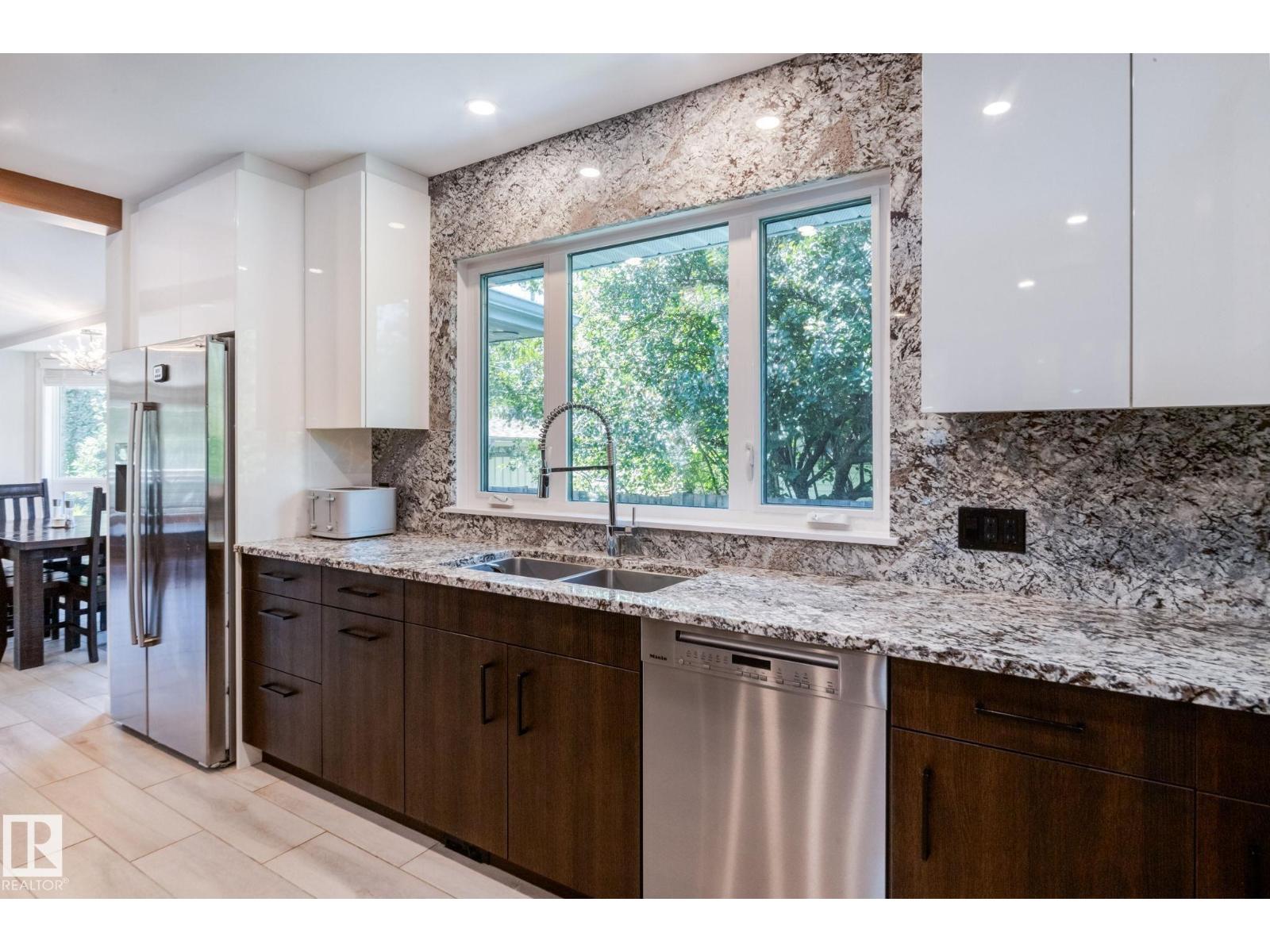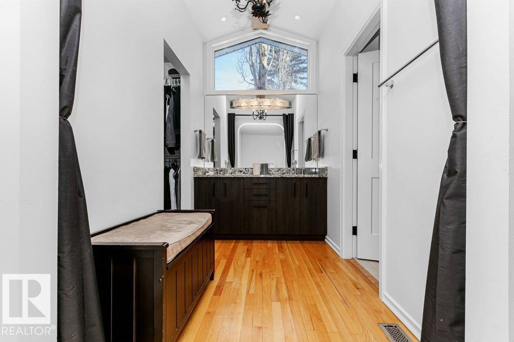 Over 3700 sq. Ft. of modern upgrades & EXCEPTIONAL ENERGY EFFICIENCY in this FULLY RENOVATED 5 bedroom, 3 bath bungalow located in highly desirable EAST CRESTWOOD 1 block from the river valley. Full kitchen reno including: custom cabinetry; a huge 5’ x 12’ island; top-of- the line appliances; 2 built in ovens; a 5 burner gas stove & a plumbed coffee bar! Primary has a 6 pce. ensuite w/ double sinks, seamless glass steam shower, stand alone tub & bidet. There are also 2 fully renovated 5 pce. baths with granite. You’ll love the 2 living spaces on the main …. providing lots of room for the family. The sound insulated basement includes: a Theatre room; Family room; 2 bedrooms; a 5 pce. bath & laundry room. All the bones are done as well with no expense spared! Triple pane windows; premium 50 yr. architectural shingles; R40 insulation with 6” foam in walls; R50 in attic; Hardie board; New sewer; new furnace; hot water tank; A/C; electrical & plumbing upgrades; premium security & beautifully relandscaped. (id:63190)