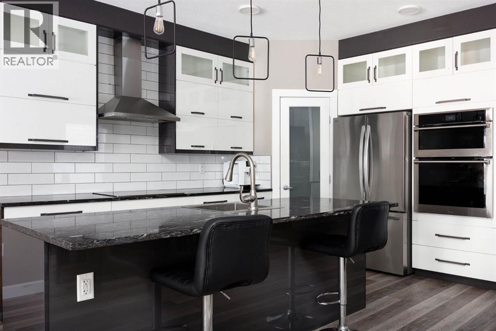 Welcome to 221 Shalestone Way - a beautifully finished home offering the perfect blend of modern design, functional space, and everyday comfort in the heart of Stonecreek! From the moment you step inside, you are greeted by a bright and inviting entryway with elegant detailing that sets the tone for the rest of the home. The main floor showcases a stunning open-concept layout with durable vinyl plank flooring throughout (no carpet home), large windows, and a seamless flow between the living, dining, and kitchen areas. The kitchen is a true highlight, featuring sleek two-tone cabinetry, quartz countertops, stainless steel appliances, and a large central island with seating that anchors the space. Stylish pendant lighting and clean, modern finishes elevate the overall design, while the layout makes it ideal for both entertaining and daily living. The kitchen opens directly into the spacious dining area and living room, where a striking feature fireplace wall creates a warm and cozy focal point. Also on the main floor is a versatile flex space near the front of the home, perfect for a home office, study area, or additional sitting space, along with a convenient powder room. Upstairs, you’ll find a thoughtfully designed layout that includes a spacious bonus room, ideal for family movie nights, a play area, or an office space. You'll be wowed by this primary bedroom, which offers a true retreat, complete with a cozy reading nook as you enter, creating the perfect space to unwind. The ensuite features his and hers sinks, a corner tub, and is complemented by a spacious walk-in closet that provides ample storage. Two additional bedrooms share a bathroom which also offers dual sinks, making it both functional and convenient for busy households The fully developed basement extends your living space even further, offering additional bedrooms, a full bathroom, and a large recreation area that can easily adapt to your lifestyle—whether for entertaining, relaxing, or accommodatin g guests. Outside, you’ll appreciate the large, fully fenced and landscaped backyard, perfect for summer enjoyment and outdoor living. With its modern finishes, thoughtful layout, and move-in ready condition, this home offers exceptional value in a desirable location close to schools, parks, walking trails and everyday amenities that Stonecreek has to offer! Call to book your viewing today! (id:63190)