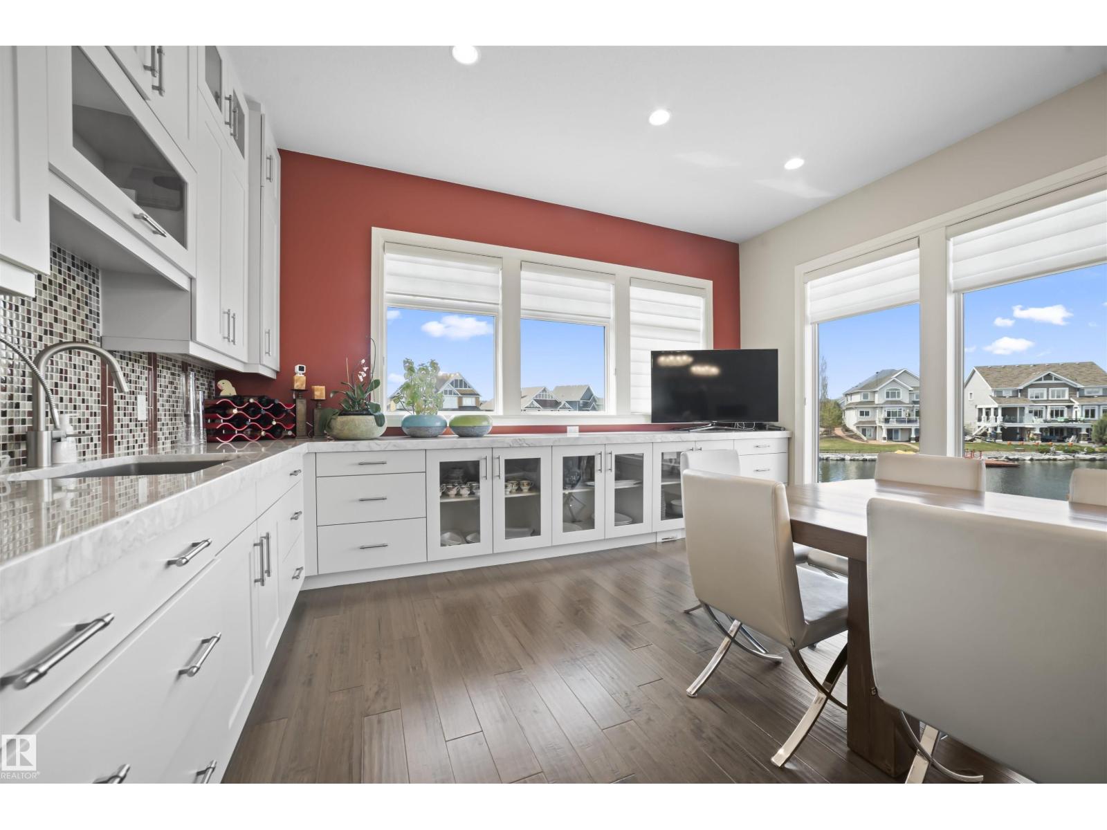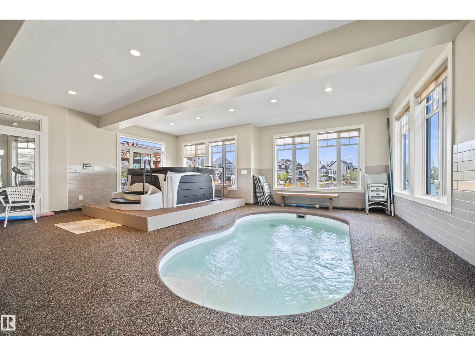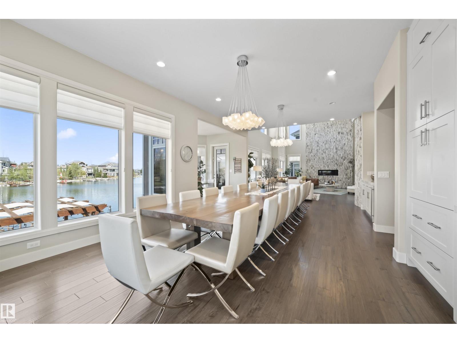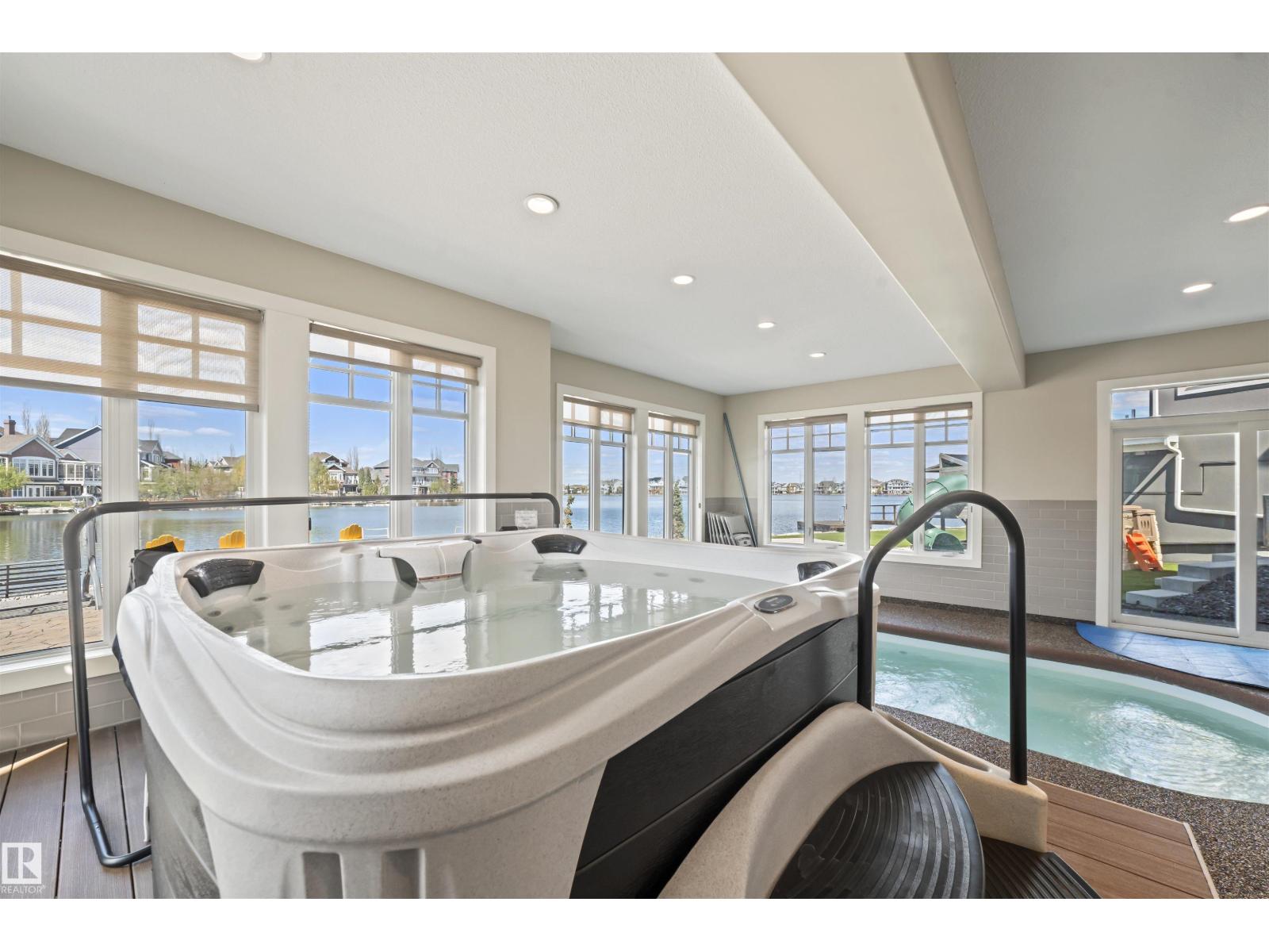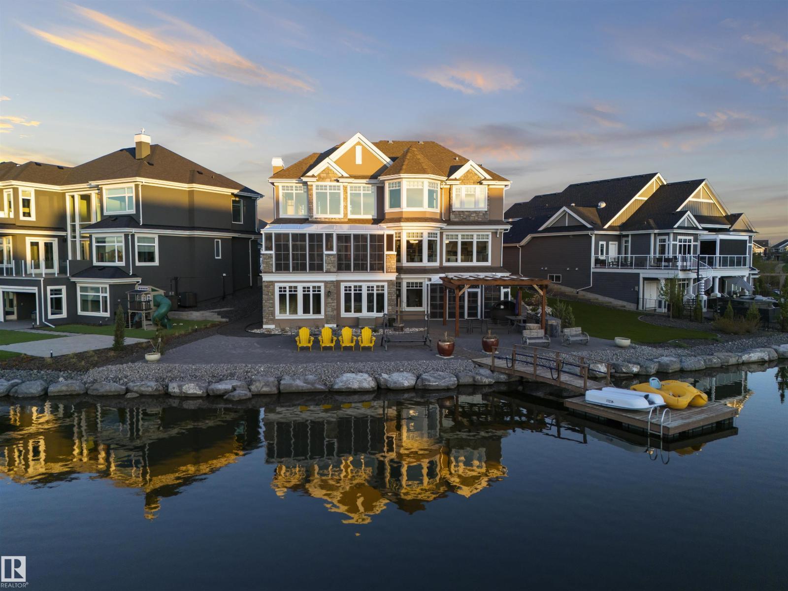 Lakefront, in the city. This is where everyday life starts to feel like something more. Wake up to still water and soft light pouring through soaring windows. Spend your mornings in the sunroom, your afternoons on the lake, and your evenings entertaining in a home designed to bring people together. A kitchen built to perform, a dining space that hosts 16, and living areas framed by views that never get old. Step outside and you’re in your own private resort. Low-maintenance landscaping, multiple gathering spaces, and your own dock create a setting that feels like a getaway without ever leaving home. When the weather turns, the experience doesn’t stop. Your private indoor pool, hot tub, and sun-filled retreat carry it through every season. With over 6,000 SF of finished living space, an elevator connecting each level, a triple garage, and solar already in place, this home balances scale, comfort, and efficiency in a way few can. This is more than a home. It’s a shift in how life feels. (id:63190)