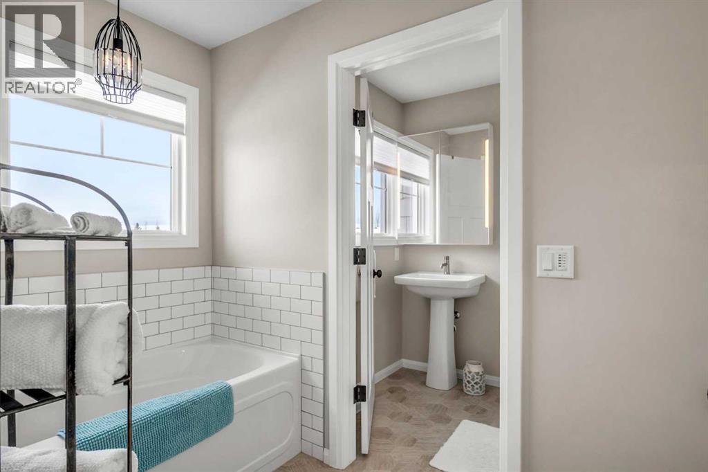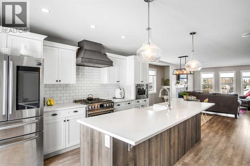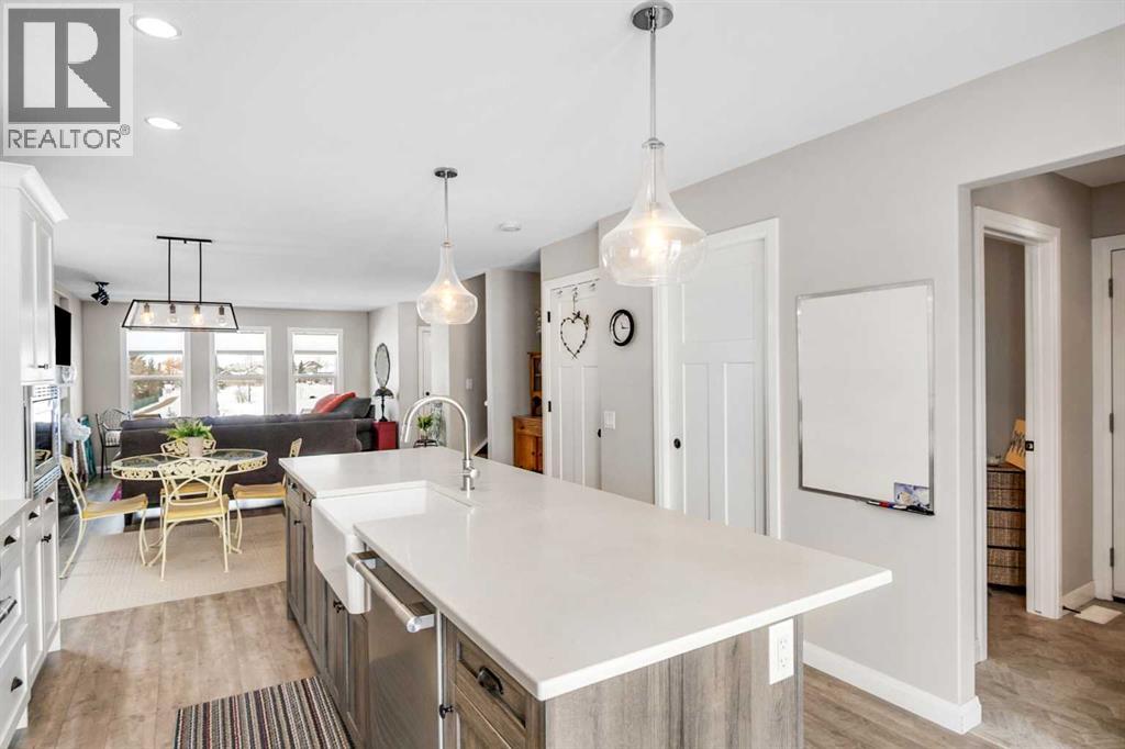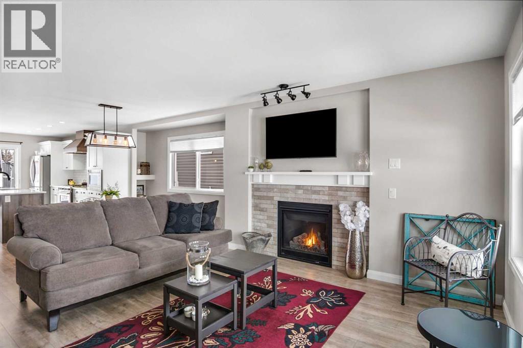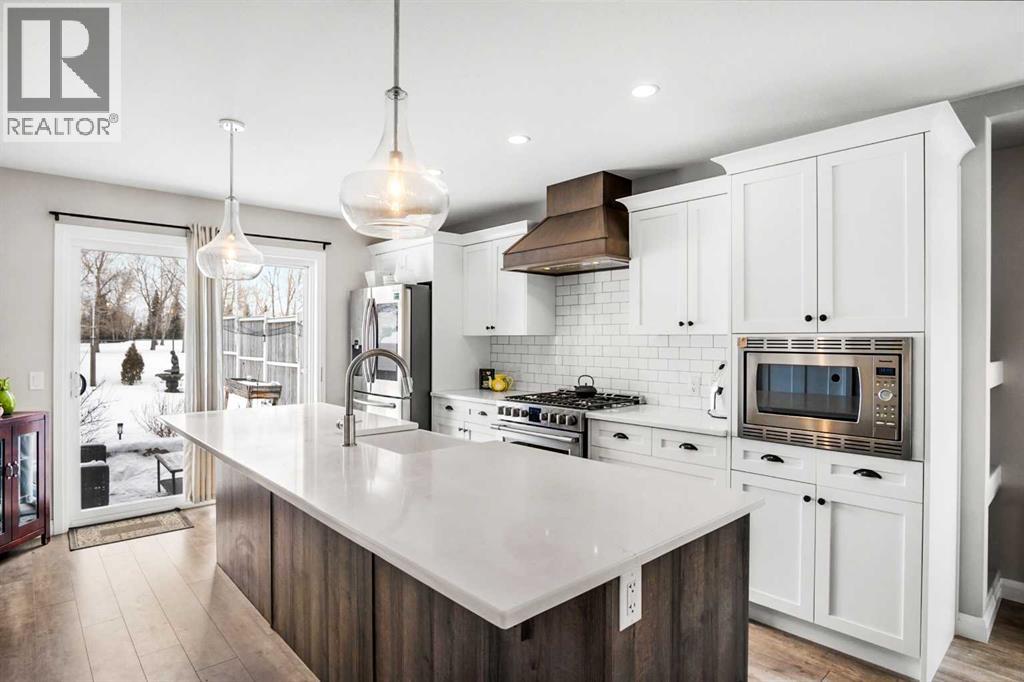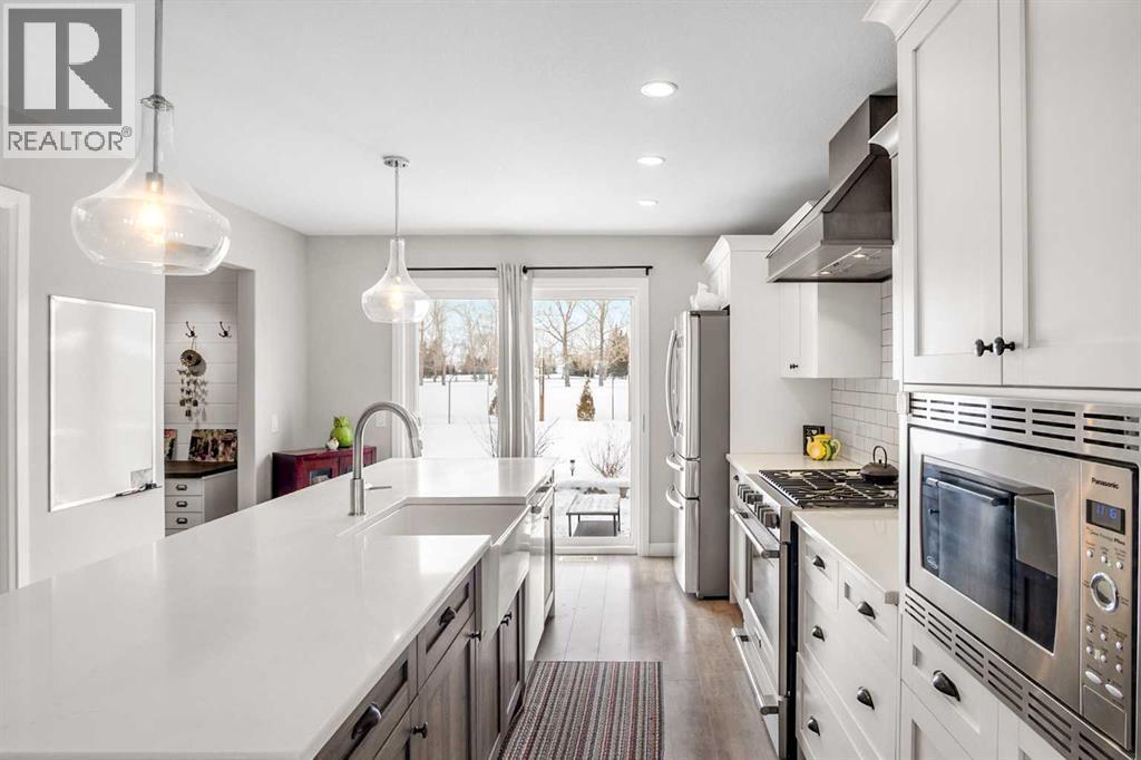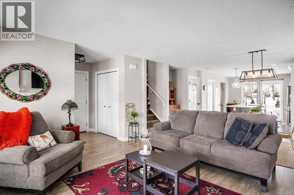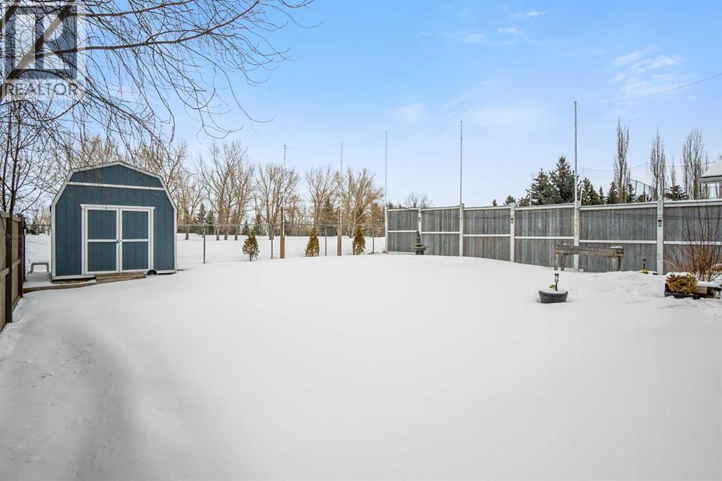 Welcome to this beautifully maintained home backing onto the 17th fairway of the Carstairs Golf Course, with picturesque pond views and a fountain right out front. Built by the reputable Gold Seal Homes, this property features thoughtful custom details that set it apart from typical cookie-cutter homes.Pride of ownership is evident throughout, and the home shows like new thanks to the exceptional care it has received.The covered front deck provides the perfect place to relax and enjoy the peaceful pond view. Step inside to a bright and spacious open-concept main floor designed for comfortable everyday living and entertaining.The inviting living room features large windows and a cozy gas fireplace, creating a warm atmosphere for cooler evenings. The dining area flows seamlessly into the kitchen, which boasts upgraded appliances including a gas range, built-in microwave, and additional modern finishes.From the kitchen and dining area, step out onto the back deck overlooking the fenced backyard and golf course, an ideal space for outdoor dining and relaxing while taking in the beautiful surroundings.A clever walk-through mudroom with powder room connects the kitchen to the garage, offering practical storage and functionality, while an additional garage entry is conveniently located off the front foyer. The extended-length and heated garage provides extra space for a workshop or storage area.Upstairs, the spacious primary bedroom retreat features a well-appointed ensuite with separate vanities, a full bathtub, and a large tiled shower. Enjoy that barrel ceiling which makes the room unique. To the left of the staircase is a bright bonus room with golf course views and vaulted ceiling, perfect for a family room, office, or play area.This level also offers three additional generously sized bedrooms, a full bathroom, and convenient upstairs laundry.The unfinished basement is already framed for a future bedroom and bathroom, giving you the opportunity to easily expan d the living space to suit your needs.Located in a quiet neighborhood in the fast-growing town of Carstairs, this lovely home offers scenic views, thoughtful design, and exceptional value. You’ll definitely want to see this one in person. (id:63190)