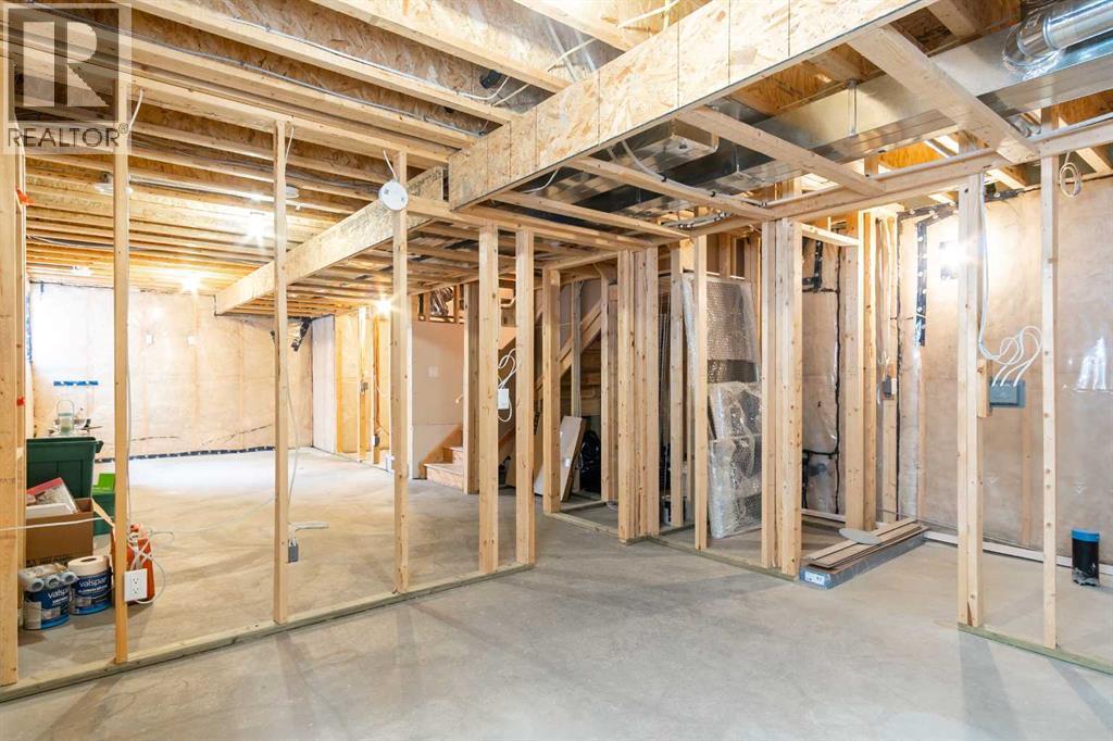 The basement is framed for a bedroom and bathroom with large area for family room