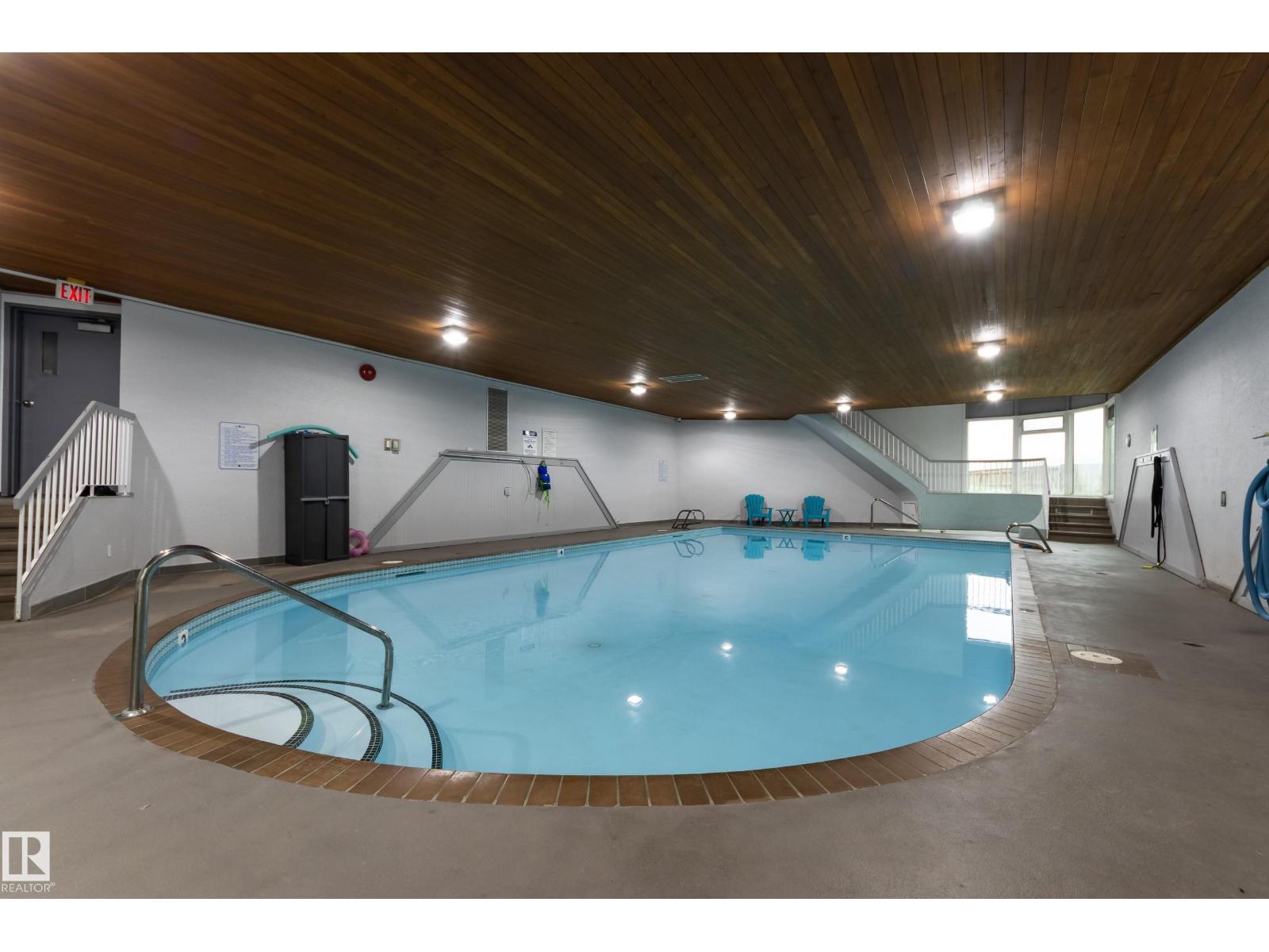 Investors and first time home buyers! This second floor, 3 bedroom and 2 full bath condo features over 1,100 square feet and 2 parking stalls (one covered). Amazing location in Riverbend with plenty of amenities in your complex: indoor pool, hot tub, sauna rooms, social room and elevator. The unit has a very functional layout, one side of the unit has two bedrooms, 4-piece bath and storage closet. The other side of the unit has your private primary suite (with room for an office space) and 3-piece ensuite. Galley kitchen (with closet pantry space) leads into your L-shape dining room and living room. North patio exposure with mature trees outside for privacy. Laundry at the end of each hallway. Quick access to Whitemud Drive, Fox Drive, Downtown and UofA. Walking proximity to schools, shopping, amenities, and the river valley. Long term tenant would love to stay. Sorry, NO PETS allowed in this whole complex. (id:63190)