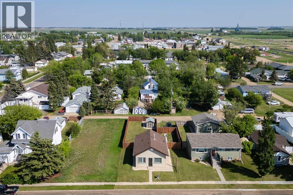 Cute, affordable and updated in Daysland! This adorable home features two bedrooms, one bath and main floor laundry with 9 and a half foot ceilings. Boasting updates to the plumbing (2004), electrical (2005), hot water tank (2024), shingles (2016), siding (2017), a 6 foot high privacy fencing (2019) fresh paint and a brand new bathroom in 2025, this home has a brand new feel to it. You’ll truly enjoy all the natural light that flows into this home. The roomy four piece bath has been completely redone with new tub, vanity and paint, the open kitchen has plenty of counter space for large family gatherings or baking days and ample maple cupboards for all your storage needs. You’ll love the great use of space inside and the private oasis in the back yard! The large, fenced yard will have you spending your summer nights in privacy around the campfire. All the work has been done, all you have to do is move in! (id:63190)