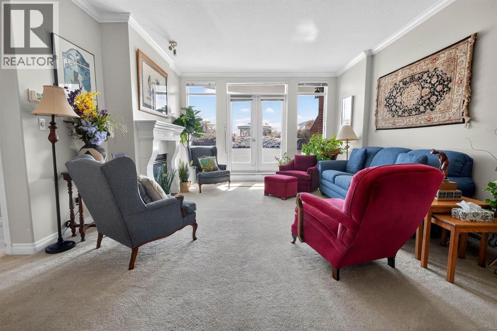Enjoy this rare unit featuring a combination of greenspace and city views from this spacious ground floor walkout condo in The Renaissance, one of Calgary’s most desirable premier adult living condo buildings with an extensive list of amenities. Offering 1,412 sq.ft., 2 bedrooms, 2 bathrooms, plus a den/office, this bright south-facing unit is filled with tons of natural light through large windows overlooking beautifully landscaped greenspace. Inside, the home features hardwood flooring, freshly shampooed carpet, a spacious open living and dining area, a well-sized kitchen with stainless steel appliances and pantry, in-suite washer and dryer, central air cooling and a cozy gas fireplace. The versatile den is perfect for a home office or computer room. The thoughtful layout provides comfortable everyday living while offering plenty of room to entertain. The spacious primary bedroom features a large walk-in closet, and the same amazing views from the patio can also be enjoyed from the bedroom windows, creating a peaceful backdrop year-round. The 4-piece ensuite includes a standing shower as well as a walk-in jetted Jacuzzi tub. The second bedroom is conveniently located across from the full main bathroom. Step outside through the double French doors to your walkout patio with a natural gas line for your BBQ, where the quiet and peaceful setting feels more like stepping into your own private yard than a condo. Ground floor units with this type of outdoor access are rarely available in the building! Additional highlights include a Vacuflo system, secure titled underground heated parking and a large storage room located on the same level just steps from your front door, another rare and convenient feature. Residents enjoy the outstanding amenities of The Renaissance, including 24/7 concierge and security service, fitness facilities, social and recreation spaces such as the games and hobby room, guest suites, a movie theatre, library, car wash bay, and beautifully mainta ined common areas inside and outside with gazebos and BBQ areas. The building also offers a garbage chute on each floor, no more wrestling garbage bags going down to the parkade! You also have secure, heated indoor access to North Hill Centre, which includes Safeway, Shoppers Drug Mart, restaurants, medical and dental offices, banks and more, making grocery shopping, dining, and daily errands effortless year-round. Just steps away is the LRT Station, providing quick access to downtown and the rest of the city. The Calgary Public Library, SAIT, and the Jubilee Auditorium are also just minutes away. A rare opportunity to enjoy spacious living, incredible views, and unbeatable inner-city convenience in one of Calgary’s most sought-after condo communities. (id:63190)