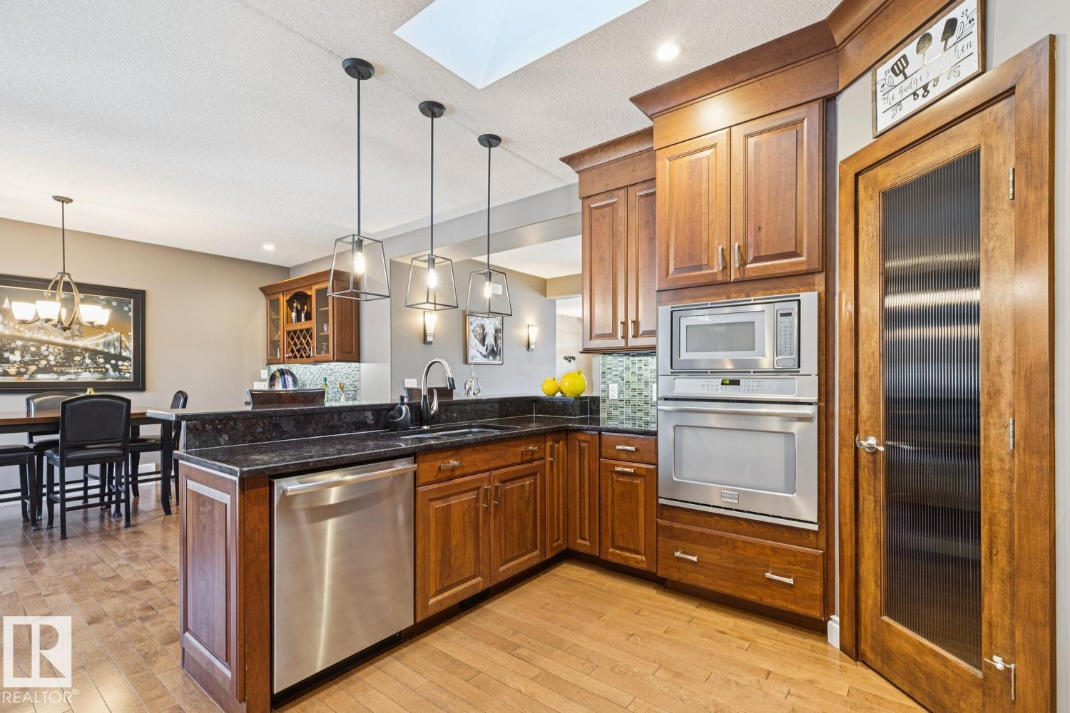 Custom-built 2433 sq ft, 3+2 bedroom home (2012) on a 66' x 130' lot in historic Highlands. Bright open main floor with 9’ ceilings, gas fireplace, designer kitchen with high-end appliances, skylights & breakfast bar, plus 2 bedrooms, 4pc bath, 2pc powder room, laundry & mudroom. Upper level features a spacious primary retreat with walk-in closet & 5pc ensuite. Fully finished basement with rec room, 2 bedrooms & 4pc bath. Upgrades include maple hardwood, cherry cabinetry with granite throughout, Hunter Douglas blinds, heated floors (primary, mudroom & basement), triple pane windows, A/C, HE furnace & boiler, water softener. Landscaped & fenced yard with composite decks & gas BBQ hookup. Heated 28' x 26' triple garage (10.5 ft height)+ extra rear parking. (id:63190)