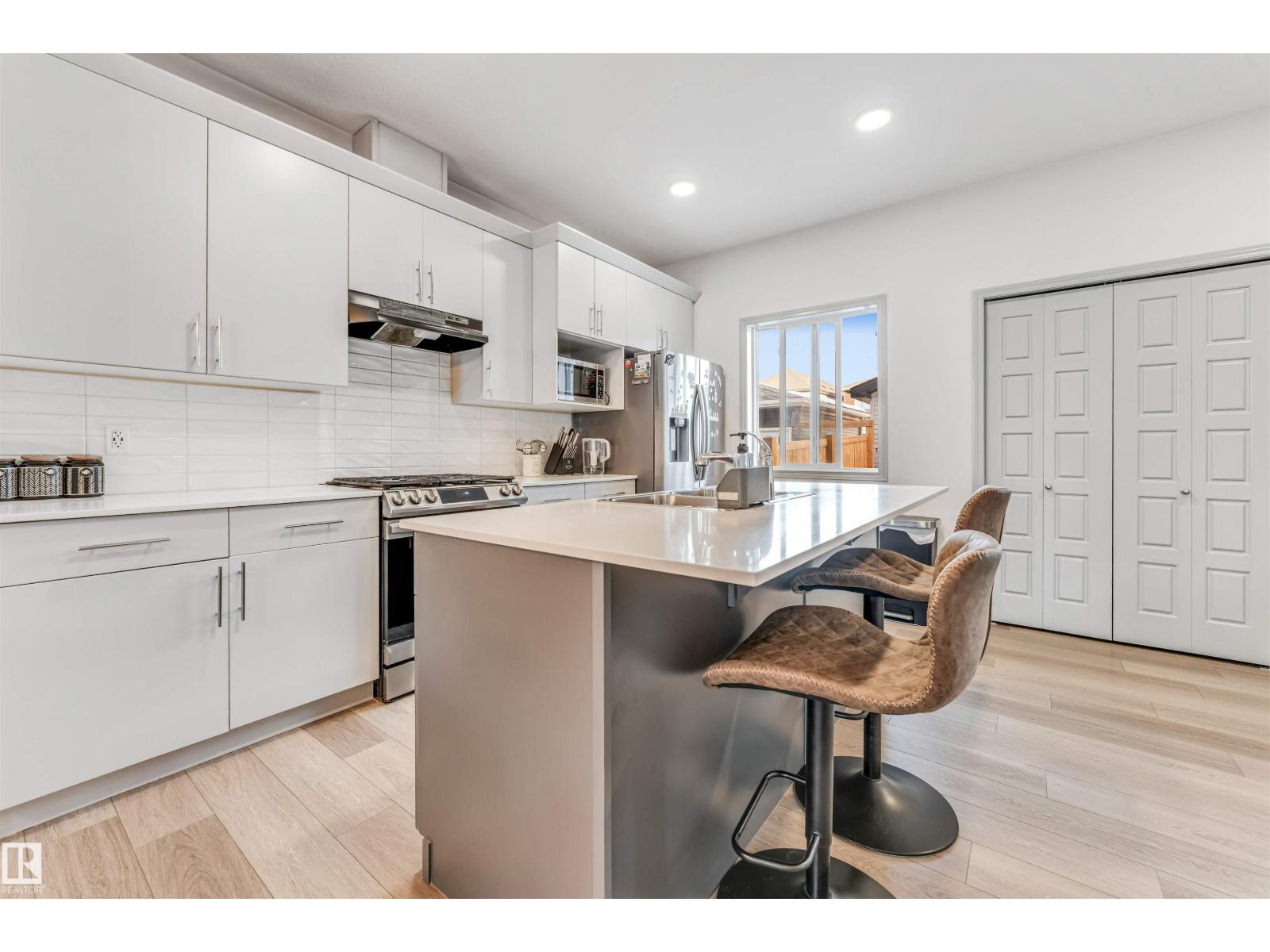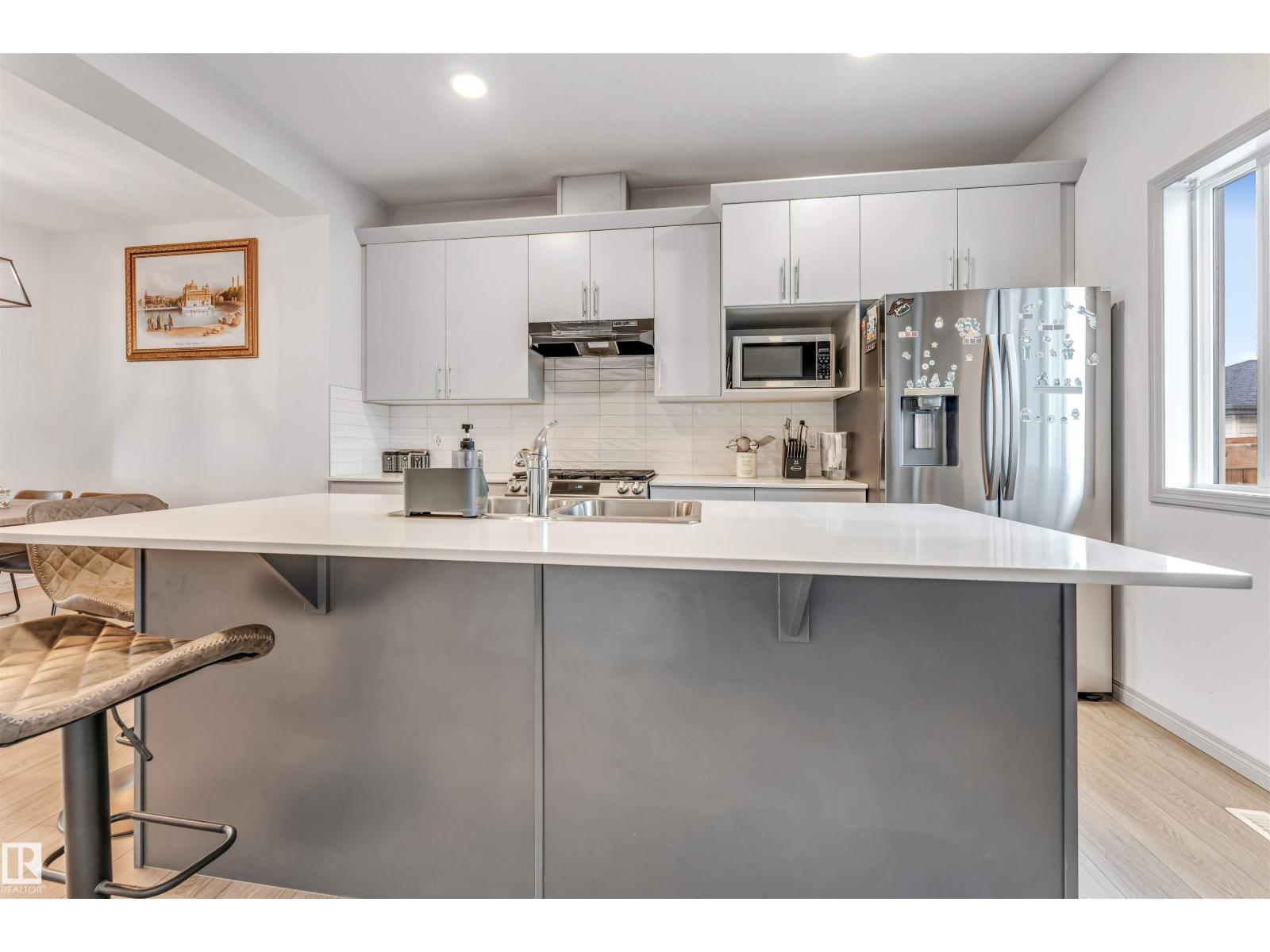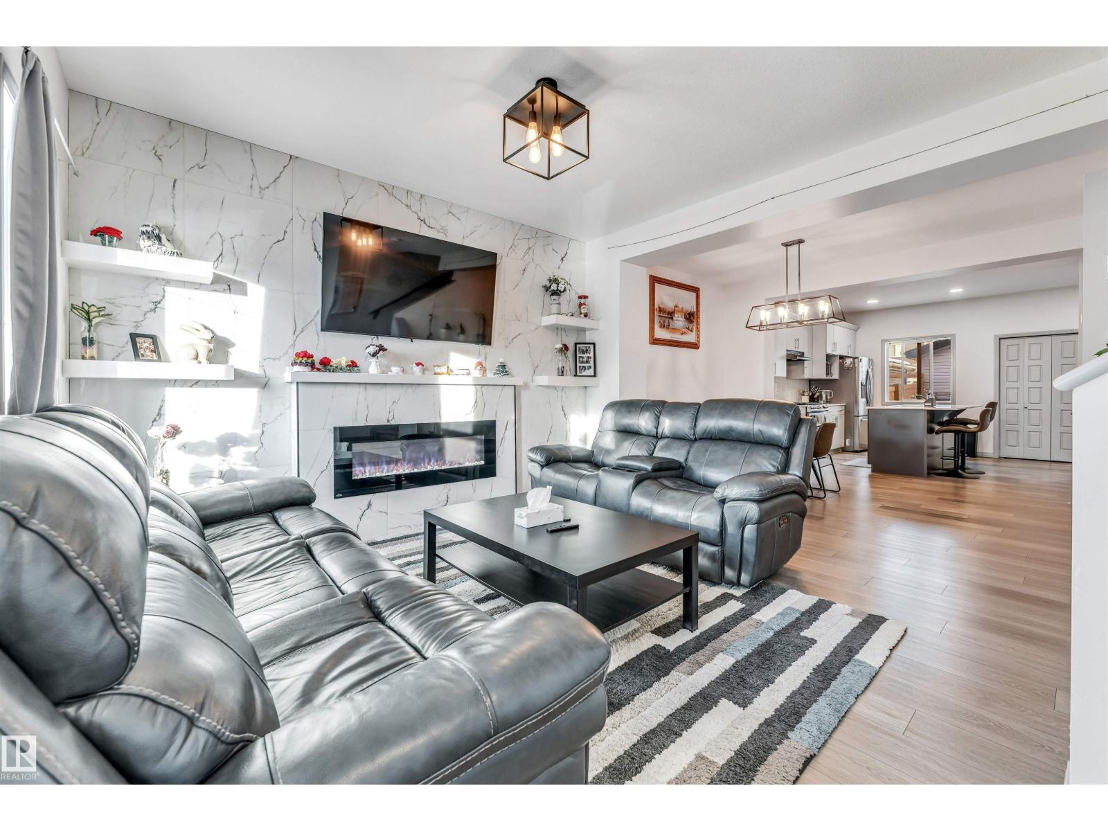 Built by award-winning Montorio Homes in the welcoming community of Walker Summit, this home features a bright, open-concept layout perfect for family living. Spacious living area, w/custom tile surround electric fireplace to keep everyone warm during cold nights, the beautiful kitchen offers an extended island, upgraded quartz countertops, tile backsplash, and soft-close cabinetry throughout, tons of storage space. Enjoy 9’ ceilings and luxury vinyl plank flooring on the main floor, plus a separate basement entrance w/ 2 BED INLAW SUITE w/ 2nd KITCHEN. MAIN home includes 3 generously sized bedrooms, 2.5 bathrooms, and convenient upper-floor laundry. Located just steps from the K–9 Shauna May Seneca School, it’s an ideal setting for families. Walker Summit is a friendly, peaceful neighborhood in Southeast Edmonton w/ abundant green space, ponds, walking trails, schools, shopping, and more. Close to all amenities with easy access to the airport, Anthony Henday, South Common, and Harvest Hills. Home calls!! (id:63190)