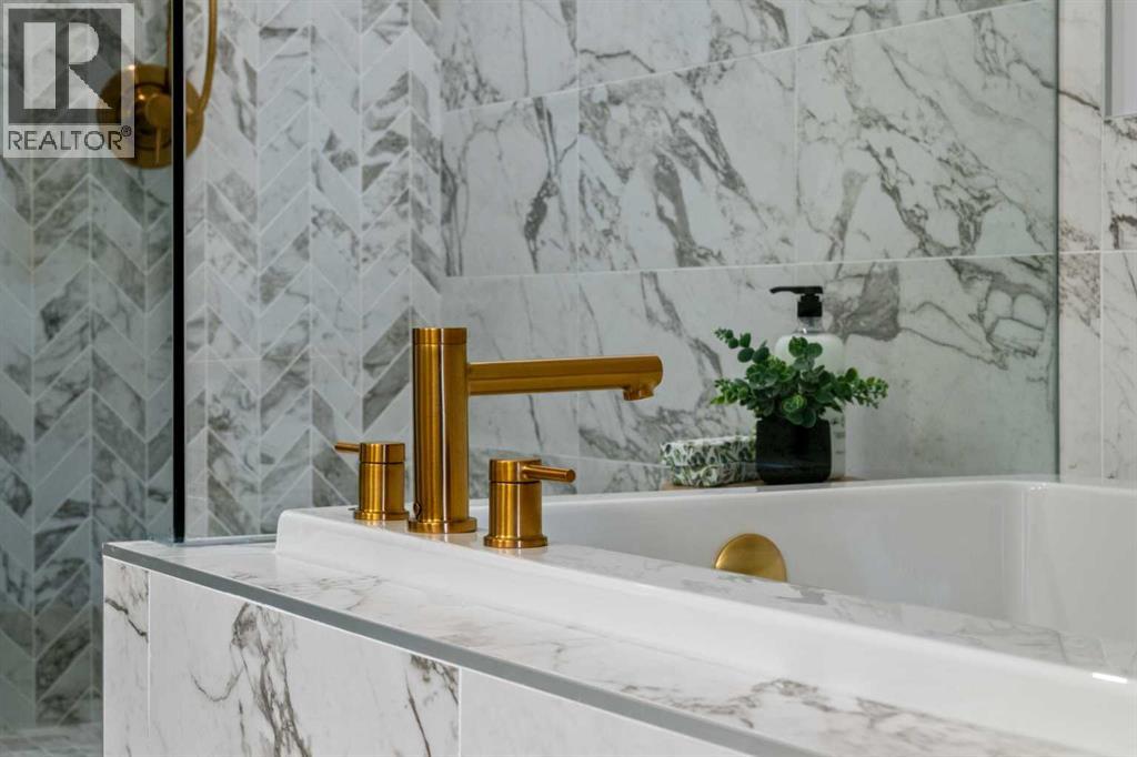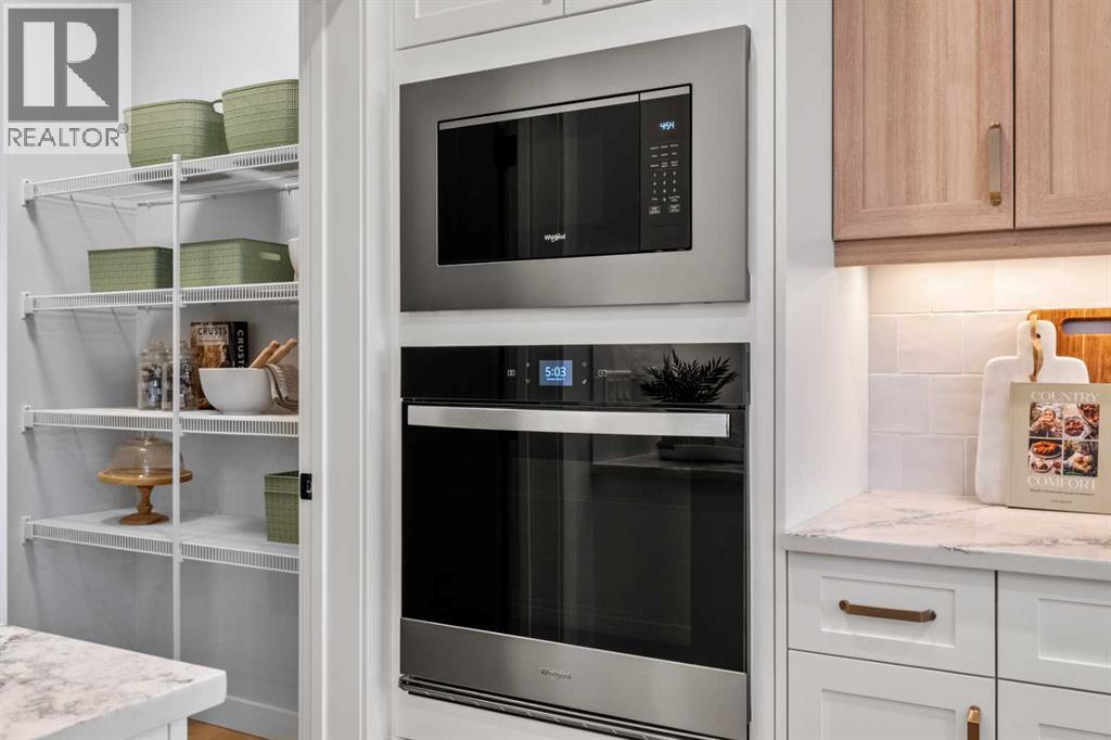 Set on a desirable corner homesite with a west-facing backyard, this beautifully designed home that blends modern finishes, functional family living, and income potential with a fully developed 2-bedroom legal basement suite. Located in the growing and scenic community of Wolf Willow, this property offers convenient access to parks, pathways, and the natural beauty of the nearby Bow River valley. Through the leaseback program, the builder will lease the home from the purchaser for a specified period (approx two years) @ 7.5% of the Sales Price.The main floor showcases a bright, open-concept design enhanced by engineered hardwood flooring, large windows, and a striking open-to-below feature that fills the space with natural light. The spacious living room is anchored by a stylish electric fireplace with tile surround and mantle, creating a warm focal point for relaxing or entertaining. At the heart of the home, the kitchen is thoughtfully appointed with dual-tone cabinetry, 48” upper cabinets with crown moulding and riser, engineered quartz countertops, and a waterfall island with eating bar. Culinary enthusiasts will appreciate the gas cooktop, built-in oven and microwave, wood hood fan, Silgranit sink, and walk-through pantry, offering both style and everyday convenience.A main floor bedroom and full bathroom provide excellent flexibility for guests, multigenerational living, or a private home office. The dining area opens onto the 10’ x 11' deck complete with railing, stairs, and gas line, making it ideal for outdoor dining and summer gatherings. The west-facing backyard enjoys evening sun and is fully landscaped, adding to the home’s curb appeal.Upstairs, a large bonus room creates additional living space for family relaxation or entertainment. The upper level also features three spacious bedrooms with large windows, including a well-appointed primary retreat complete with a walk-in closet and an elegant ensuite featuring dual sinks, a soaker tub, and a ful ly tiled shower with 10mm glass. The second full bathroom also includes dual sinks, while the convenient upper-level laundry adds everyday practicality.The fully finished legal basement suite offers outstanding versatility and value, complete with two bedrooms, a full kitchen, laundry, and included appliances—perfect for extended family, guests, or rental income potential. Durable luxury vinyl plank flooring completes the lower level.Additional highlights include central air conditioning, designer-selected lighting and window coverings, metal spindle railings, engineered quartz countertops throughout, and a double attached garage. The home’s exterior is finished with Hardie siding, providing durability and modern curb appeal.Combining thoughtful design, quality finishes, and a flexible layout with a legal suite, this home offers an exceptional opportunity to enjoy comfortable family living with added income potential in one of southeast Calgary’s most exciting new communities. (id:63190)
