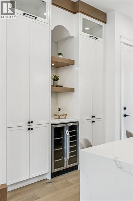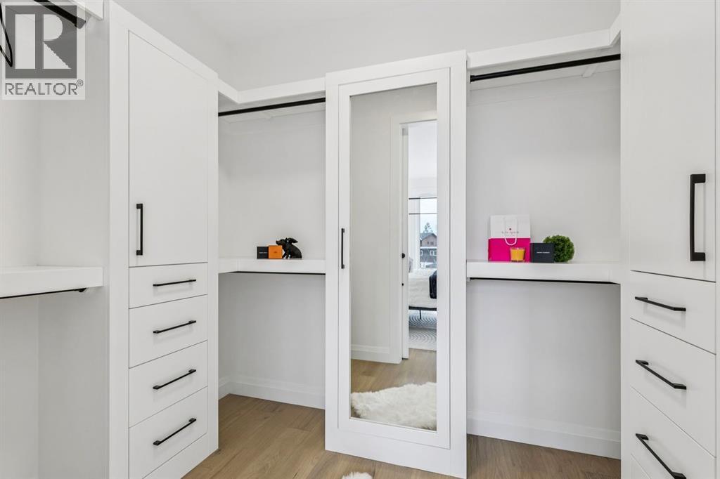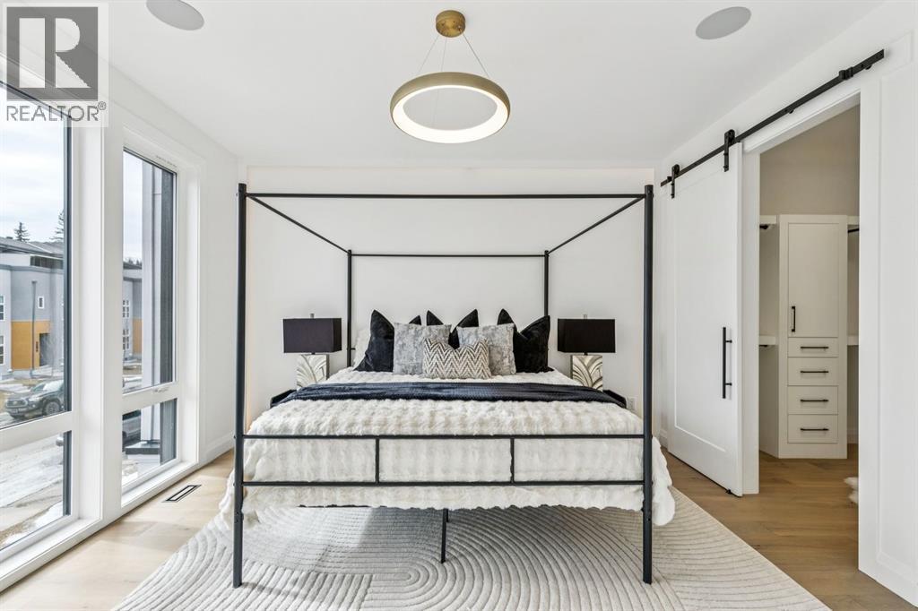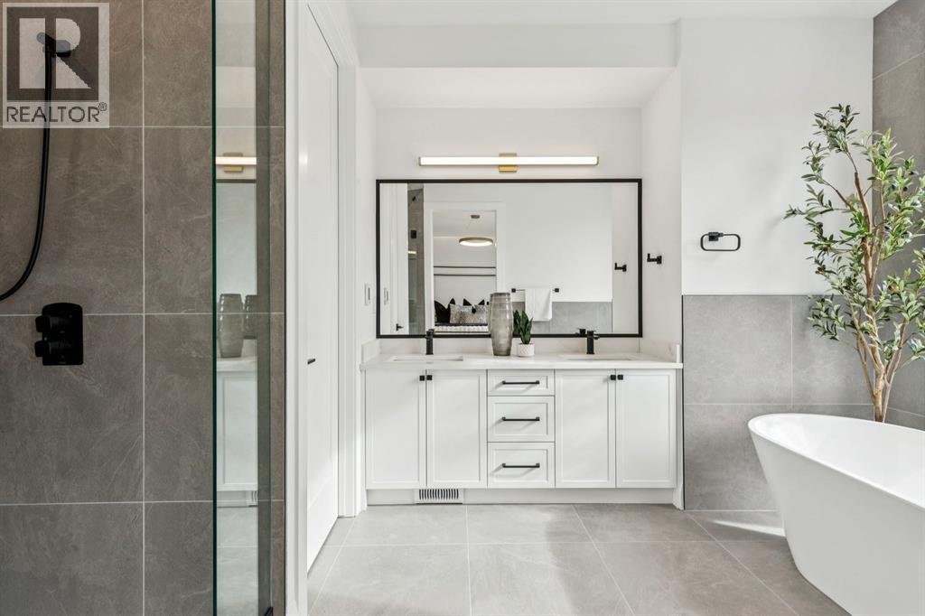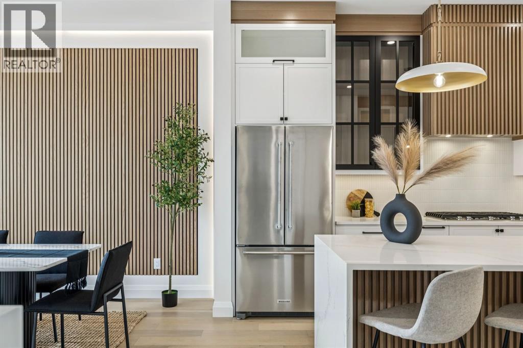 Situated just steps from the Bow River in the highly sought after community of Parkdale, this sophisticated modern residence offers over 3,600 sq ft of beautifully curated living space, blending elevated design with exceptional functionality. The bright, open concept main floor welcomes you with a spacious entry and a stunning front dining area, highlighted by an illuminated feature wall that adds warmth and architectural interest. A glass enclosed office provides a perfect work-from-home setting, while the heart of the home, an exquisite designer kitchen, impresses with an expansive 10’ quartz waterfall island, built-in wall oven and microwave, gas cooktop, and sleek cabinetry. Striking glass panelled black fronts anchor the cooking space, complemented by crisp white shaker cabinetry for a refined modern aesthetic. A thoughtfully designed pantry with bar area and beverage fridge enhances both form and function. At the rear, the airy living room with a contemporary gas fireplace opens effortlessly to the west facing backyard and low maintenance deck through sliding glass doors. The second floor offers three generous bedrooms, each with its own walk-in closet, a full bathroom, and a well appointed laundry room with sink. The primary sanctuary features floor-to-ceiling windows, a striking feature wall, and a custom walk-in closet. The luxurious 6pc ensuite boasts heated floors, a steam shower, and a deep soaker tub for a luxurious escape. The third floor loft is exceptional offering incredible versatility and elevated living. Enjoy a built-in desk area, convenient coffee bar, and a front balcony with downtown views. This level also hosts a second primary suite, complete with a private rear balcony, walk-in closet, and a lavish 6pc ensuite with heated floors, a deep soaker tub, and an oversized glass shower. The fully developed basement features a separate entrance leading to a legal suite. This thoughtfully designed space includes two spacious bedrooms, a 4pc bathroom , its own laundry, and a stylish kitchen with warm wood cabinetry, eat-up island, and full appliance package. The inviting living room is anchored by a modern media wall, while access to the utility room reveals a tankless hot water system. Outside, the landscaped yard offers ample green space for kids and pets, and leads to a double detached garage. Additional upgrades include rough-ins for security, AC, and central vacuum, along with exposed aggregate steps and walkways. Ideally located, you’re just steps to Foothills Medical Centre, and only minutes from Alberta Children's Hospital and the vibrant University District, offering an incredible mix of dining, shopping, and everyday amenities. Surrounded by parks, pathways, cafés, and the natural beauty of the Bow River, this exceptional home delivers the perfect balance of luxury, comfort, and convenience. (id:63190)