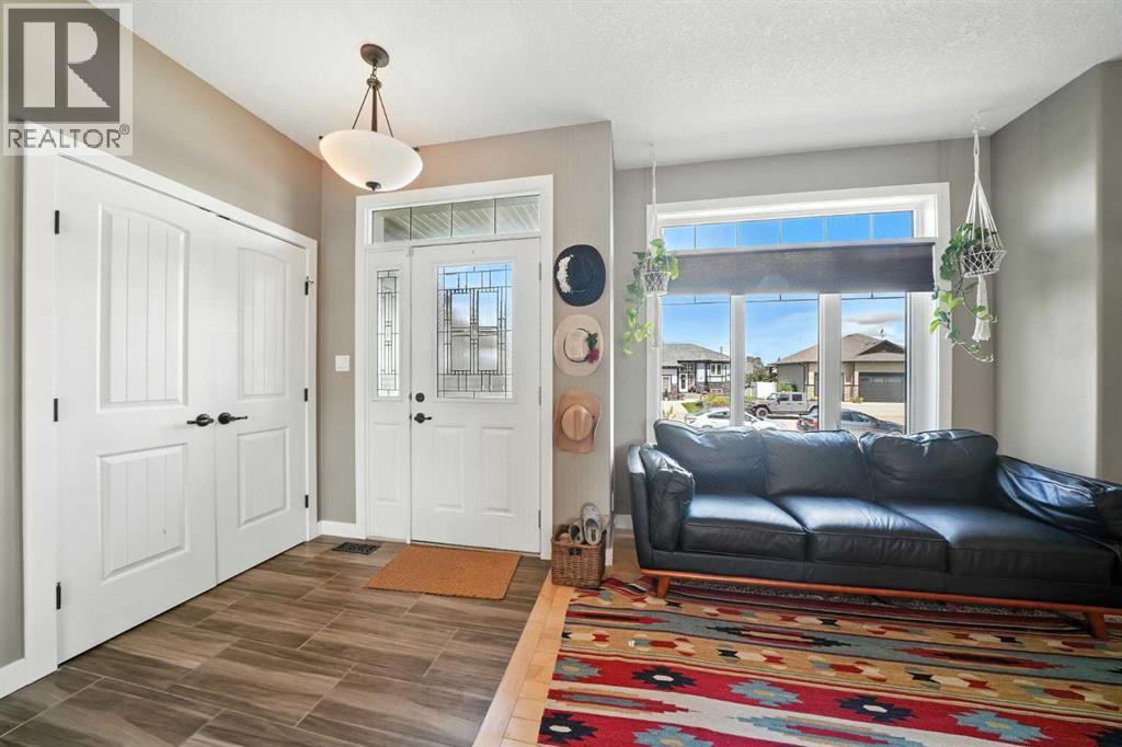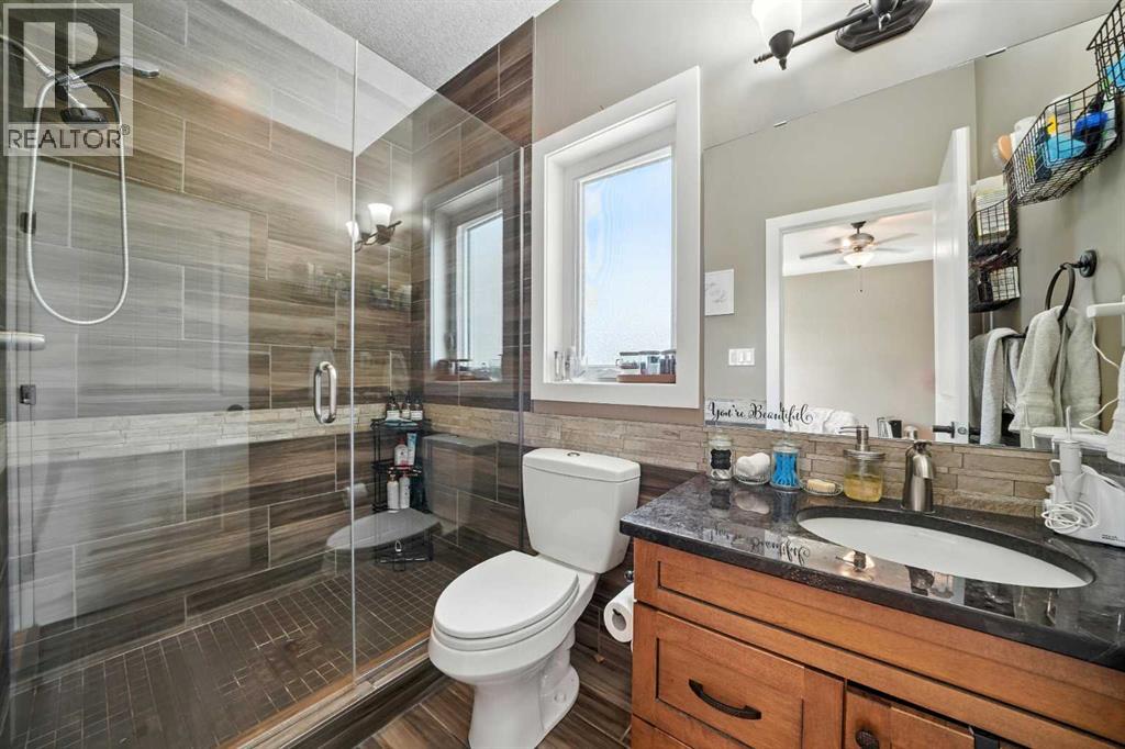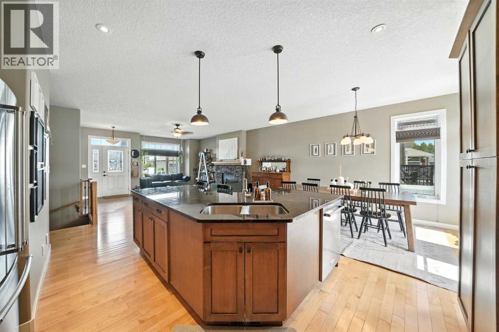 Have you been waiting for the perfect bungalow to hit the market in Olds? Don’t miss your chance to view this one. Situated on a large lot, this fully finished bungalow has plenty of room for the whole family. As you enter the front door, you will immediately notice the large open floor plan from the living room to the kitchen. Hardwood floors flow seamlessly throughout. The kitchen is complete with granite countertops, maple cabinets, and new stainless steel appliances. The living room has large windows and a stone gas fireplace. The eating area can accommodate any size table with extra room to spare. Move down the hall to find your primary bedroom. The oversized bedroom can accommodate all your large furniture pieces. It is finished off with a walk-in closet and an en-suite featuring a dreamy custom tile shower. To complete the upstairs, you will find two additional bedrooms and another four-piece bathroom. Head down the stairs and you will enter your massive family room with another stone gas fireplace. This room can accommodate all your furniture with extra space for gym equipment, desks, and a play area. The family room also features a wet bar for entertaining. The basement is finished with two more great-sized bedrooms and your third full bathroom. Off of the kitchen, you can access your maintenance-free deck overlooking your huge yard. Plenty of space for entertaining. To top it all off, this bungalow comes complete with a double attached garage with high ceiling. Situated in a family-friendly neighborhood right across the street from a school, this well-cared-for, fully finished bungalow awaits its new owners. (id:63190)