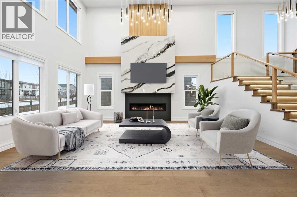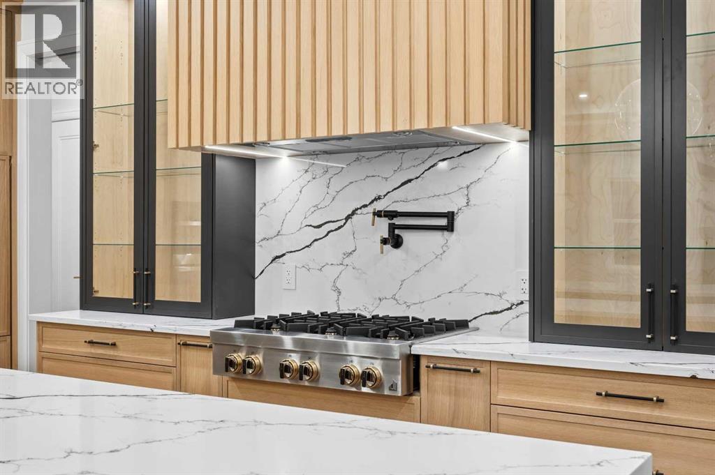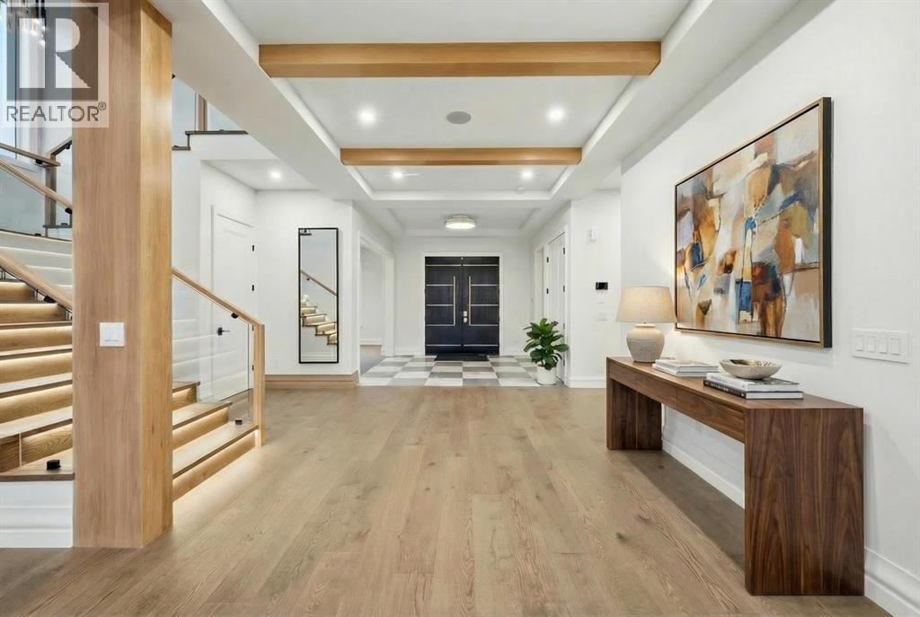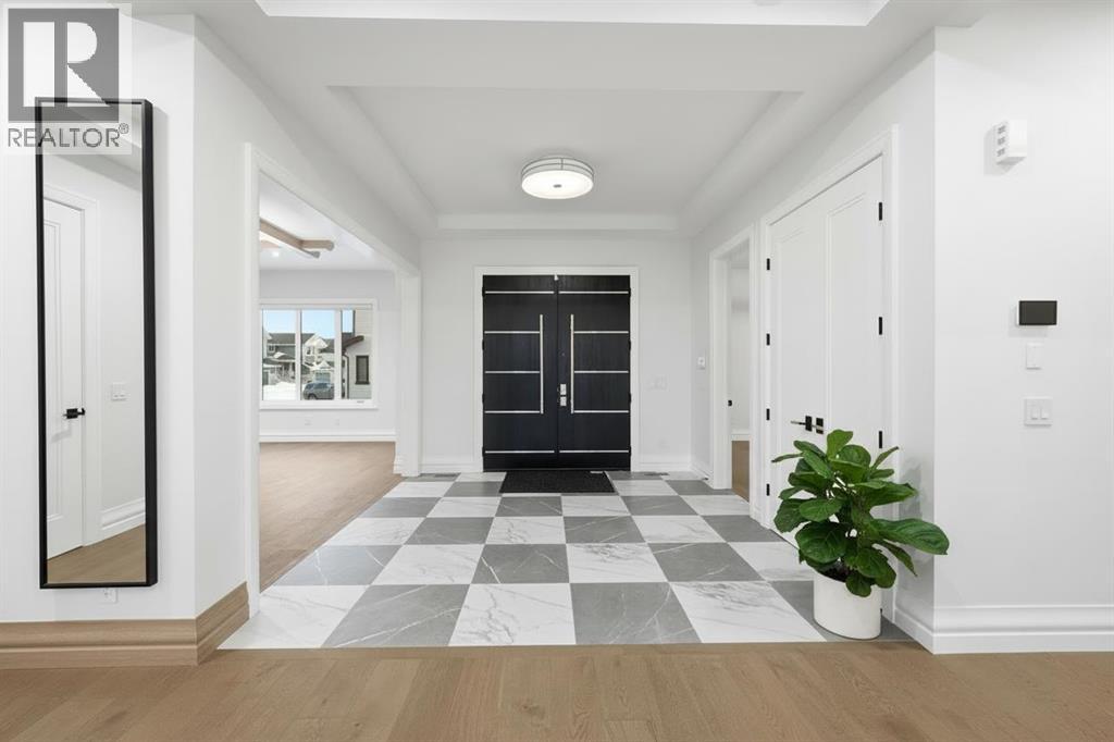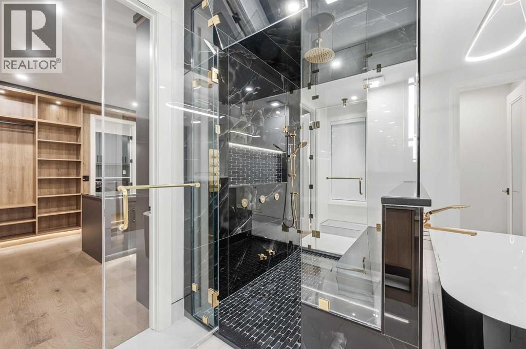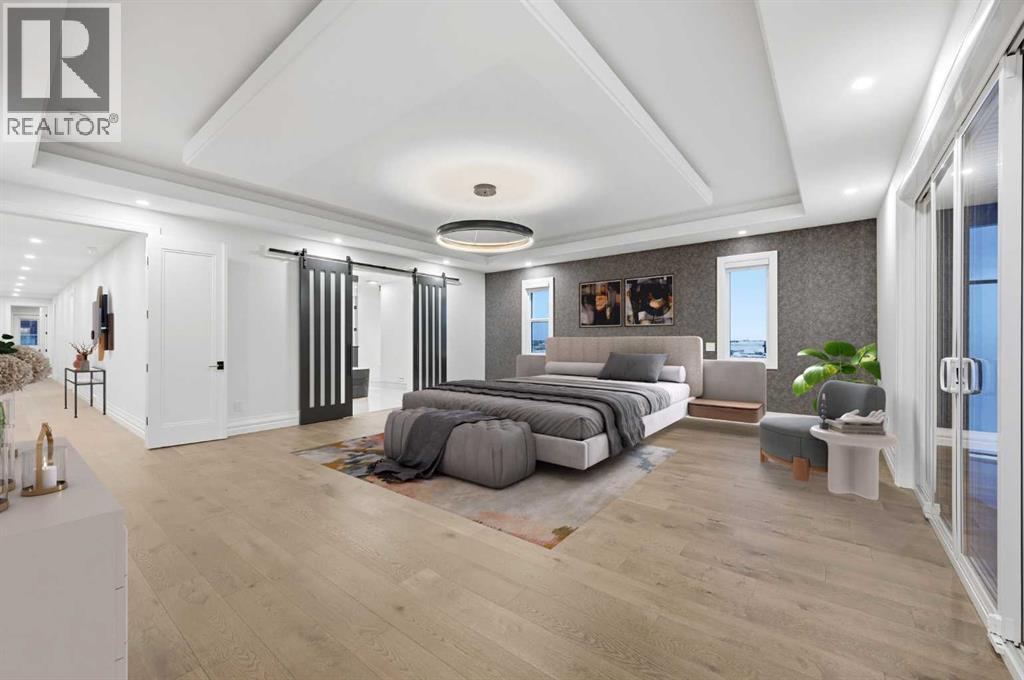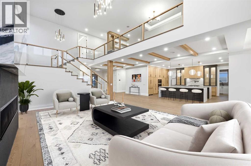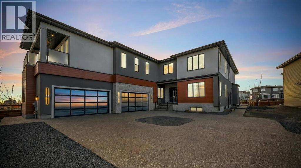 Luxury meets refined functionality in this exceptional custom-built 2-storey residence, ideally situated on one of the largest and most sought-after lots in the community. Offering 5 bedrooms, 5 full bathrooms, and a powder room, this meticulously designed home showcases soaring 10-ft ceilings on the main floor and basement, 9-ft ceilings upstairs, and rich hardwood flooring throughout, creating an elegant and airy ambiance.The chef-inspired kitchen is a true centerpiece, featuring quartz countertops, ceiling-height custom cabinetry, premium built-in appliances, a gas cooktop with pot filler, and an oversized island perfect for entertaining. A fully equipped spice kitchen adds both convenience and sophistication. The open-concept living and family rooms are designed to impress, highlighted by a dramatic open-to-below layout, a sleek natural gas fireplace, tray ceilings with ambient LED lighting, and modern glass railings.The main floor offers a versatile bedroom or private office with a full bath, ideal for guests or multi-generational living, along with a thoughtfully designed mudroom complete with built-in storage. Upstairs, four generously sized bedrooms each offer ensuite access, including a luxurious primary retreat featuring a private balcony, designer feature wall, spa-inspired ensuite, and a custom walk-in closet. A spacious bonus room with wet bar and an upper-level laundry equipped with dual washer and dryer enhance everyday comfort and convenience.The undeveloped basement presents endless possibilities, complete with a separate side entry and bathroom rough-in. Completing this remarkable home is a rare attached 4-car garage with sleek glass doors, professionally landscaped grounds, a concrete patio with gas BBQ line, and premium exterior finishes that elevate the home’s curb appeal. (id:63190)