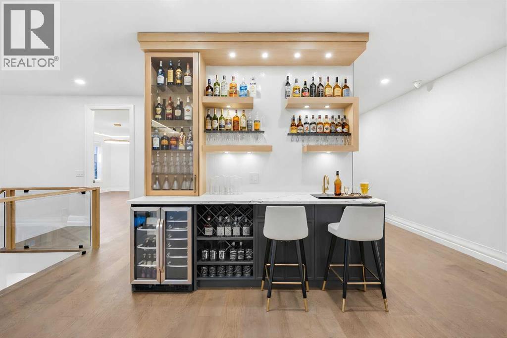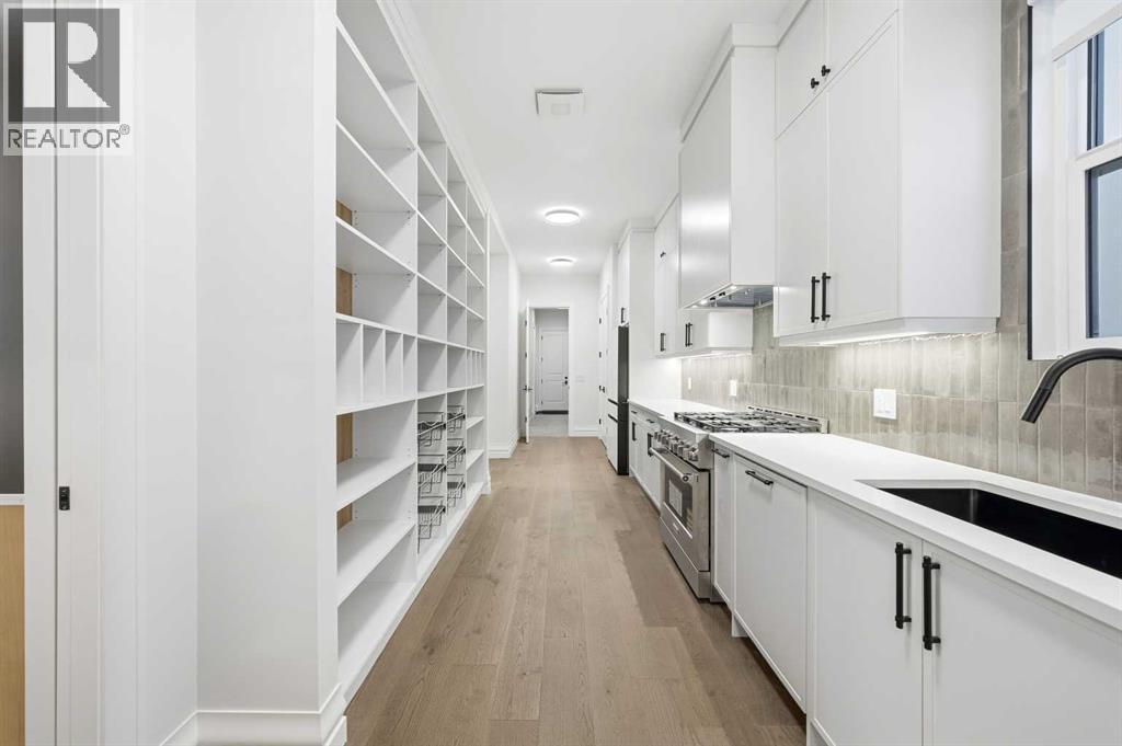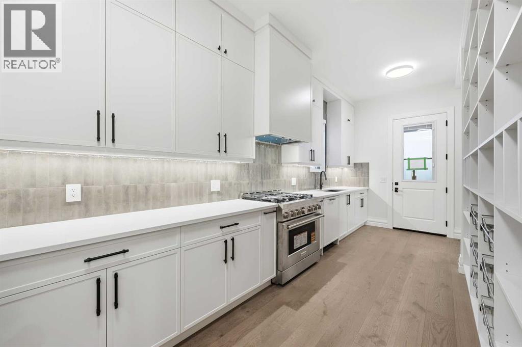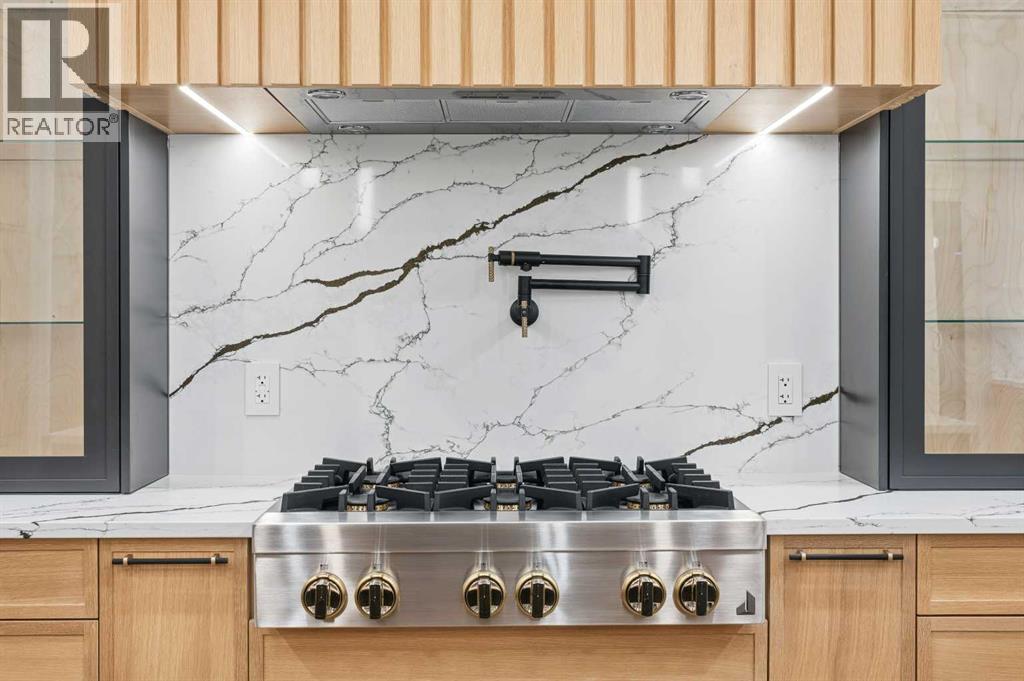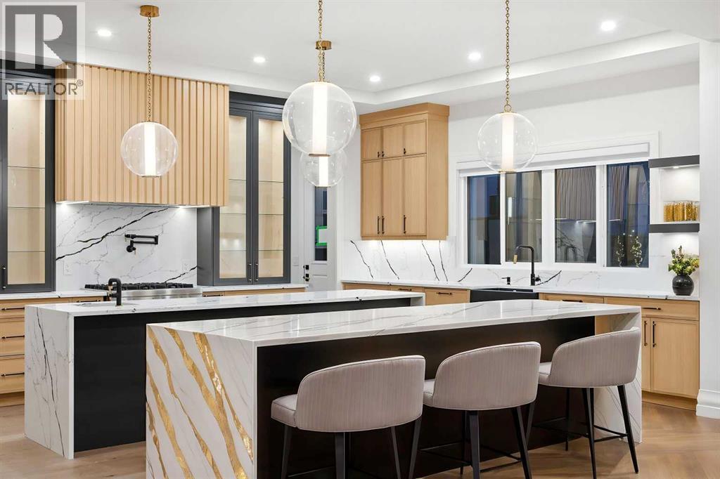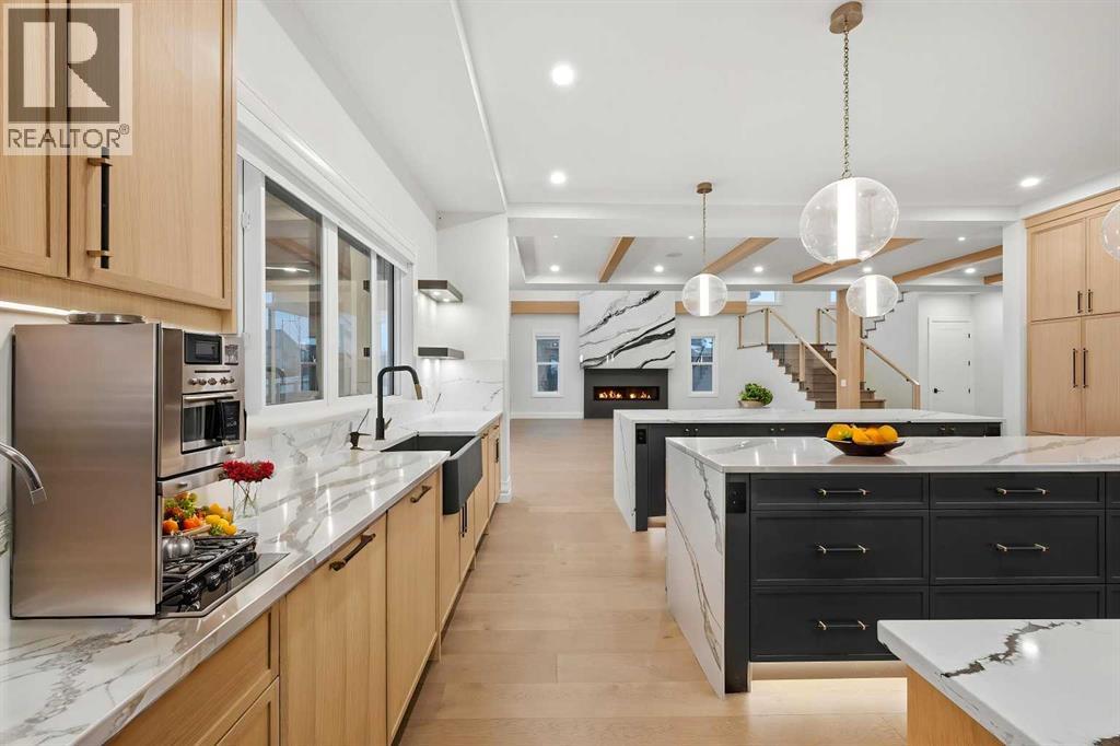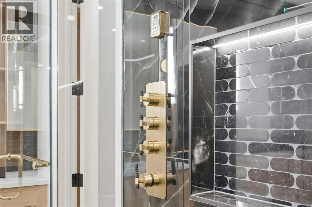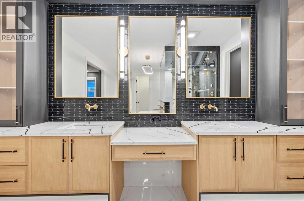 Luxury meets refined functionality in this exceptional custom-built 2-storey residence, ideally situated on one of the largest and most sought-after lots in the community. Offering 5 bedrooms, 5 full bathrooms, and a powder room, this meticulously designed home showcases soaring 10-ft ceilings on the main floor and basement, 9-ft ceilings upstairs, and rich hardwood flooring throughout, creating an elegant and airy ambiance.The chef-inspired kitchen is a true centerpiece, featuring quartz countertops, ceiling-height custom cabinetry, premium built-in appliances, a gas cooktop with pot filler, and an oversized island perfect for entertaining. A fully equipped spice kitchen adds both convenience and sophistication. The open-concept living and family rooms are designed to impress, highlighted by a dramatic open-to-below layout, a sleek natural gas fireplace, tray ceilings with ambient LED lighting, and modern glass railings.The main floor offers a versatile bedroom or private office with a full bath, ideal for guests or multi-generational living, along with a thoughtfully designed mudroom complete with built-in storage. Upstairs, four generously sized bedrooms each offer ensuite access, including a luxurious primary retreat featuring a private balcony, designer feature wall, spa-inspired ensuite, and a custom walk-in closet. A spacious bonus room with wet bar and an upper-level laundry equipped with dual washer and dryer enhance everyday comfort and convenience.The undeveloped basement presents endless possibilities, complete with a separate side entry and bathroom rough-in. Completing this remarkable home is a rare attached 4-car garage with sleek glass doors, professionally landscaped grounds, a concrete patio with gas BBQ line, and premium exterior finishes that elevate the home’s curb appeal. (id:63190)