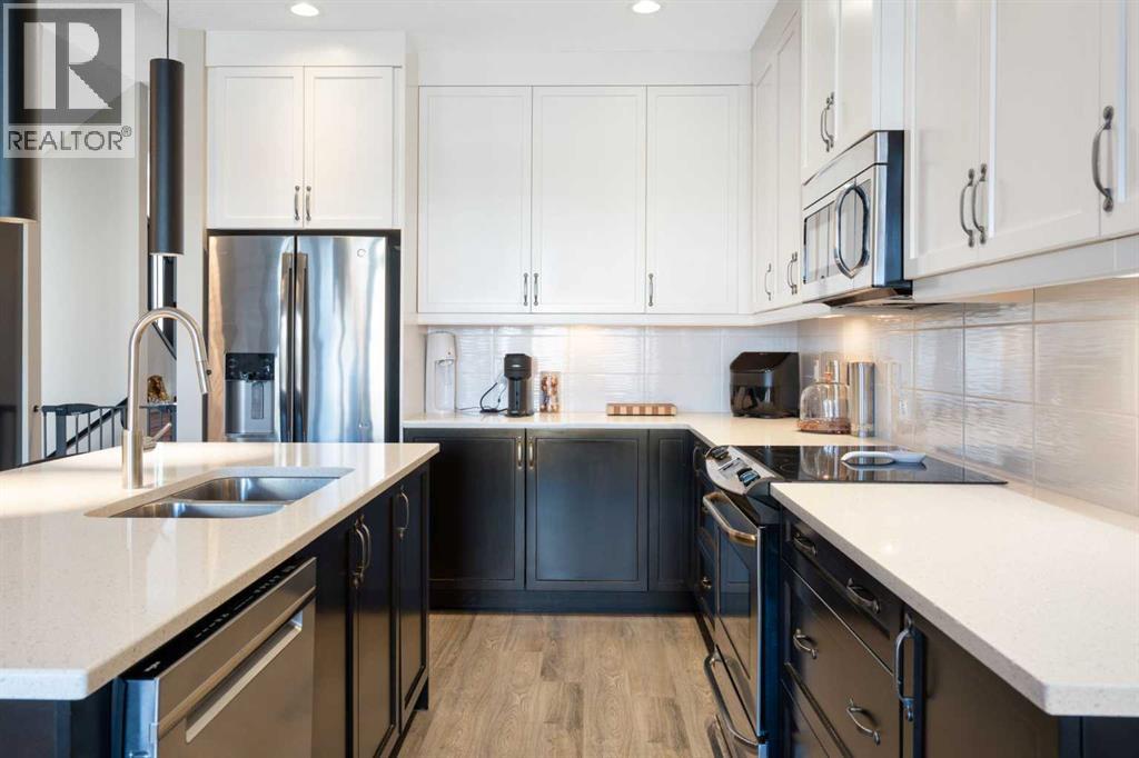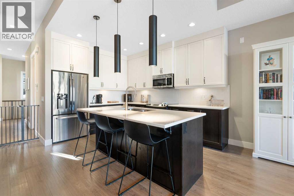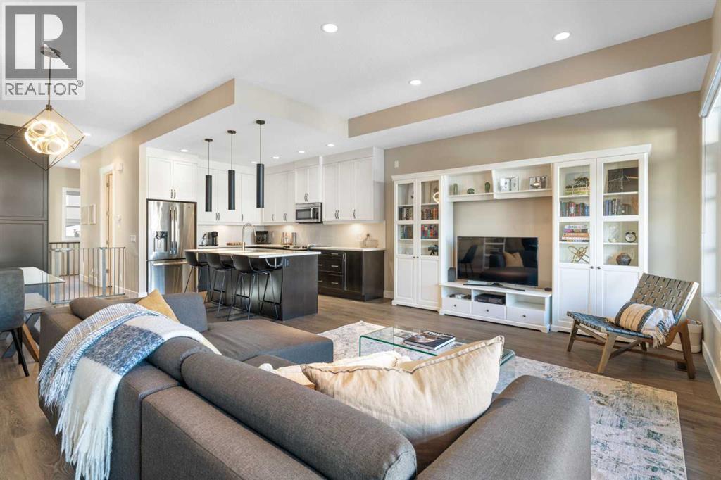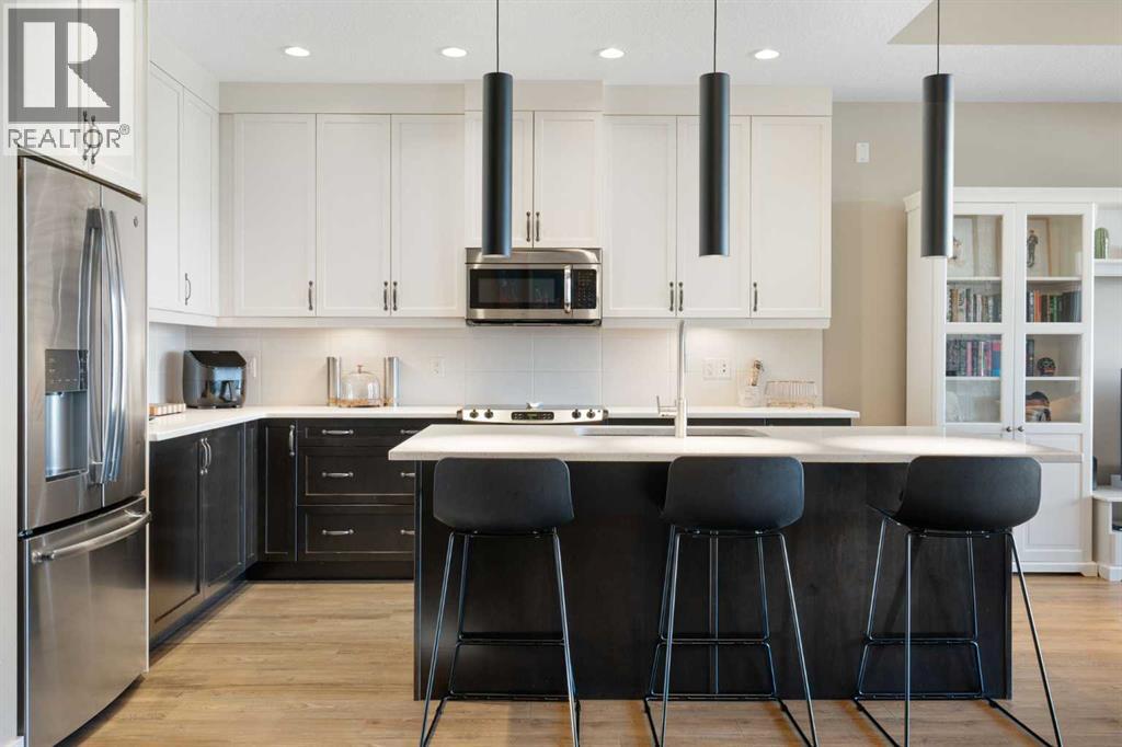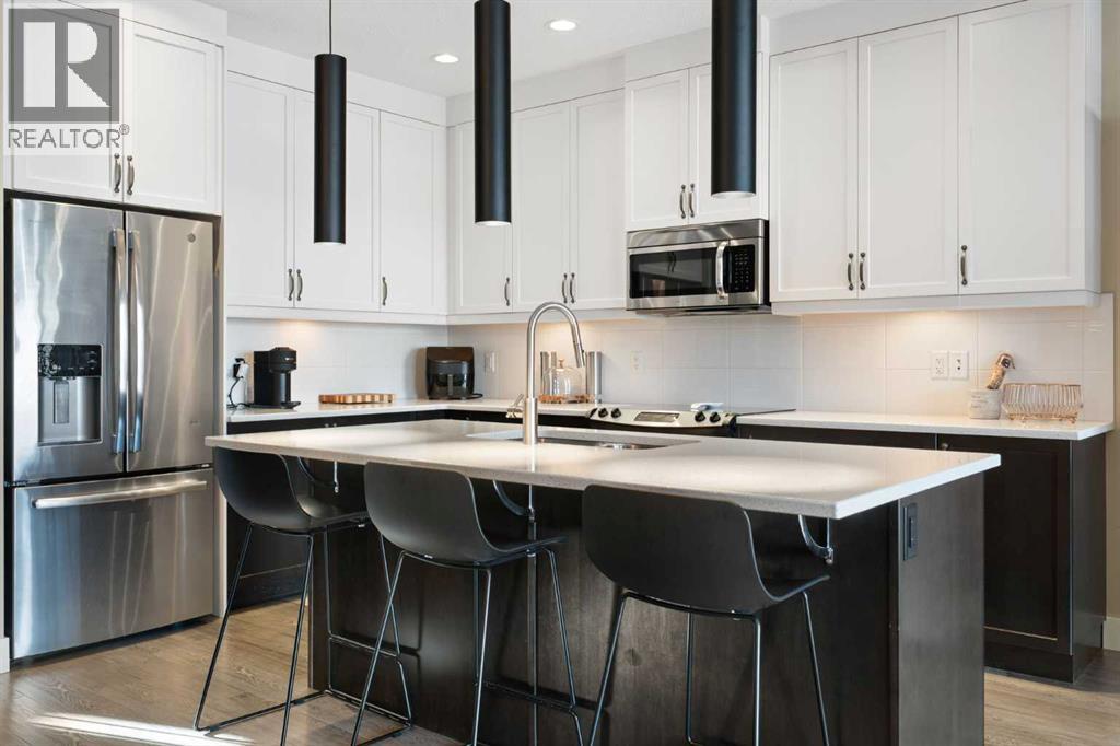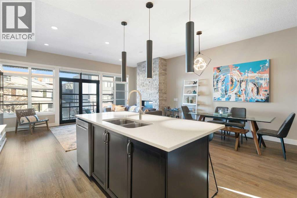 Welcome to this stunning contemporary townhome in the sought after community of Altadore, just steps from the vibrant shops, restaurants, and cafés of Marda Loop. Offering 1800+ sq ft of thoughtfully designed living space, this beautifully appointed home blends modern design with everyday functionality. The bright and open main floor features a large sliding patio door & windows that flood the space with natural light, creating an inviting atmosphere for both relaxing and entertaining. The gourmet kitchen is the centerpiece of the home, complete with quartz countertops, a large island, and sleek contemporary cabinetry, seamlessly connecting to the dining and living areas. A cozy living room with a gas fireplace and access to the private courtyard patio makes this level ideal for hosting or enjoying quiet evenings at home. Upstairs, the spacious primary bedroom offers a luxurious ensuite and generous closet space. Two additional bedrooms on the upper floor is ideal for a growing family or for hosting family and friends. Additional features include direct access from the attached garage and covered parking, all within minutes of downtown and close to parks, pathways, and top-rated schools. An exceptional opportunity to own a stylish inner-city home in one of Calgary’s most desirable neighbourhoods. (id:63190)