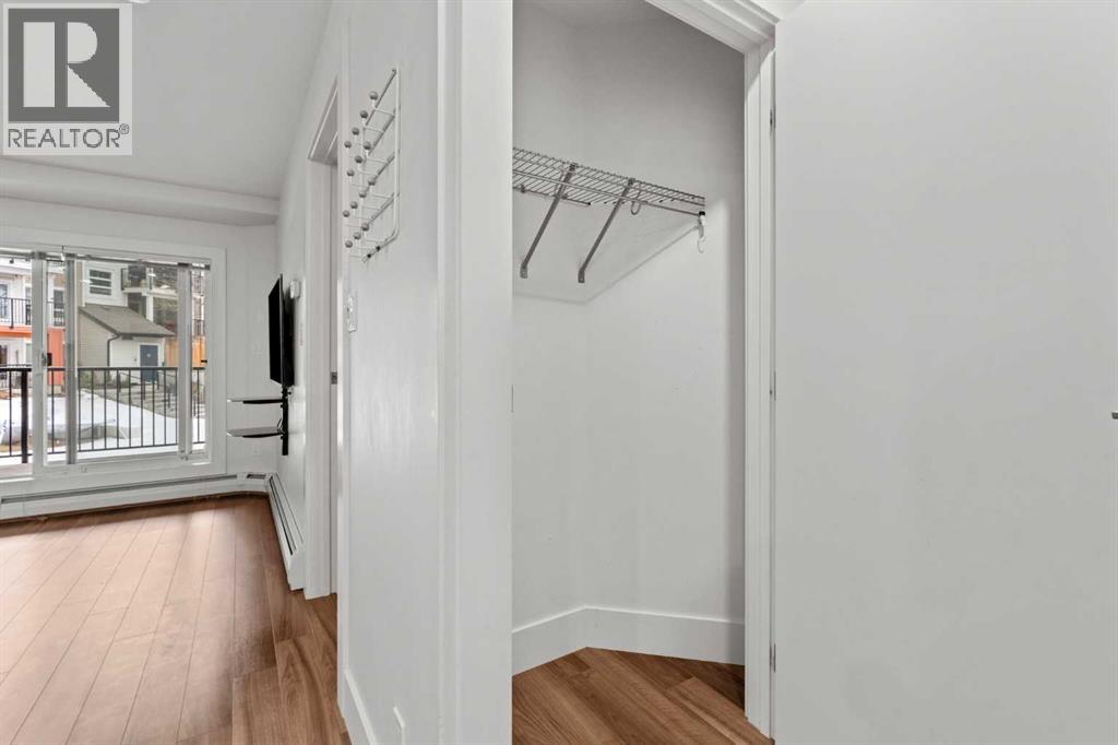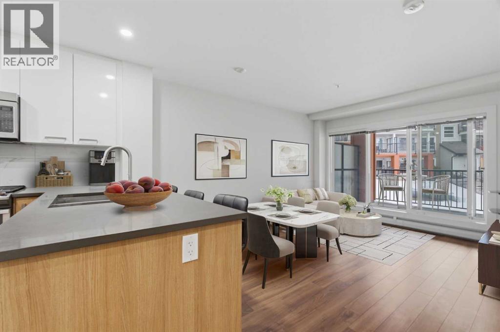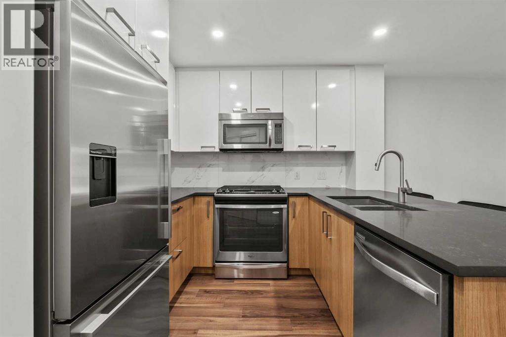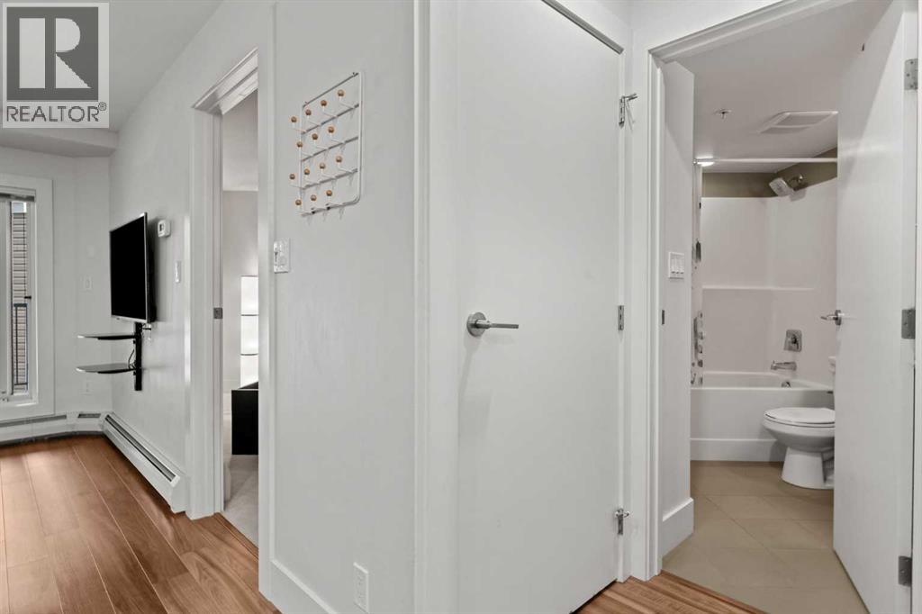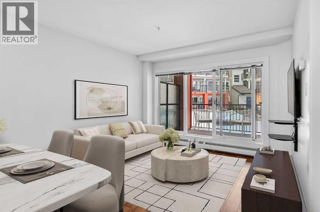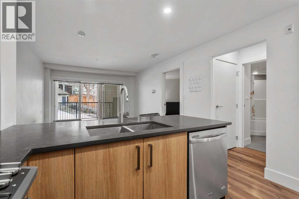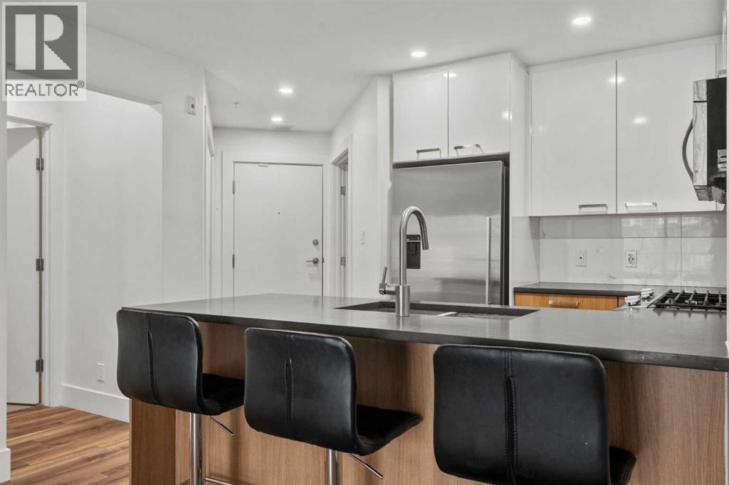 Come view this unique SECOND FLOOR UNIT, don’t let the #110 number deceive you, this beautiful second floor home backs onto a peaceful and quiet courtyard. Perfectly positioned in the heart of Bridgeland, where location, lifestyle, and smart design come together, this bright and modern 1-bedroom + DEN condo, perched above the main level, offers enhanced privacy and security beyond typical 100-level units.Built in 2016, this well designed home maximizes every inch of its nearly 600sf layout. The open concept living space features contemporary finishes, a sleek kitchen with STAINLESS STEEL APPLIANCES, a GAS RANGE, and modern cabinetry - perfect for both everyday living and entertaining. The VERSATILE DEN is ideal for a home office, additional storage, or a quiet reading nook.Enjoy your PRIVATE BALCONY overlooking the courtyard, creating the perfect setting for relaxing or unwinding in a quiet, peaceful atmosphere. Large windows fill the space with natural light, while the spacious bedroom, full bathroom, and IN-SUITE LAUNDRY add to the home’s overall comfort and convenience.Additional features include TITLED UNDERGROUND PARKING and a STORAGE LOCKER, along with access to building amenities such as a FITNESS CENTRE and DEDICATED BIKE STORAGE, providing both convenience and an active lifestyle.With it's location in one of Calgary’s popular inner-city communities, you’re just steps away from trendy cafés, restaurants, parks, river pathways, and the LRT, making commuting downtown or enjoying weekend outings effortless.Whether you're a first-time buyer, investor, or looking to downsize, this is an exceptional opportunity in a great location within a well managed building with LOW CONDO FEES. (id:63190)