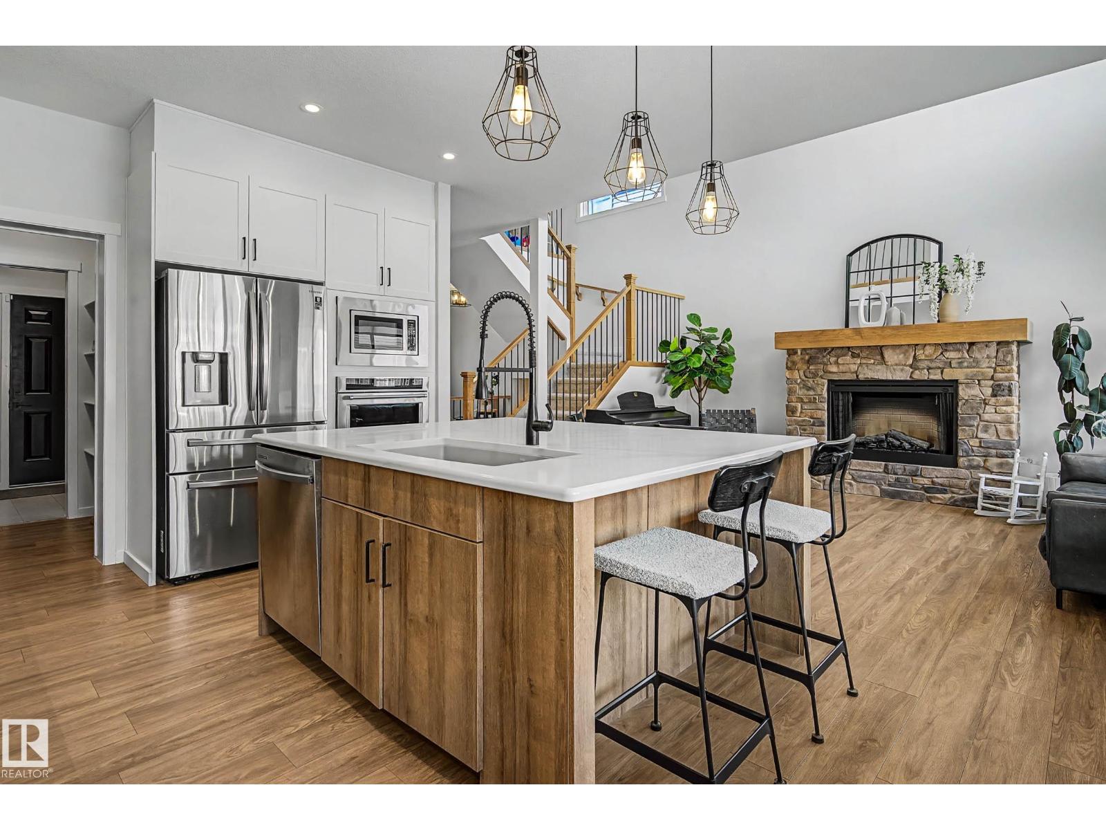 Welcome home to this stunning Coventry built Nysa floorplan with Casa upgrades! The main floor features a bright front den with French doors, walk-through pantry & chef-inspired kitchen with an oversized island, ceiling-height cabinets, KitchenAid wall oven, gas range & upgraded sink. The open concept dining and living area is highlighted by a striking stone surround fireplace & an open-to-below design that fills the home with natural light. Upstairs, the primary retreat boasts vaulted ceilings, barn door entry to the ensuite with fully tiled shower, stand-alone tub & double sinks. 2 additional bedrooms, a 4-pc bath & a bonus room complete the upper level. Enjoy the oversized garage, partially finished basement & deck with gas line ready for summer entertaining. Landscaping will be completed in Spring 2026 and is included in the purchase price! Located steps from a park, future K-9 school, White Spruce, Lacombe dog park & Red Willow Trail system. Enjoy walks to the farmers market, downtown & the library! (id:63190)