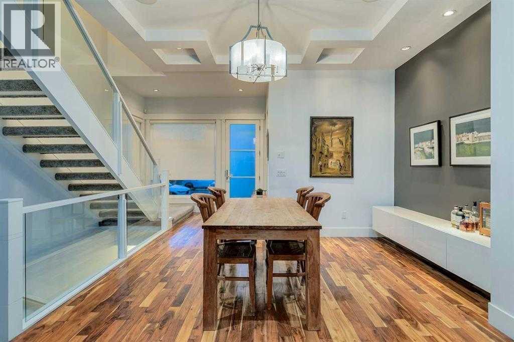 There's a reason people fall in love with homes like this. It's not a single thing — it's the way it all works together. The way it's been cared for. The way it makes you feel like you're already home.This beautifully maintained residence offers refined design and everyday comfort, with thoughtful upgrades throughout that mean you can simply move in and start living.The main level sets the tone — its open-concept layout, rich hardwood floors, and soaring coffered ceilings offer a sense of flow that feels elegant and livable. The mudroom and powder room add the kind of polish that families and busy professionals appreciate.At its heart, the kitchen is built to impress without trying too hard. Custom cabinets, sleek quartz surfaces, and a generous island create a space that's at home hosting a dinner party or a Tuesday night family meal. Premium appliances — including a gas cooktop, beverage fridge, and newer dishwasher and built-in microwave — are a chef’s dream.Upstairs, high ceilings and three large bedrooms offer room to breathe. A dedicated built-in workspace makes working from home feel intentional, not improvised. The primary suite, complete with a spa-inspired 5-piece ensuite, and spacious walk-in closet offers a genuine retreat.The finished basement extends your living space beautifully, with a large rec room, a wet bar with fridge, fourth bedroom, and a full bathroom — ready to enjoy from day one.This home has been meticulously cared for. A newer roof (2017), updated furnace and water softener (2020), a full interior repaint and plush carpeting (2023), and a new 75-gallon hot water tank (2024) mean the big things are already taken care of.The south-facing backyard is a summer oasis — its raised patio, with awning and ambient lighting turns an ordinary evening into something worth lingering over. Morning coffee or evening entertaining with friends, this space delivers.And then there's where you get to live. Altadore lives up to its reputation with vil lage charm — quiet streets, independent shops, and a vibrant foodie scene. Weekends mean slow brunches, sunny patios, and great coffee, all just a stroll away.Outside your door, Sandy Beach offers riverfront picnics and lazy summer afternoons tubing on the Elbow River. River Park — one of the best off-leash dog parks in the city — is a short stroll away. Flanders Park adds open spaces and playgrounds that young families return to again and again.Families also love the local school options. Altadore School is a wonderful public primary with a strong community feel. The Lycée offers prestigious private French education. Master's Academy is one of the city's top charters. Public, private, charter — the choices are here, and they're all good ones.And when the city calls, you're ready. The downtown core is close, transit is convenient, and getting out of town for a weekend adventure is easier than you'd think.Altadore doesn't need to oversell itself. It just quietly, confidently delivers — every single day (id:63190)
