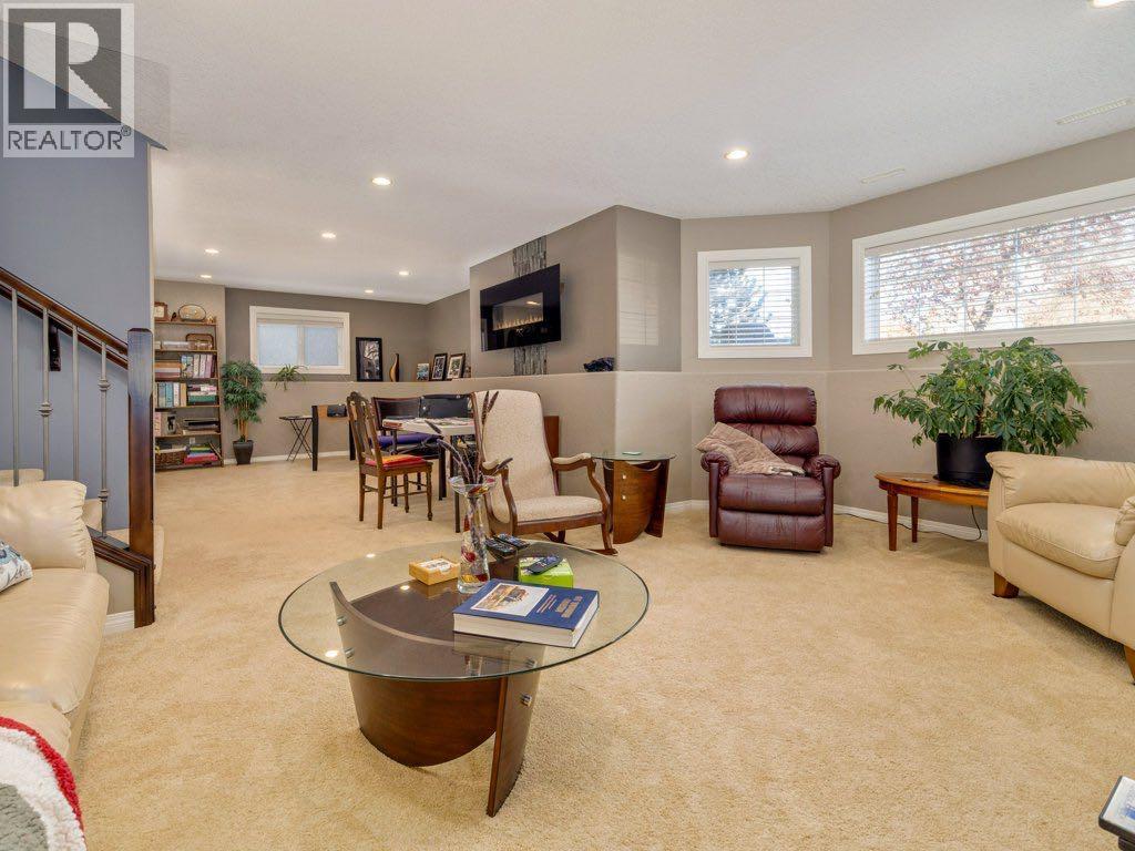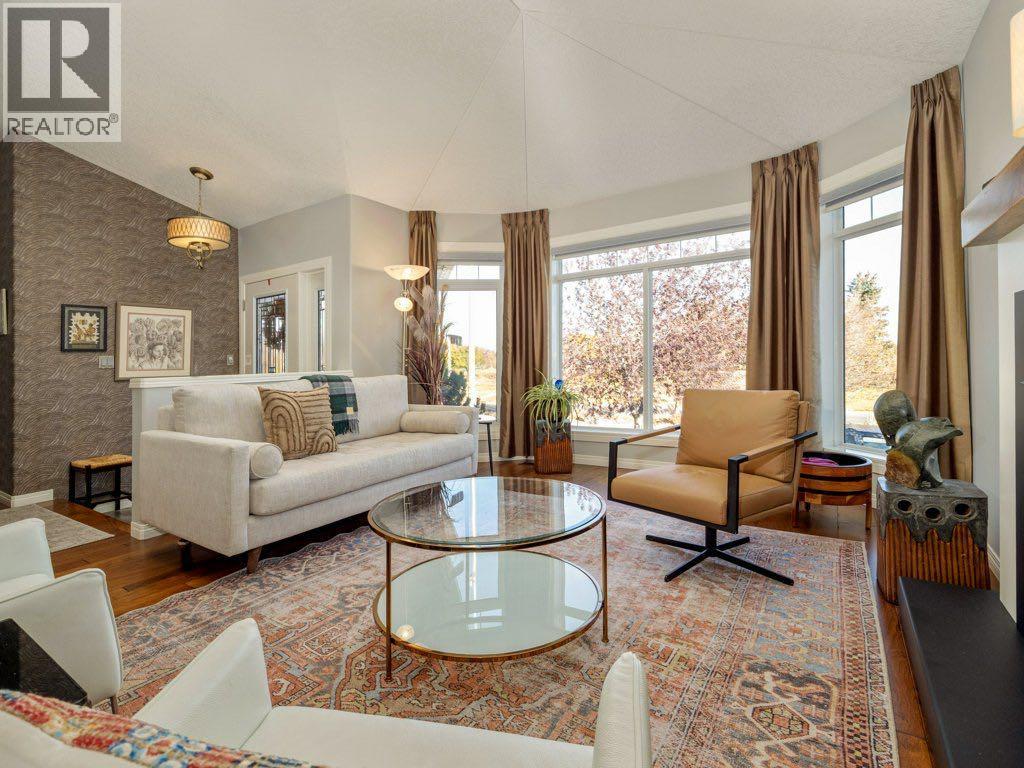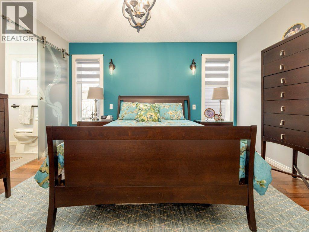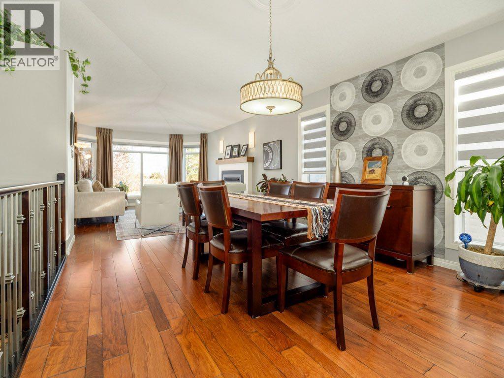 An exceptional offering in the highly sought-after community of Riverstone, this beautifully refined raised bungalow presents over 2,500 sq. ft. of meticulously curated living space, thoughtfully designed for both comfort and sophistication.From the moment you enter, the quality of finish and attention to detail are evident. The main level is adorned with rich engineered hardwood flooring and enhanced by upgraded lighting throughout, creating a warm and cohesive aesthetic. The inviting living room is anchored by a gas fireplace and framed by expansive front windows with custom remote control blinds, capturing serene north facing views across a picturesque green strip, an ideal vantage point to enjoy natural light and local wildlife.The adjoining dining area transitions seamlessly into a well appointed kitchen, where contemporary cabinetry, a distinctive island, and elegant granite countertops come together to create a functional yet stylish culinary space.The primary suite offers a generous and tranquil retreat, complete with ample closet space and a beautifully updated ensuite featuring granite surfaces and a striking artistic sink. A second main floor bedroom provides versatility for guests or a private office. The main level is further complemented by a luxurious 4 piece bathroom with a jetted tub, along with the added convenience of main floor laundry.The fully developed lower level extends the home’s living space with a spacious and welcoming recreation room, highlighted by an electric fireplace and large windows that invite natural light. Two additional bedrooms and a full 4 piece bathroom ensure comfort and flexibility for family or guests.Outdoors, the rear yard has been thoughtfully designed for enjoyment and entertaining, featuring an attractive stone patio and generous space for outdoor living. Completing the property is a heated double attached garage with rear lane access, along with two additional parking spaces- an increasing valued feature. Thi s is a rare opportunity to acquire a beautifully maintained and elegantly appointed home in one of Lethbridge's most desirable neighbourhoods- where lifestyle, quality, and location converge. (id:63190)