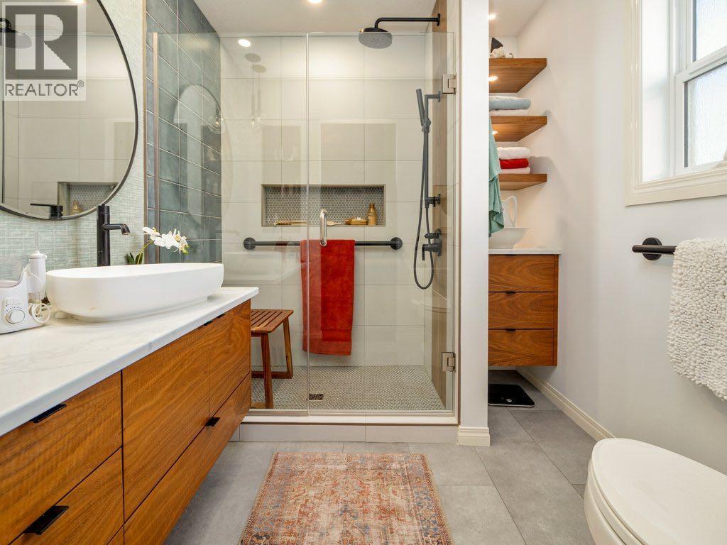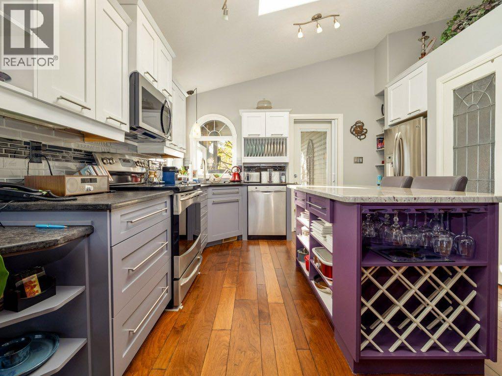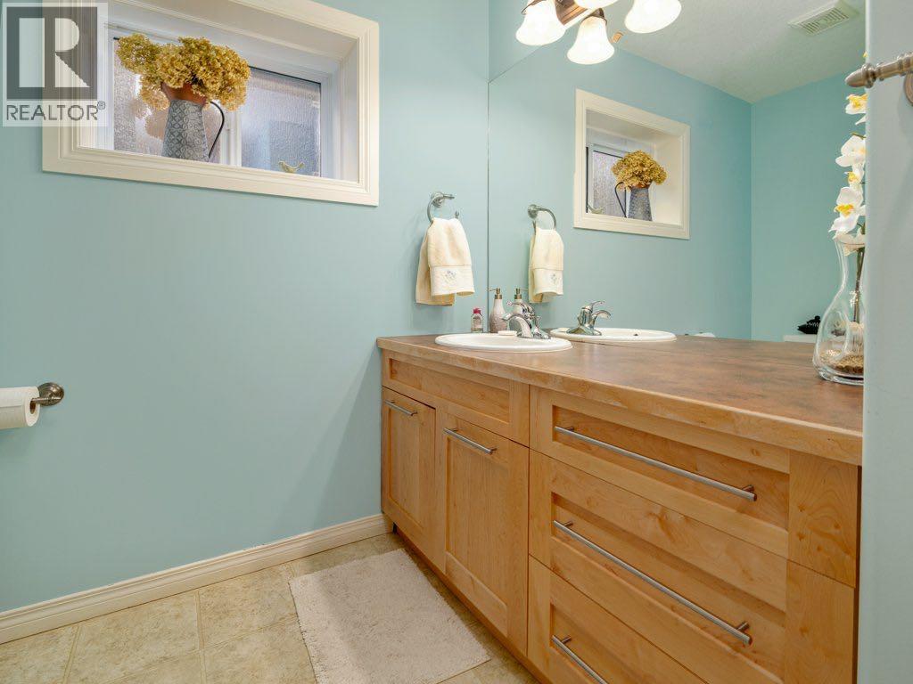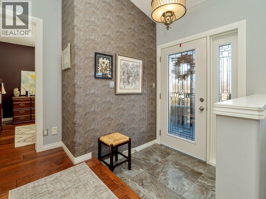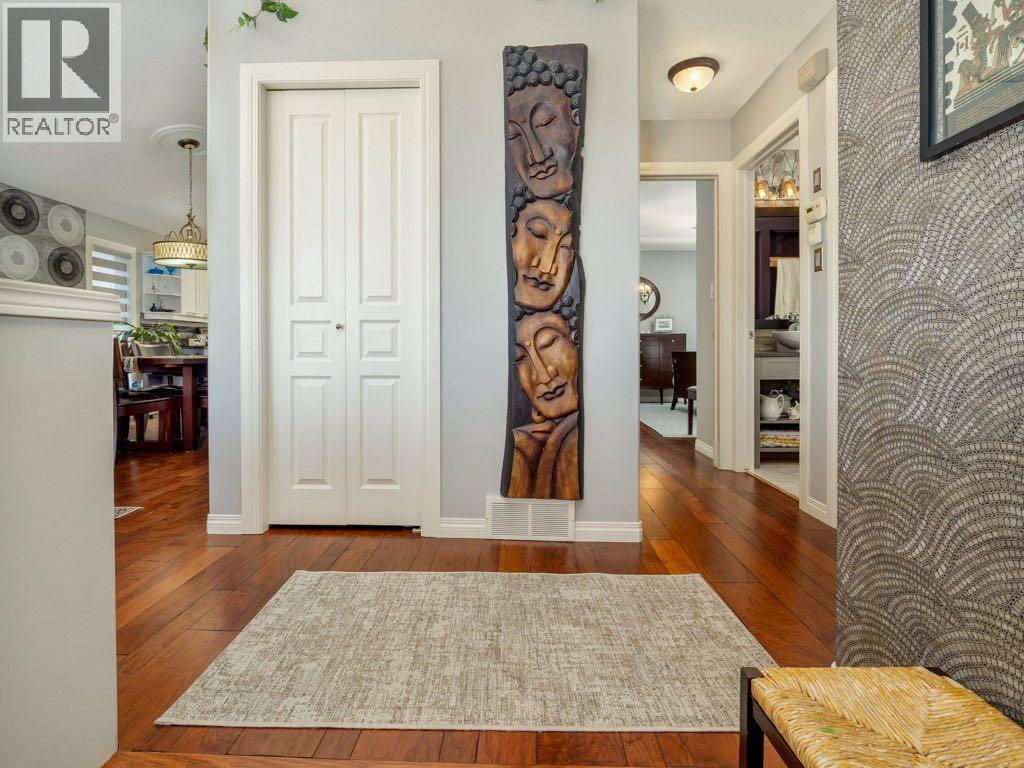 An exceptional offering in the highly sought-after community of Riverstone, this beautifully refined raised bungalow presents over 2,500 sq. ft. of meticulously curated living space, thoughtfully designed for both comfort and sophistication.From the moment you enter, the quality of finish and attention to detail are evident. The main level is adorned with rich engineered hardwood flooring and enhanced by upgraded lighting throughout, creating a warm and cohesive aesthetic. The inviting living room is anchored by a gas fireplace and framed by expansive front windows with custom remote control blinds, capturing serene north facing views across a picturesque green strip, an ideal vantage point to enjoy natural light and local wildlife.The adjoining dining area transitions seamlessly into a well appointed kitchen, where contemporary cabinetry, a distinctive island, and elegant granite countertops come together to create a functional yet stylish culinary space.The primary suite offers a generous and tranquil retreat, complete with ample closet space and a beautifully updated ensuite featuring granite surfaces and a striking artistic sink. A second main floor bedroom provides versatility for guests or a private office. The main level is further complemented by a luxurious 4 piece bathroom with a jetted tub, along with the added convenience of main floor laundry.The fully developed lower level extends the home’s living space with a spacious and welcoming recreation room, highlighted by an electric fireplace and large windows that invite natural light. Two additional bedrooms and a full 4 piece bathroom ensure comfort and flexibility for family or guests.Outdoors, the rear yard has been thoughtfully designed for enjoyment and entertaining, featuring an attractive stone patio and generous space for outdoor living. Completing the property is a heated double attached garage with rear lane access, along with two additional parking spaces- an increasing valued feature. Thi s is a rare opportunity to acquire a beautifully maintained and elegantly appointed home in one of Lethbridge's most desirable neighbourhoods- where lifestyle, quality, and location converge. (id:63190)