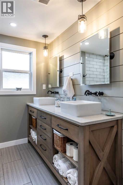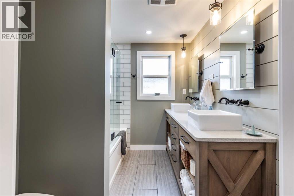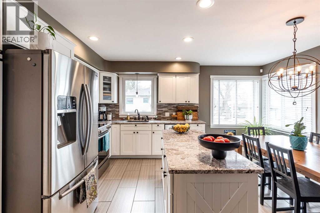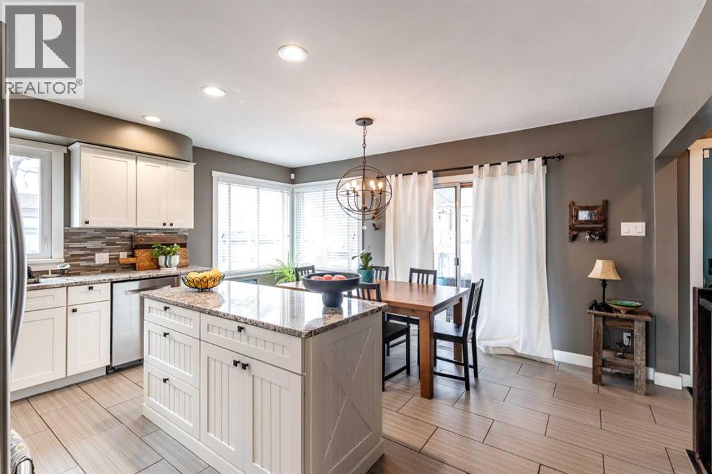 This charming, raised mid-century bungalow offers extensive upgrades while maintaining its original character. The bright living room features beautiful original hardwood floors and large windows that fill the space with natural light. The custom kitchen has been thoughtfully renovated with quality cabinetry, granite countertops, new appliances, a stylish backsplash, and updated lighting, creating a functional and inviting space for everyday living and entertaining. The adjacent dining area features sliding patio doors that open onto a large covered deck with a gas line for your BBQ, making indoor-outdoor entertaining easy and enjoyable.The main floor includes a spacious primary bedroom and a fully renovated 4-piece bathroom, along with a front office that could easily function as a second bedroom if desired. The fully renovated basement offers two additional bedrooms, a large family room, a beautifully renovated 3-piece bathroom, a spacious laundry room and a convenient laundry chute.Step outside to enjoy the beautifully landscaped yard featuring underground sprinklers in the front and back, irrigation for garden beds, a large covered deck, and a lower sitting area with a pergola, perfect for relaxing or entertaining. A new fence and retaining wall add both privacy and curb appeal. A standout feature of the property is the heated triple-car garage(26 x 36), with one bay featuring an 8 ft door, ideal for larger vehicles, storage, or workshop space.Numerous additional upgrades include newer windows, updated plumbing, added insulation in the walls and attic, new flooring, fresh paint, and updated light fixtures throughout, making this an extremely efficient and comfortable home. Major mechanical updates include a furnace and hot water heater (2016) and 100 amp electrical service.This well-maintained home offers the perfect combination of mid-century charm and modern updates in a desirable SW Hill location. (id:63190)