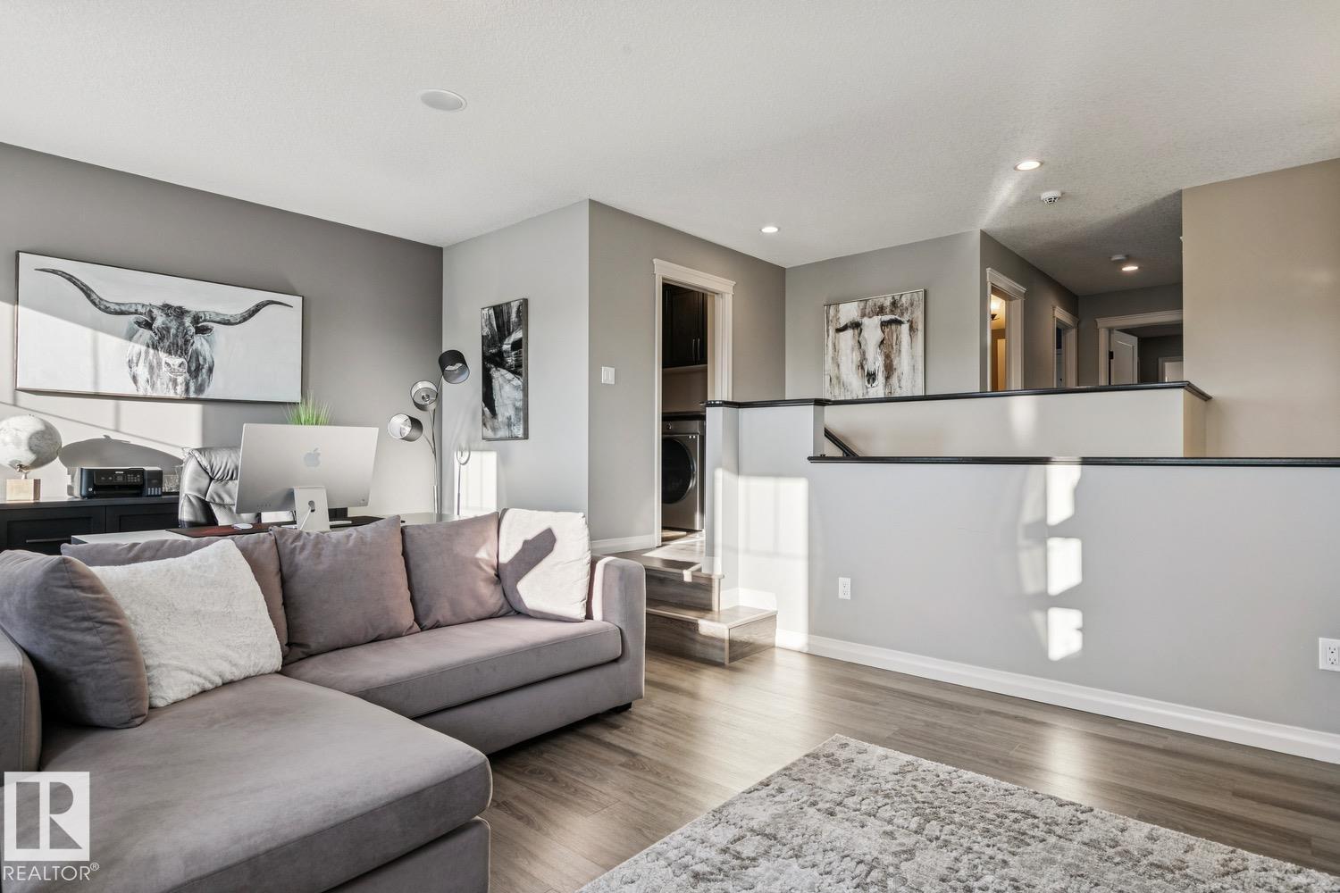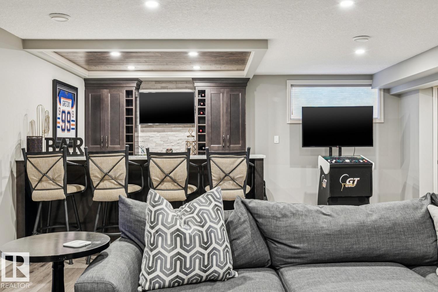 Absolutely gorgeous family home located in the great community of Allard! This 2590+ sqft, FULLY FINISHED 2-storey is loaded with upgrades and will certainly impress. The main floor welcomes you with a very open floor plan, lavish kitchen w/s.s. appliances and granite counters, bright living area w/beautiful gas fireplace, and large dining area. Upstairs you will find the spacious primary suite complete w/5-pc ensuite and walk-in closet, 2 additional good sized bedrooms, additional 5-pc bath, laundry and huge bonus area. The FULLY FINISHED lower level offers an awesome rec area complete w/gorgeous bar, 4th bedroom, 3-pc bath and plenty of storage space. Outside you will enjoy the beautifully landscaped yard and large patio. Central A/C, garage heater, built-in speakers, irrigation system, and more! Located close to schools, shopping and other amenities. Completely turnkey family home in a vibrant community! (id:63190)