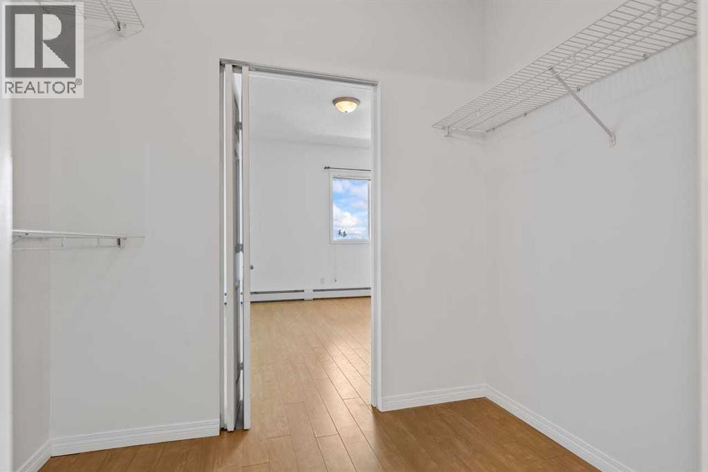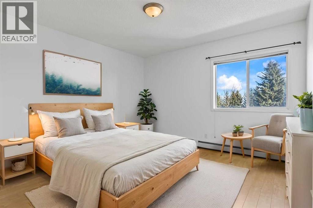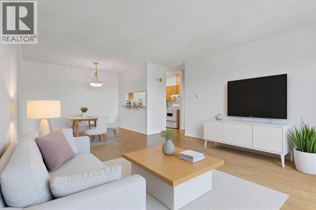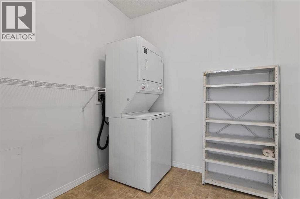 Bright, spacious, and freshly painted, this third-floor condo offers over 1,028 sq ft of comfortable single-level living in Queensland’s Valhalla Ridge. With 2 bedrooms, 2 full bathrooms, 9-ft ceilings, and a large covered balcony, this is an excellent opportunity for buyers looking for a well-kept home with generous room sizes, practical storage, and an easy southeast Calgary location. The layout opens into a large foyer and expansive living and dining area finished with light-toned hard-surface flooring, crisp white walls, and broad windows that bring in natural light and frame a treed, elevated outlook. A sliding glass door leads to the oversized covered balcony with glass railing—an inviting extension of the living space with open views over mature trees and neighbouring rooftops. The kitchen is functional and efficient, with light wood cabinetry, ample counter space, white appliances, a double sink, and a pass-through to the dining area that keeps the main living space feeling connected. The primary bedroom is generously scaled and includes a walk-in closet plus a private 4-piece ensuite. The second bedroom offers excellent flexibility for guests, roommates, or a home office, with its own closet, window, and easy access to the second full 4-piece bathroom. A separate in-suite laundry room adds convenience and extra storage capacity, while the titled underground parking stall and assigned storage area help round out the package. The building also features a welcoming lobby/common seating area and attractive exterior presence. Located in established Queensland, this home places you near the Bow River corridor, Fish Creek Provincial Park, parks and pathways, with convenient access to Bow Bottom Trail and Canyon Meadows Drive for day-to-day commuting and getting around the city. The result is a bright, functional condo with standout square footage, a smart 2-bed/2-bath layout, a large balcony, and the added value of underground parking and storage—all in a well-sit uated southeast Calgary community. Book your showing and see the space, layout, and view for yourself. (id:63190)