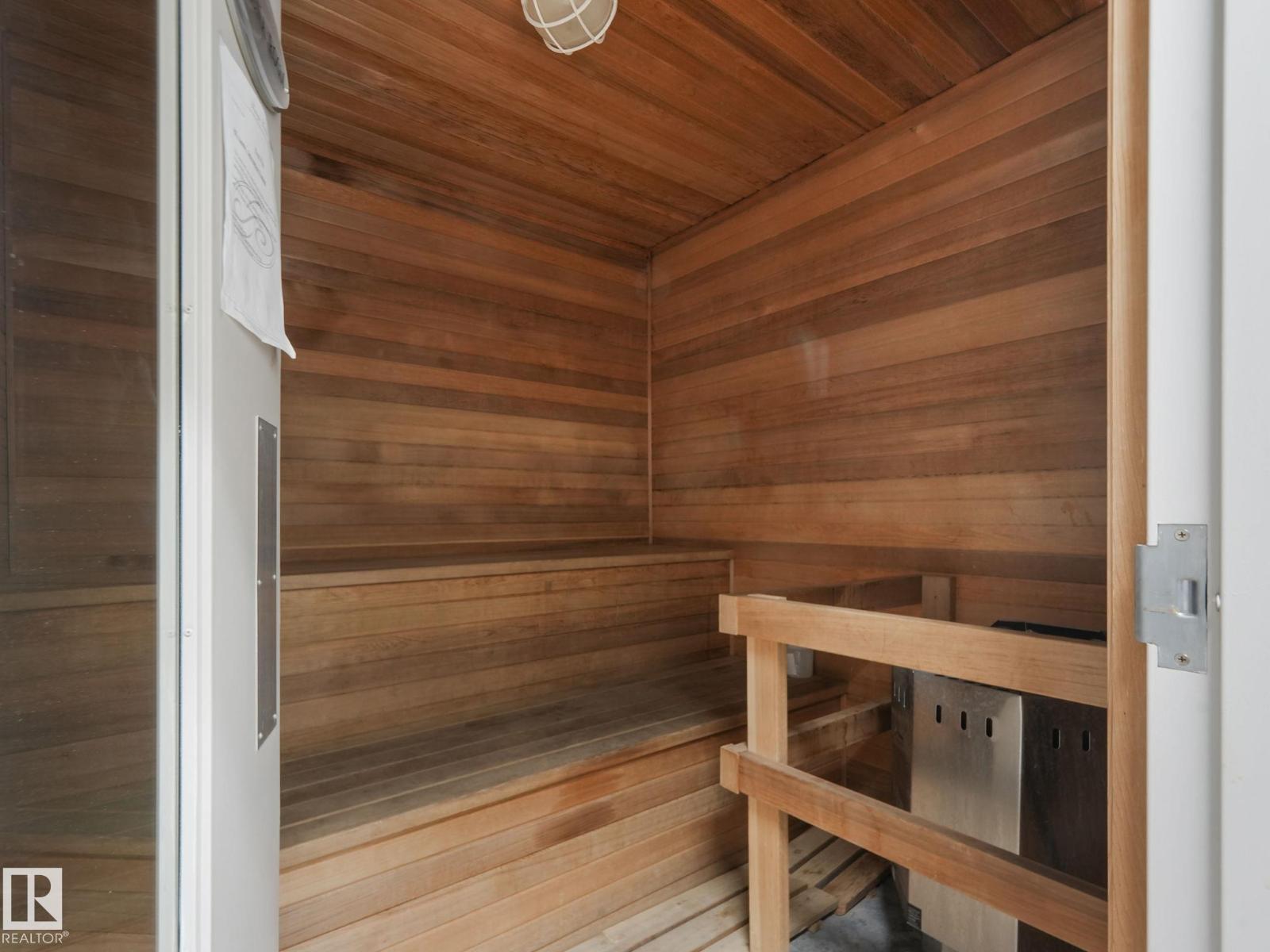 Top floor unit with 10 ft ceiling. This unit offers 2 large bedrooms and 2 full bathrooms. Natural wood kitchen cabinets and granite countertops as well as upgraded appliances. Large living room with a corner fireplace, huge balcony overlooking a park, underground parking and storage. This building is 18 plus. Enjoy steam room, gym, sauna, guest suite. (id:63190)