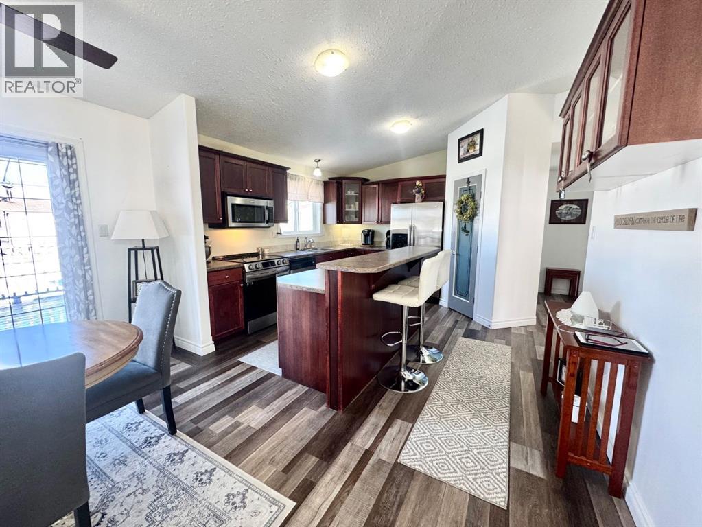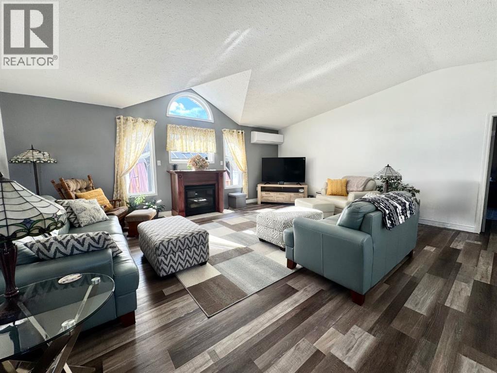 Welcome to this beautifully maintained 1,762 sq ft home, perfectly situated on a large cul-de-sac lot. Offering 3 spacious bedrooms and 2 full bathrooms, this property combines comfort, style, and functionality in an ideal setting. Step inside to an open, inviting living room filled with natural light and enhanced by vaulted ceilings and fresh paint. The home features new vinyl plank flooring, creating a modern and cohesive feel across every room. The large bedrooms provide plenty for family living or guests. The heart of the home is warm and welcoming, highlighted by a stunning gas fireplace, perfect for cozy evenings. The kitchen is equipped with a beautiful new stove, making it move-in ready for home cooks and entertainers alike. More significant recent updates include a new washer and dryer, hot water tank, new shingles, completely rebuilt furnace and the addition of air conditioning / heating wall unit for year-round comfort. Outdoor living is truly exceptional, with two expansive decks, one in the front and one in the back, both complete with charming gazebos. The fully fenced yard offers privacy and space for relaxation, entertaining, or family activities. The backyard backs onto mature trees with no neighbours behind, creating a peaceful, private setting. From the back deck, enjoy scenic views of the ski hill, adding a unique and picturesque touch to your everyday life. Meticulously cared for and thoughtfully updated, this home is a rare find in a desirable cul-de-sac location. (id:63190)