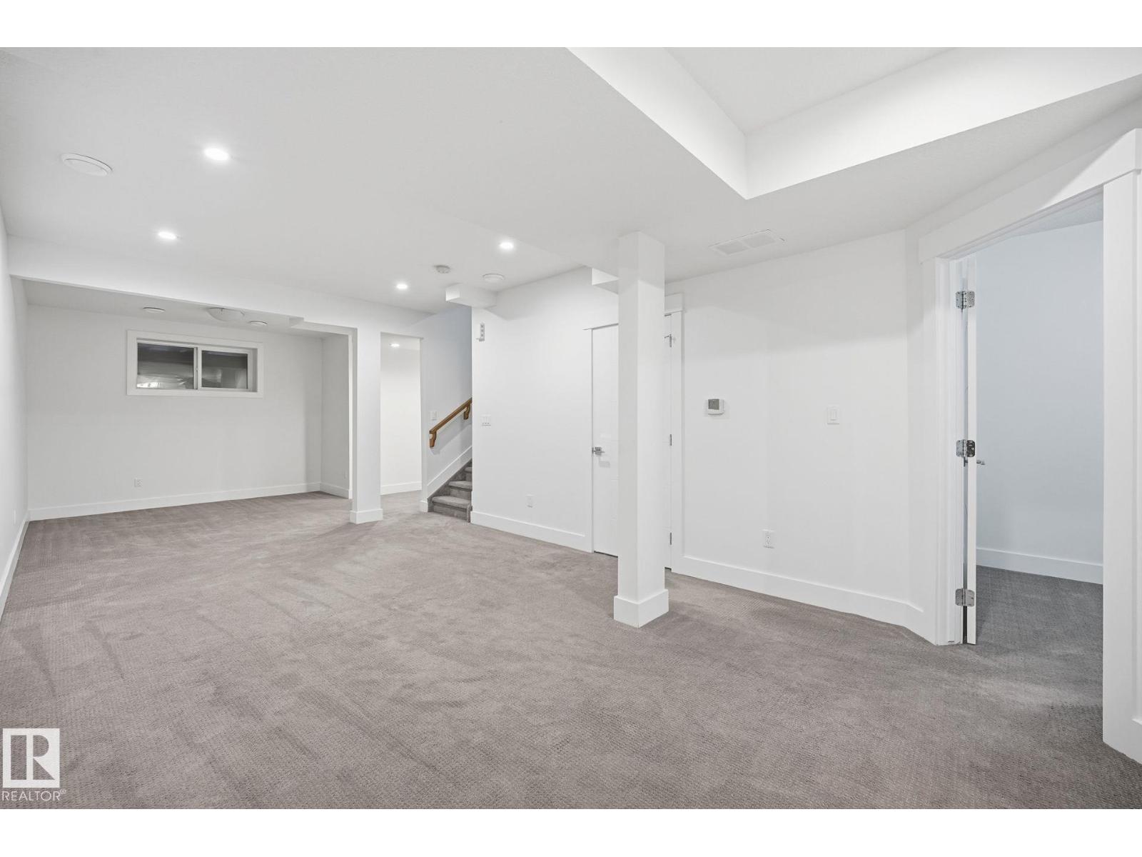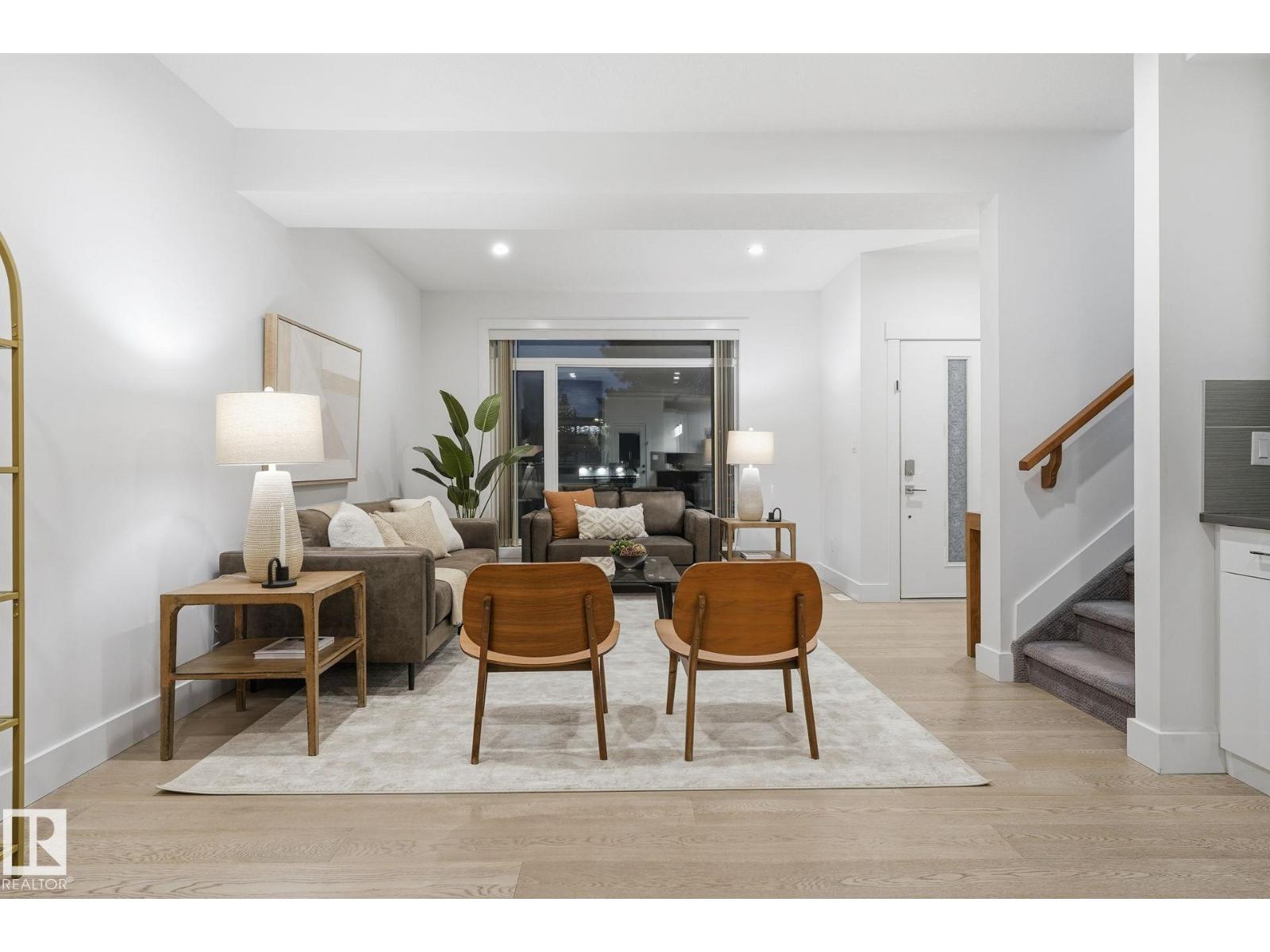 GREAT INVESTMENT OPPORTUNITY in BELGRAVIA, and just steps away from the UNIVERSITY of ALBERTA, and only a few hundred metres to Belgravia LRT (next stop: University Station). This 2-storey infill c/w a SEPARATE ENTRANCE and rough-ins for a FUTURE LEGAL SUITE offering great rental potential for student & professionals alike! Offering 4 beds and 4bath, this half-Duplex features ACRYLIC STUCCO and LUX PANELS with LOW-MAINTENANCE LANDSCAPING front and back, including ARTIFICIAL TURF. Inside HARDWOOD flooring, QUARTZ counters, bar area, gas fireplace. The 2nd floor offers a SPACIOUS PRIMARY bedroom with large walk-in closet, DUAL-SINK ENSUITE, and BALCONY. Two more bedrooms, upstairs laundry, and a 4-pc bath complete the 2nd level. The FULLY FINISHED BASEMENT includes a large family room, 4th bedroom, full bath. DOUBLE GARAGE, modern exterior, and walkable location close to cafés, transit, parks, and Edmonton’s core amenities make this a turnkey option for professionals, families, or investors alike. (id:63190)