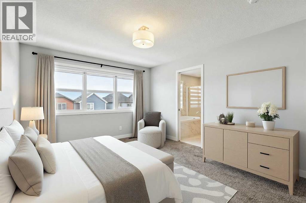 Lake living in Mahogany ~ Located in Calgary’s sought-after lake community of Mahogany, this well-maintained four-bedroom, three-bathroom home offers a practical layout, quality upgrades, and a desirable corner lot location across from green space. CORNER LOT LOCATION ACROSS FROM GREEN SPACE provides added privacy and open views in a quiet, family-friendly setting. The main floor is designed for both flexibility and function, featuring a rare bedroom with direct access to a full cheater ensuite via a pocket door—MAIN FLOOR BEDROOM WITH FULL BATH is ideal for guests, multigenerational living, or a private office. The open-concept layout provides clear sightlines between the living and dining areas, while the kitchen is well-equipped with white cabinetry, granite countertops, a gas cooktop, built-in oven and microwave, hood fan, dishwasher, and a granite sink, complemented by a large central island and walk-in corner pantry for ample prep space and storage. Upstairs includes three generously sized bedrooms, including a primary suite with private ensuite, along with bathrooms finished with quartz countertops, custom built-in closet organizers in all bedrooms, and a convenient upper-level laundry area with washer and dryer; select window coverings, including remote-controlled options, are already installed. SEPARATE SIDE ENTRANCE WITH FUTURE BASEMENT POTENTIAL is supported by a completed stairwell and 9-foot basement ceilings, offering excellent opportunity for future development. Additional upgrades include TWO FURNACES, TANKLESS WATER HEATER, AND SOLAR PANELS, improving efficiency and long-term operating costs, along with a basement freezer and an attached garage roughed-in for a gas heater. Outdoor features include a balcony and a spacious backyard with rear lane access, providing additional flexibility. WALKING DISTANCE TO LAKE, BEACH CLUB, SCHOOLS, AND AMENITIES ensures convenient access to Mahogany Lake, wetlands, pathways, schools, shopping, dining, and nearby Se ton amenities including South Health Campus and YMCA, with quick access to Deerfoot and Stoney Trail for an easy commute. (id:63190)