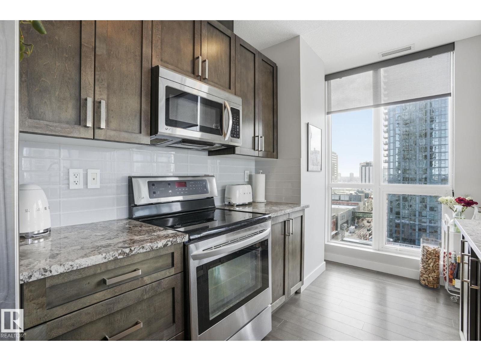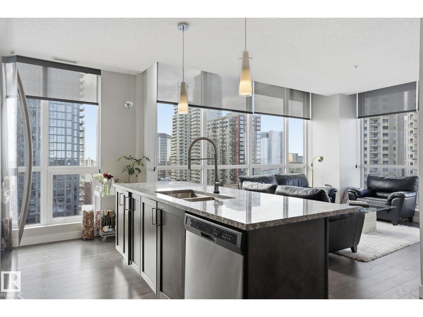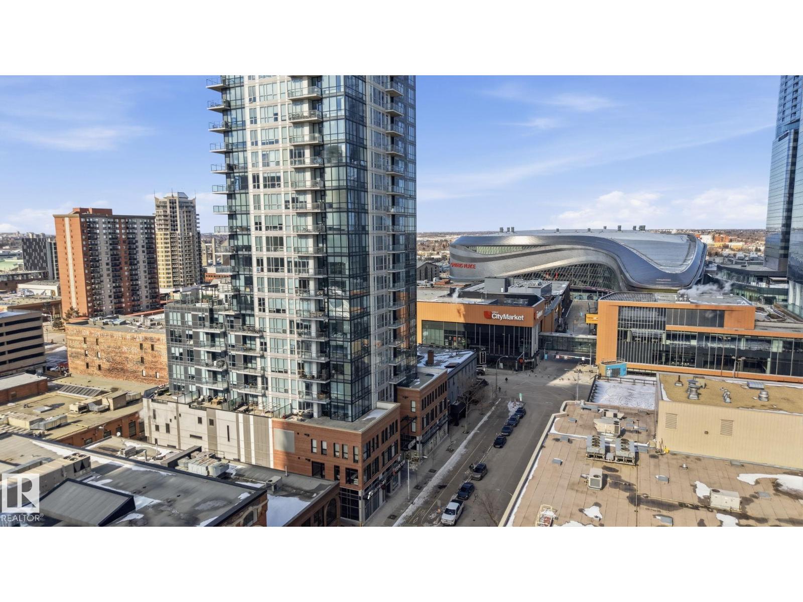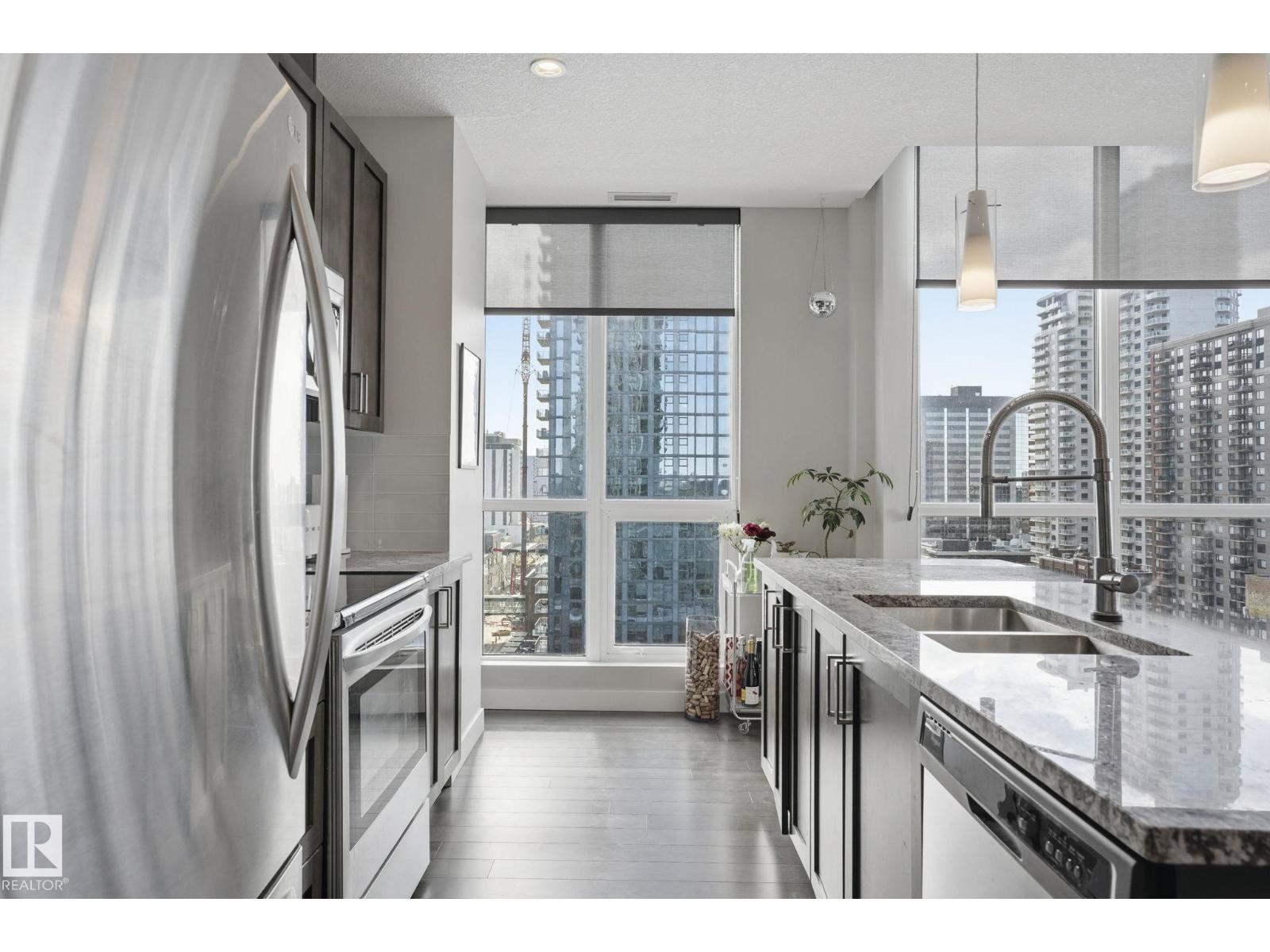 Live above it all in the Ultima! This fantastic corner unit delivers stunning panoramic views and an effortless urban lifestyle. With 2 bedrooms and 2 full baths, the layout is functional and inviting, anchored by a modern kitchen with granite countertops and stainless steel appliances. Enjoy your private balcony overlooking the Ice District with skyline views and unforgettable sunsets. Titled heated underground parking included. Step outside and you’re minutes from Rogers Place, MacEwan University, City Market, Jasper Ave, and some of the city’s best dining spots and nightlife. Simple, stylish, and in the heart of it all. (id:63190)