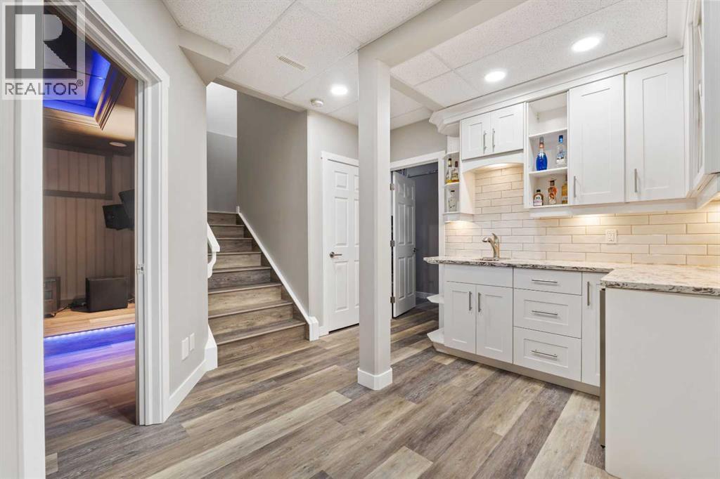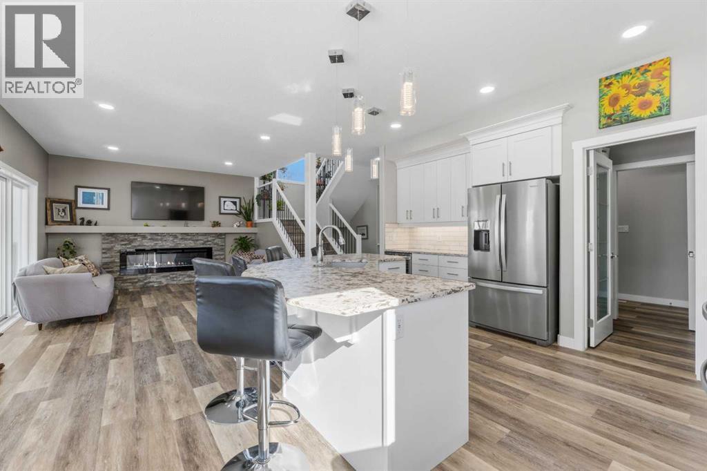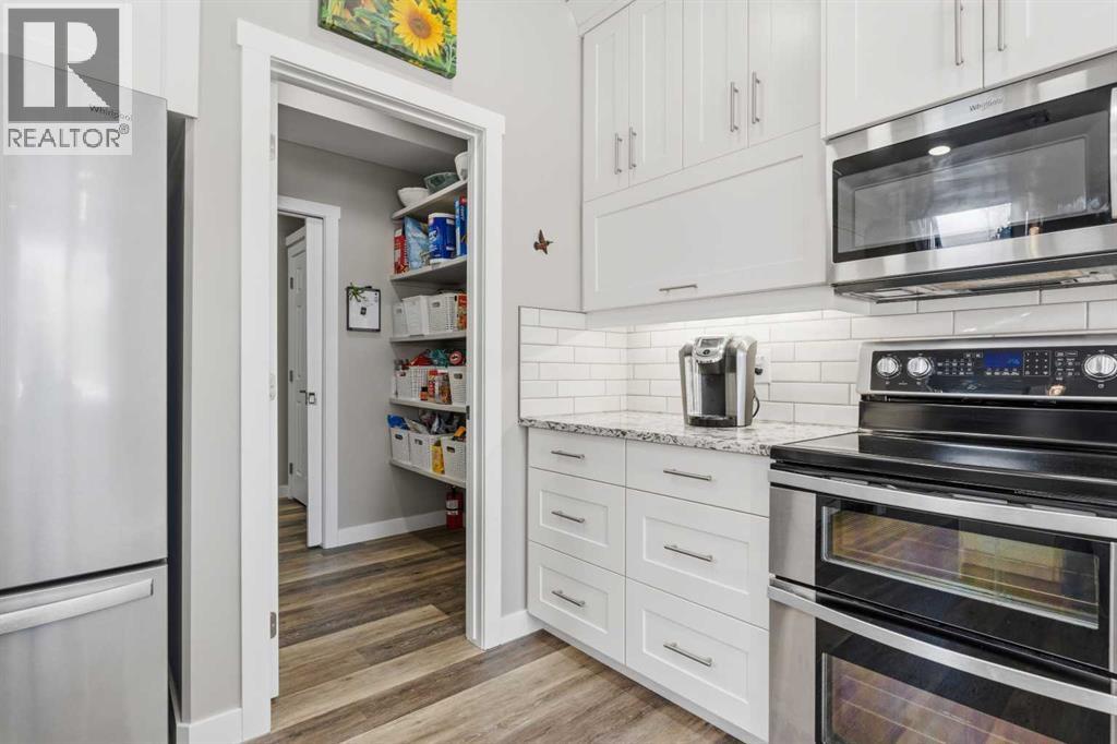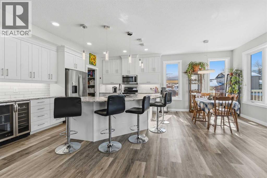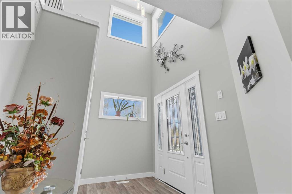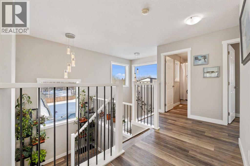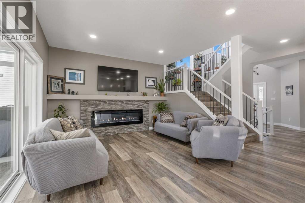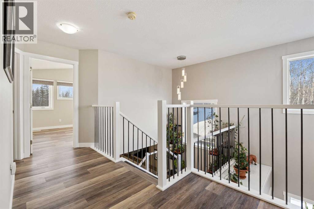 Custom home is situated in a quiet cul-de-sac backing onto green space, offering direct access to paved trails leading to the Athabasca River or Festival Park. The exterior features a wide aggregate driveway to a massive 1,068 sq. ft. triple-car garage with 11-foot ceilings, an overhead heater, hot and cold taps, a dedicated dog wash, EV charging, and a convenient drive-thru bay to the backyard. Inside, the main floor greets you with a soaring entryway looking up to the second level, 9-foot ceilings throughout, and a smart second entrance from the garage to hide clutter from guests. The gourmet kitchen is a standout with quartz countertops, a walk-through pantry, upgraded ceiling-height cabinets, a bar fridge, and an electric stove with a double oven, all centered around a large island that seats five (or more) comfortably. This space flows into a bright dining area with south and west-facing windows for evening sun, and a living room with an electric fireplace that opens to a fully enclosed, insulated 3-season room featuring a natural gas line and a commercial-grade hood fan for year-round indoor grilling. Upstairs, extra-wide stairs facilitate easy furniture movement and lead to three bedrooms and a convenient laundry room. The primary suite has soundproofing in the floor, wall, and door for total quiet, and windows overlooking your backyard. A 5-piece ensuite with two sinks, triple shower heads and a 15-foot walk-through closet that leads directly into the laundry room. The fully finished basement adds a fourth bedroom with a walk-in closet, a wet bar with a matching bar fridge, and a fully soundproofed theatre room with two hidden windows already installed for an easy conversion to a 5th bedroom if needed. The home also includes the convenience of a built-in central vacuum system with a quick-sweep plate in the kitchen for effortless cleanup, along with a large, finished storage area tucked under the stairs featuring matching flooring and trim. Every inch of thi s home is built for efficiency and comfort, featuring fire- and hail-resistant Hardie Board on an ICF block foundation, a dual-zone high-efficiency furnace for separate temperature control on each level, a 60-gallon hot water tank, and a Black Box electrical system that intelligently manages power between your EV charger and appliances. Hot and cold taps front and back outside are such little examples of the upgrades this home holds. This residence is a masterpiece! (id:63190)