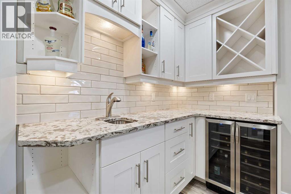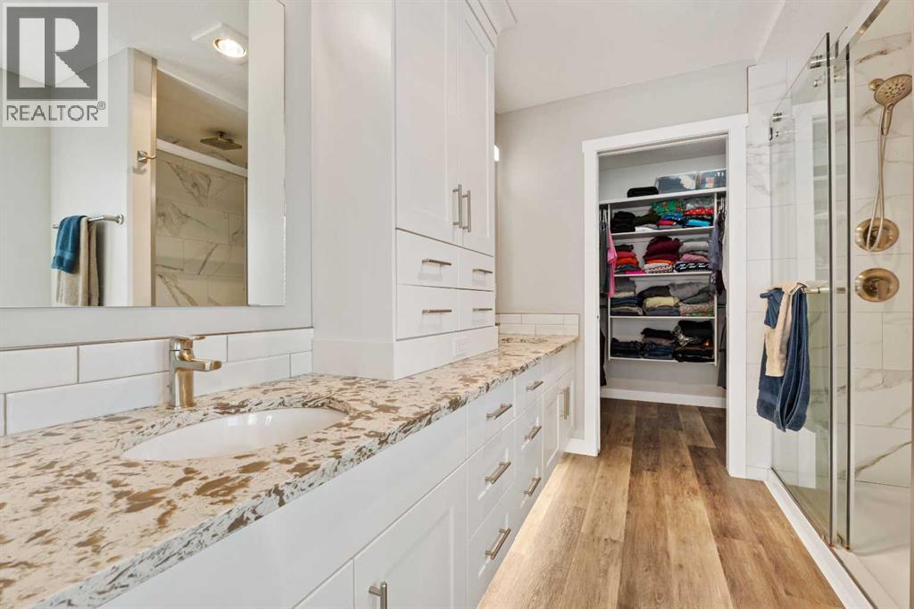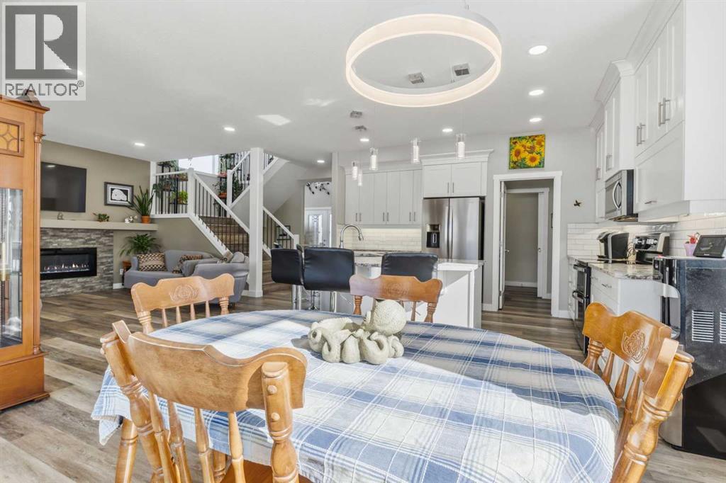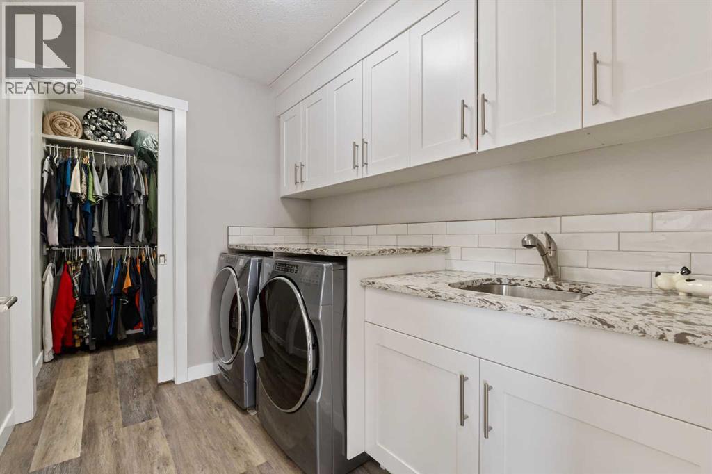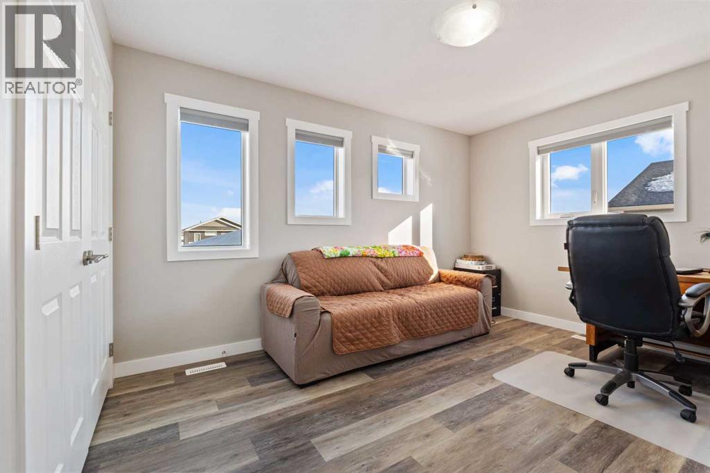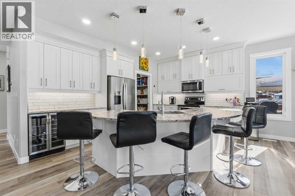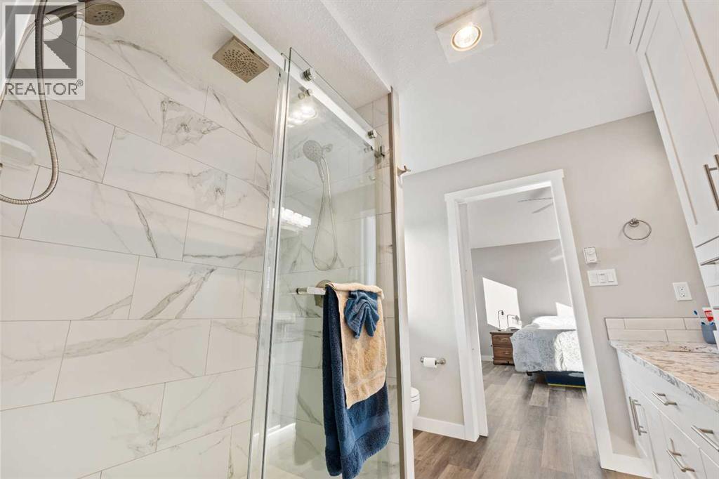 Custom home is situated in a quiet cul-de-sac backing onto green space, offering direct access to paved trails leading to the Athabasca River or Festival Park. The exterior features a wide aggregate driveway to a massive 1,068 sq. ft. triple-car garage with 11-foot ceilings, an overhead heater, hot and cold taps, a dedicated dog wash, EV charging, and a convenient drive-thru bay to the backyard. Inside, the main floor greets you with a soaring entryway looking up to the second level, 9-foot ceilings throughout, and a smart second entrance from the garage to hide clutter from guests. The gourmet kitchen is a standout with quartz countertops, a walk-through pantry, upgraded ceiling-height cabinets, a bar fridge, and an electric stove with a double oven, all centered around a large island that seats five (or more) comfortably. This space flows into a bright dining area with south and west-facing windows for evening sun, and a living room with an electric fireplace that opens to a fully enclosed, insulated 3-season room featuring a natural gas line and a commercial-grade hood fan for year-round indoor grilling. Upstairs, extra-wide stairs facilitate easy furniture movement and lead to three bedrooms and a convenient laundry room. The primary suite has soundproofing in the floor, wall, and door for total quiet, and windows overlooking your backyard. A 5-piece ensuite with two sinks, triple shower heads and a 15-foot walk-through closet that leads directly into the laundry room. The fully finished basement adds a fourth bedroom with a walk-in closet, a wet bar with a matching bar fridge, and a fully soundproofed theatre room with two hidden windows already installed for an easy conversion to a 5th bedroom if needed. The home also includes the convenience of a built-in central vacuum system with a quick-sweep plate in the kitchen for effortless cleanup, along with a large, finished storage area tucked under the stairs featuring matching flooring and trim. Every inch of thi s home is built for efficiency and comfort, featuring fire- and hail-resistant Hardie Board on an ICF block foundation, a dual-zone high-efficiency furnace for separate temperature control on each level, a 60-gallon hot water tank, and a Black Box electrical system that intelligently manages power between your EV charger and appliances. Hot and cold taps front and back outside are such little examples of the upgrades this home holds. This residence is a masterpiece! (id:63190)
