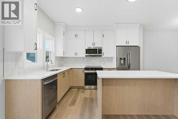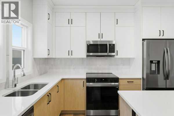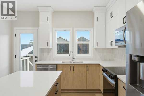 Welcome to The Old Castle by McKee Homes — a beautifully finished 3-bed, 2.5-bath home in the heart of Bayside, one of Airdrie's most established and prestigious canal communities.Enjoy all-day sunshine in your south-facing backyard, fully landscaped and ready for you from day one. Inside, the main floor impresses with 9' ceilings, luxury vinyl plank flooring, 1¼" quartz countertops, undermount vanity sinks, triple pane windows, and a blind package throughout. A full appliance package is included — just move in and enjoy.The open-concept main floor features a spacious living room and dining area , perfect for entertaining. Upstairs, the owners' suite offers a private ensuite, alongside two additional bedrooms and upper floor laundry.Bayview delivers the lifestyle — tree-lined streets, canal-side pathways, parks, bridges, and a brand new pump track park (2025). Walk to Nose Creek School, nearby shops, and enjoy quick access to downtown Airdrie. Alberta New Home Warranty and BuiltGreen certified. Opportunities in Bayview are limited — Don't miss your chance to call this exceptional community home. (id:63190)