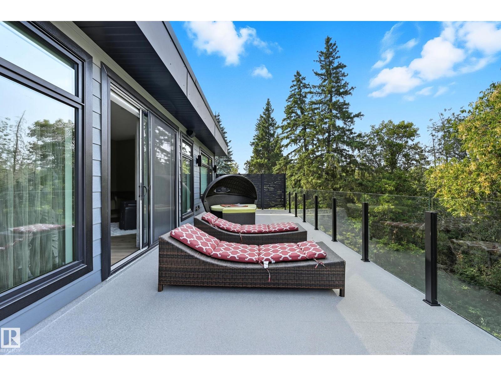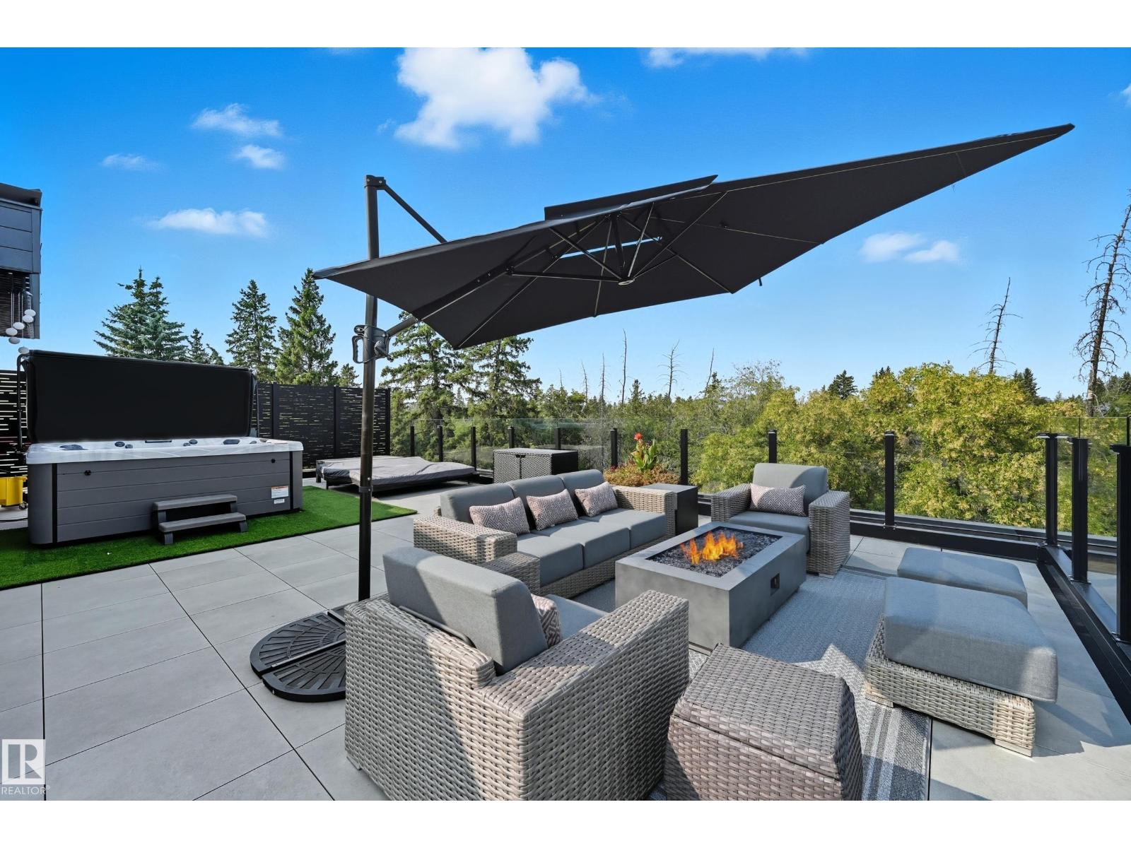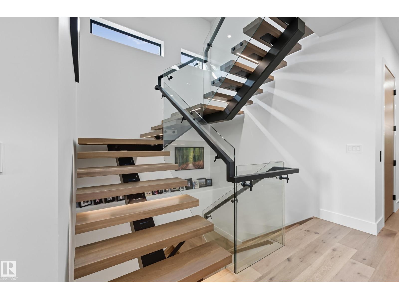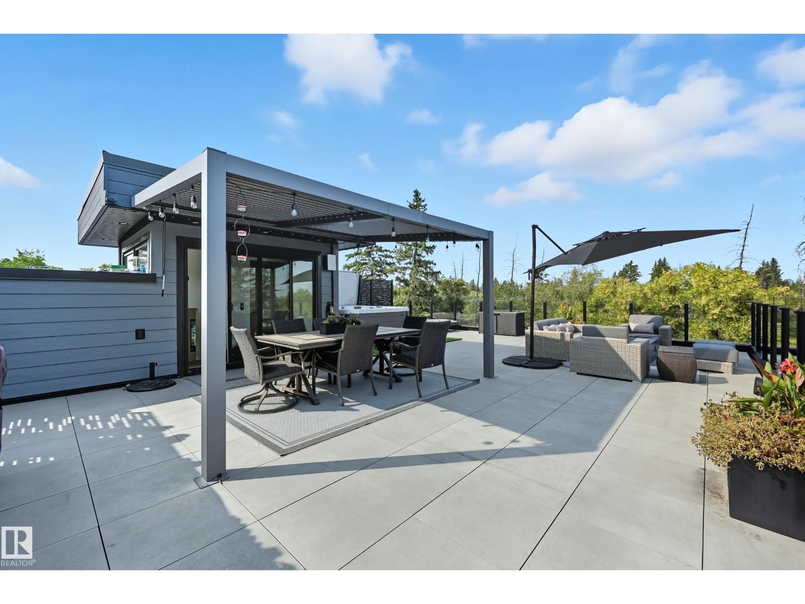 Experience luxury living in this stunning 5,700 sq ft smart home in Edmonton’s prestigious Parkview neighborhood. Just one year old, the home features soaring ceilings, floor-to-ceiling windows, hardwood floors, designer lighting, and a dramatic four-storey glass staircase. The Italian-designed chef’s kitchen includes premium appliances, custom cabinetry, and a waterfall island. The expansive primary suite offers a spa-inspired ensuite with heated floors, steam shower, soaking tub, walk-in closets with LED lighting, and a private patio. Fully integrated smart technology controls lighting, climate, blinds, security, and audio. Additional highlights include a four-level elevator, entertainment basement with gym, bar, golf simulator, guest suite, a 6-7 car EV-ready garage, and a 1,600 sq ft rooftop patio with hot tub and breathtaking city and ravine views. (id:63190)