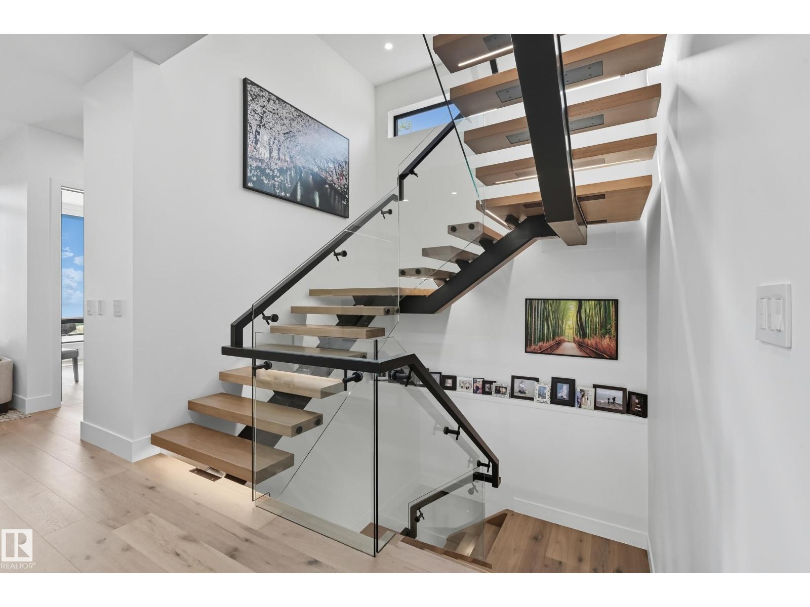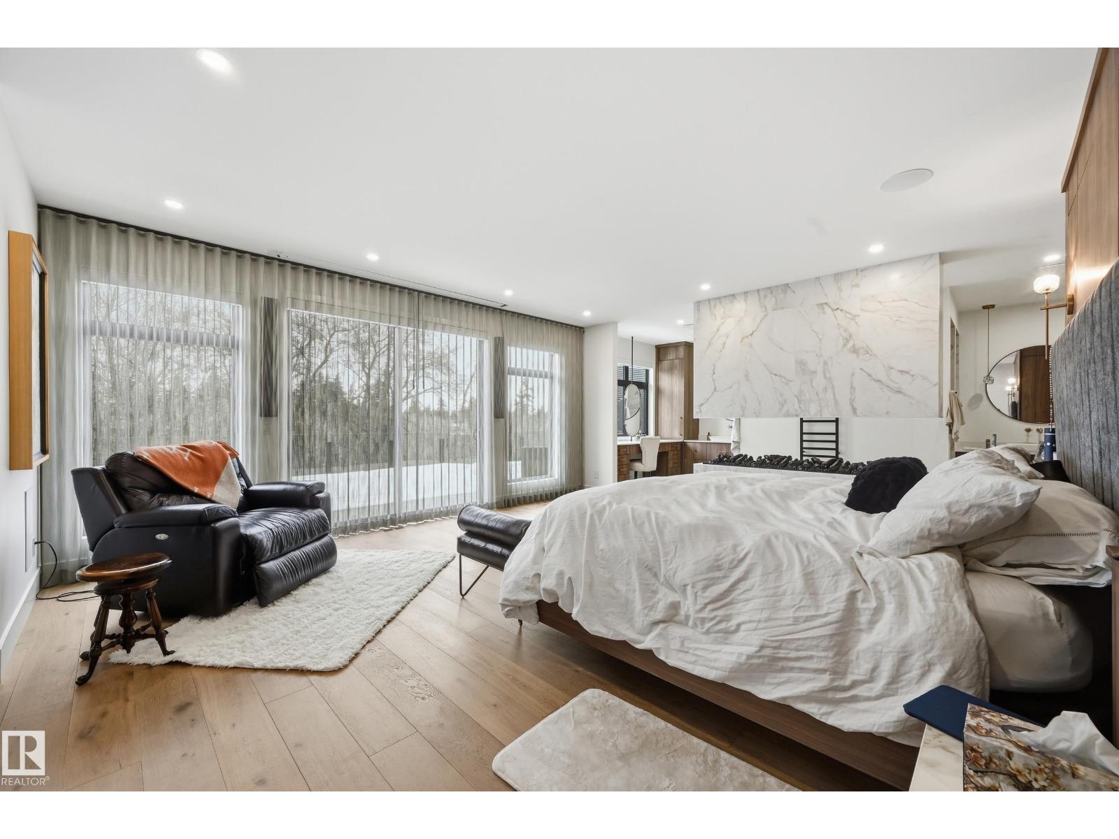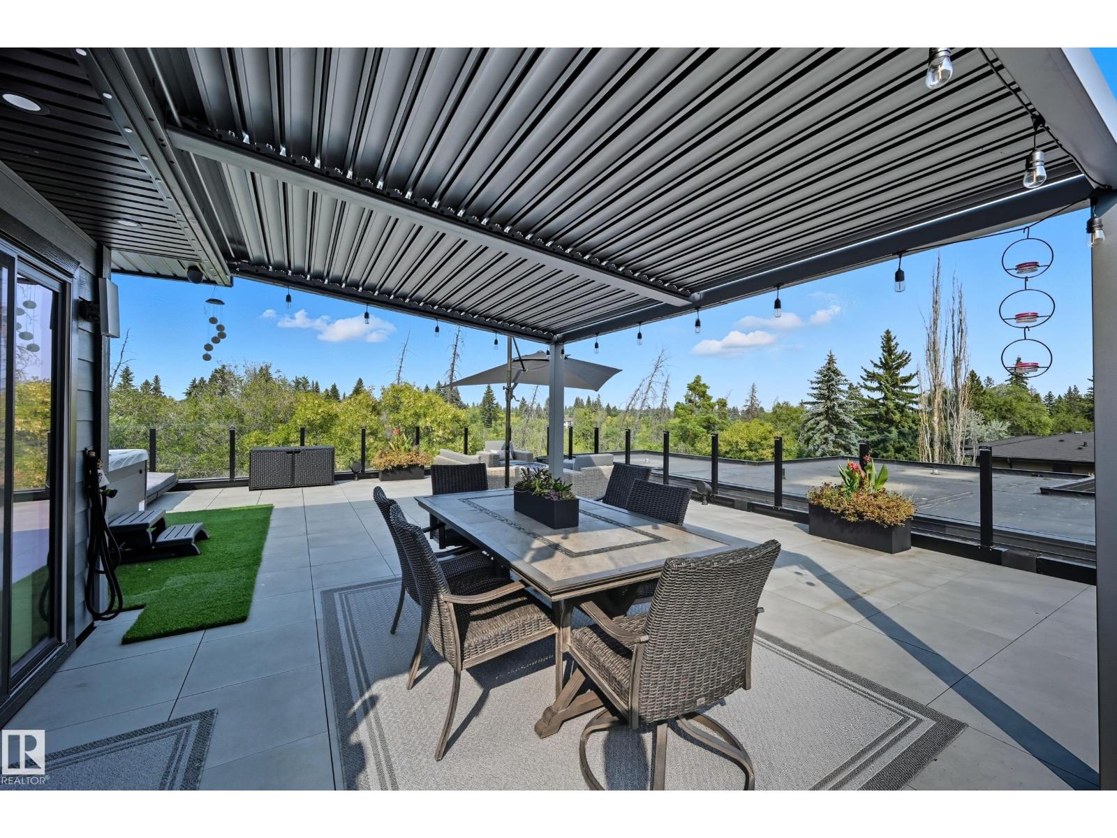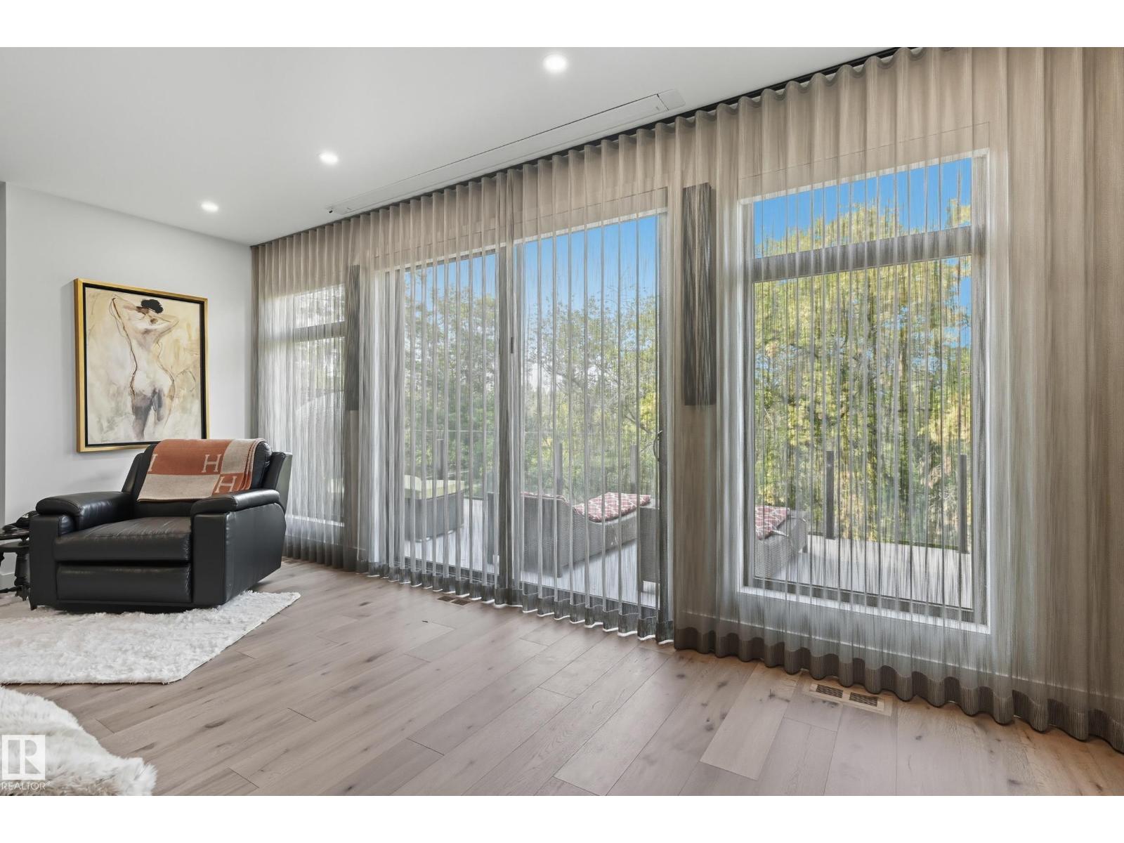 Experience luxury living in this stunning 5,700 sq ft smart home in Edmonton’s prestigious Parkview neighborhood. Just one year old, the home features soaring ceilings, floor-to-ceiling windows, hardwood floors, designer lighting, and a dramatic four-storey glass staircase. The Italian-designed chef’s kitchen includes premium appliances, custom cabinetry, and a waterfall island. The expansive primary suite offers a spa-inspired ensuite with heated floors, steam shower, soaking tub, walk-in closets with LED lighting, and a private patio. Fully integrated smart technology controls lighting, climate, blinds, security, and audio. Additional highlights include a four-level elevator, entertainment basement with gym, bar, golf simulator, guest suite, a 6-7 car EV-ready garage, and a 1,600 sq ft rooftop patio with hot tub and breathtaking city and ravine views. (id:63190)
