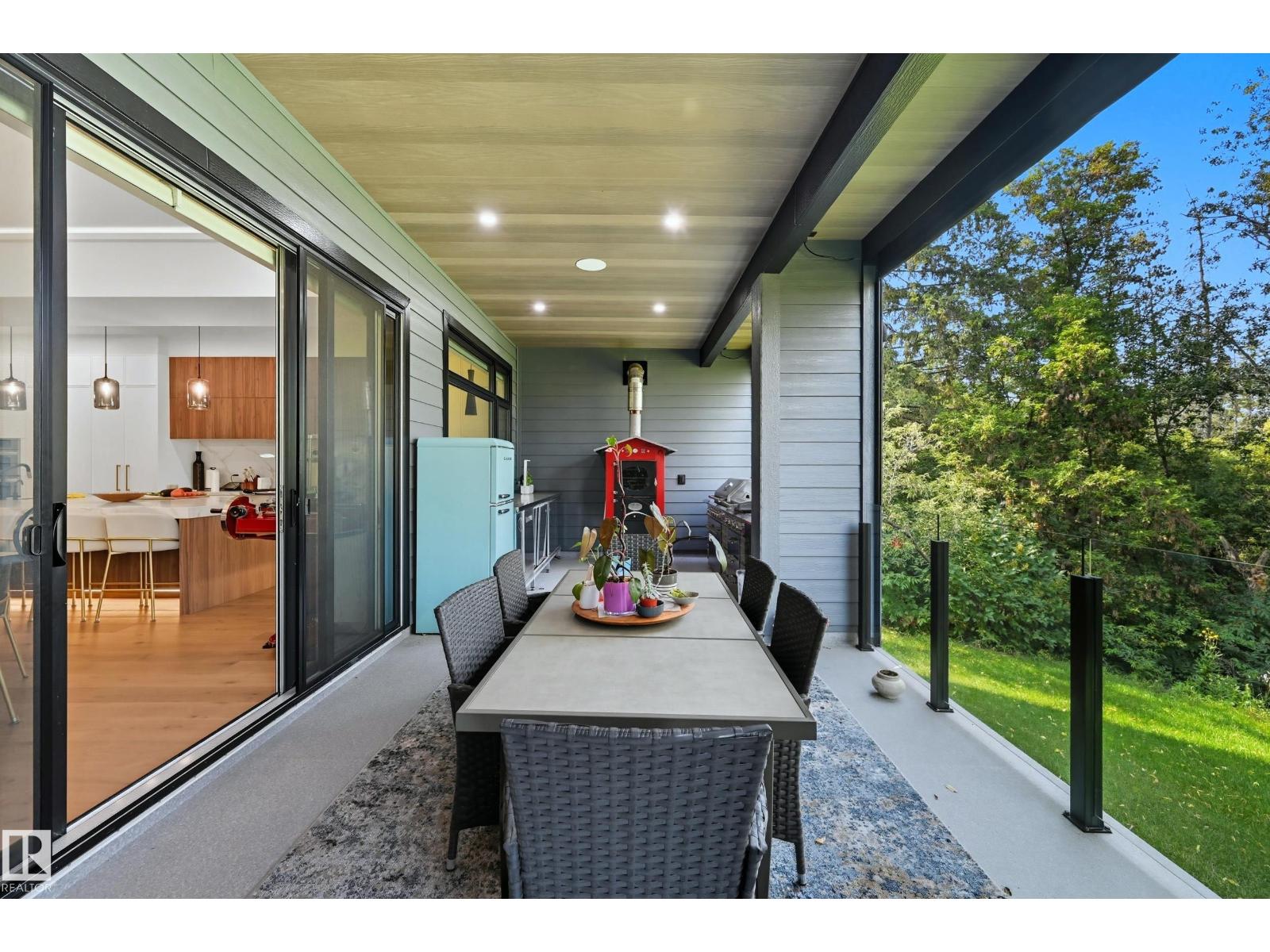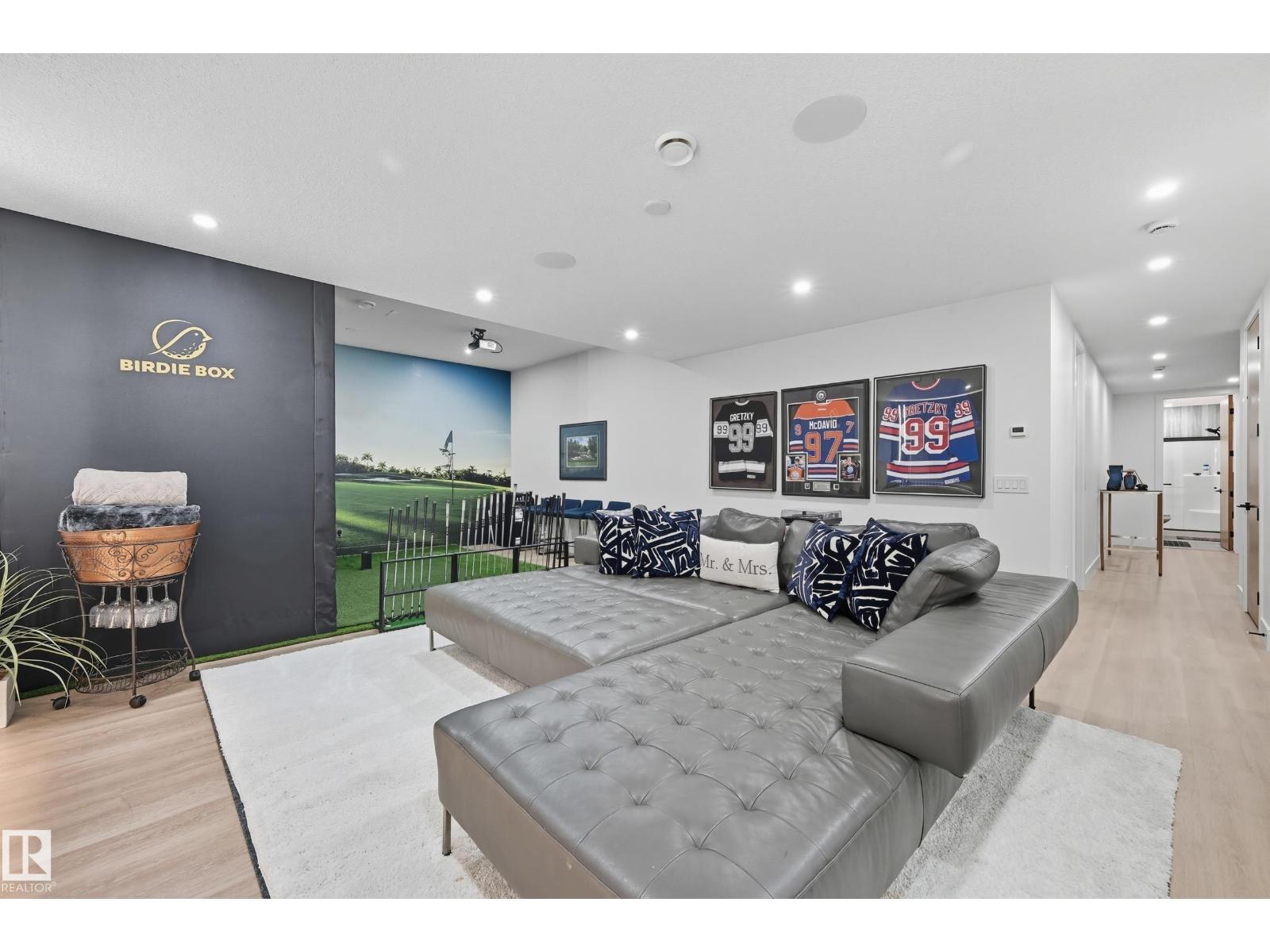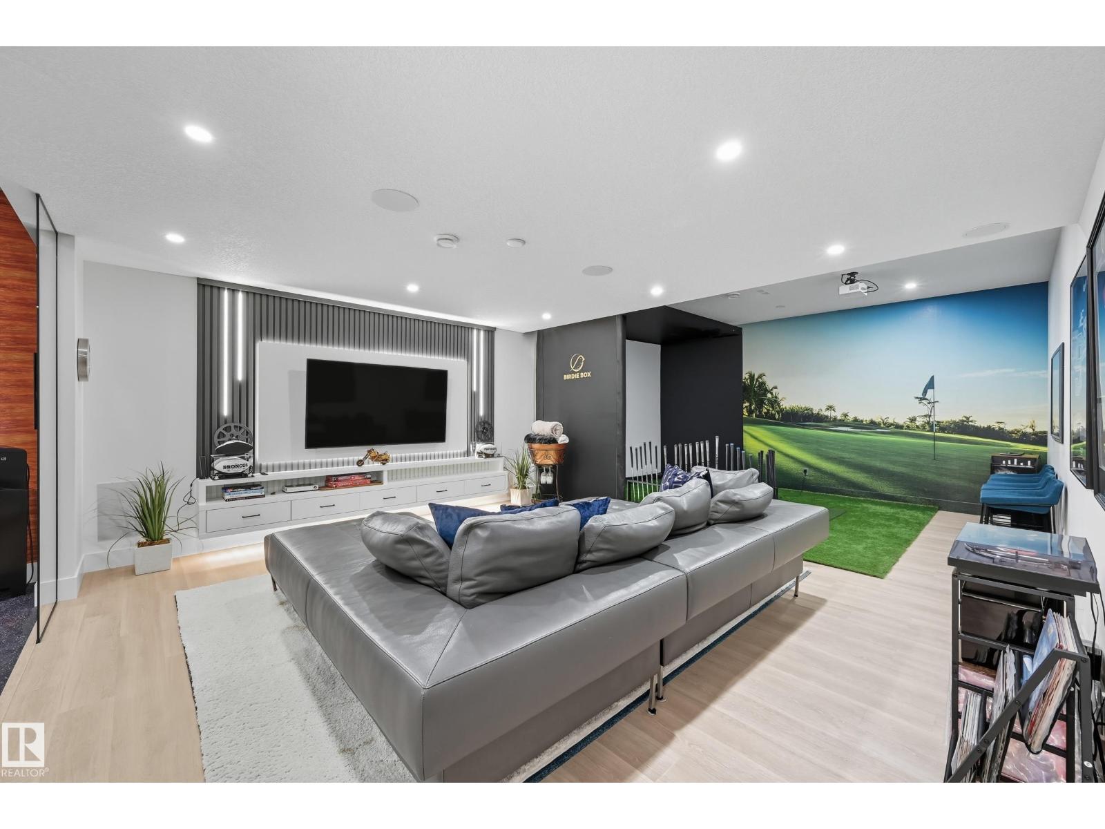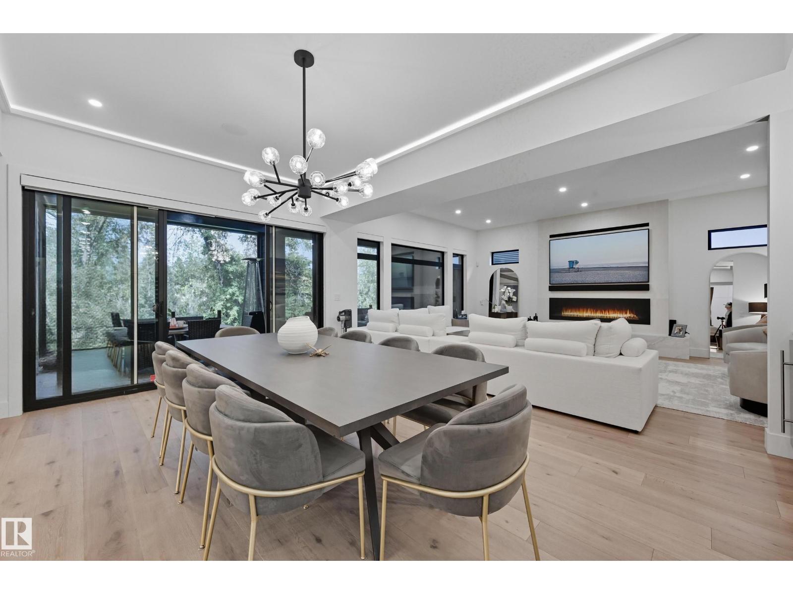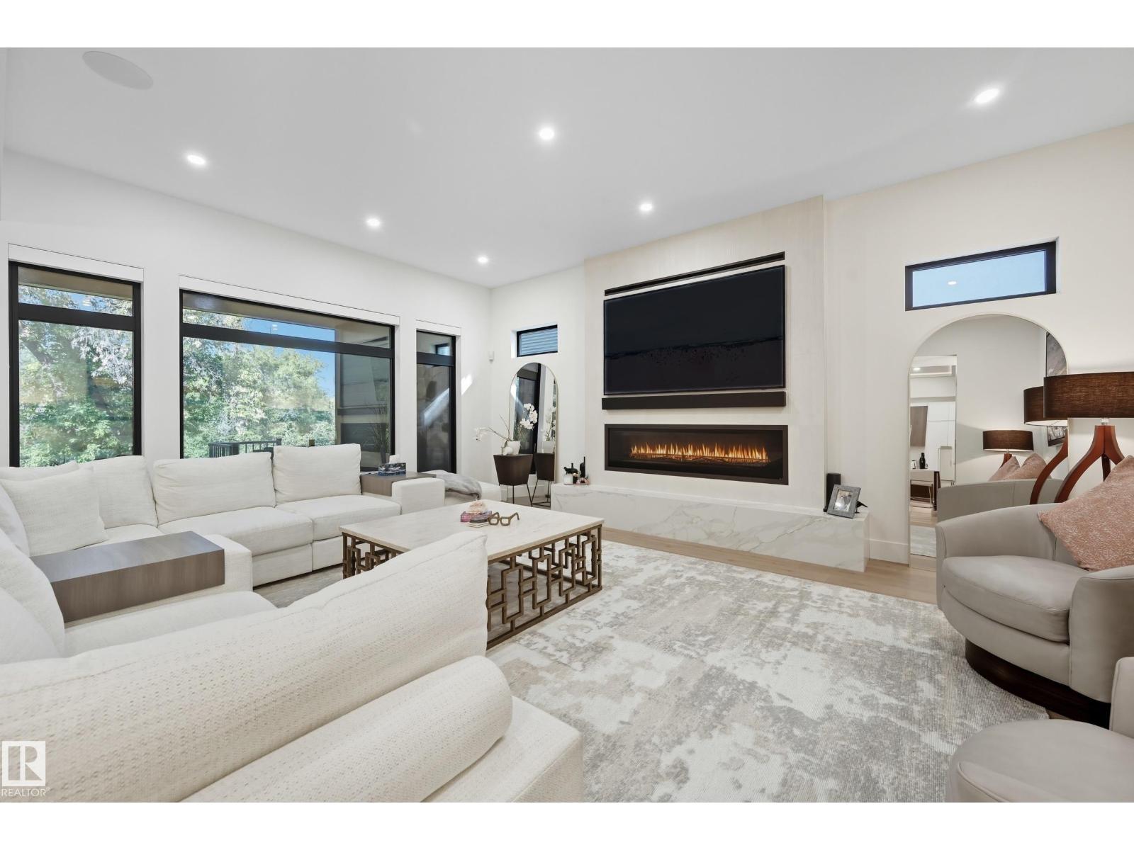 Experience luxury living in this stunning 5,700 sq ft smart home in Edmonton’s prestigious Parkview neighborhood. Just one year old, the home features soaring ceilings, floor-to-ceiling windows, hardwood floors, designer lighting, and a dramatic four-storey glass staircase. The Italian-designed chef’s kitchen includes premium appliances, custom cabinetry, and a waterfall island. The expansive primary suite offers a spa-inspired ensuite with heated floors, steam shower, soaking tub, walk-in closets with LED lighting, and a private patio. Fully integrated smart technology controls lighting, climate, blinds, security, and audio. Additional highlights include a four-level elevator, entertainment basement with gym, bar, golf simulator, guest suite, a 6-7 car EV-ready garage, and a 1,600 sq ft rooftop patio with hot tub and breathtaking city and ravine views. (id:63190)