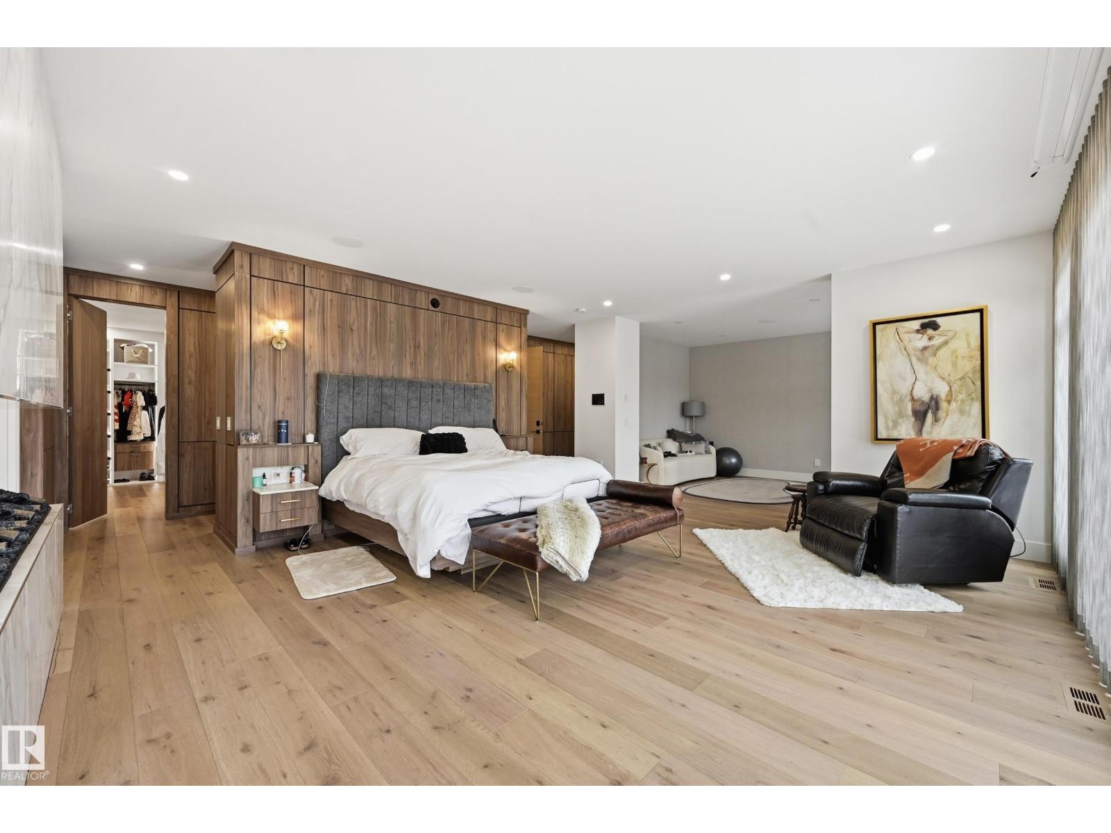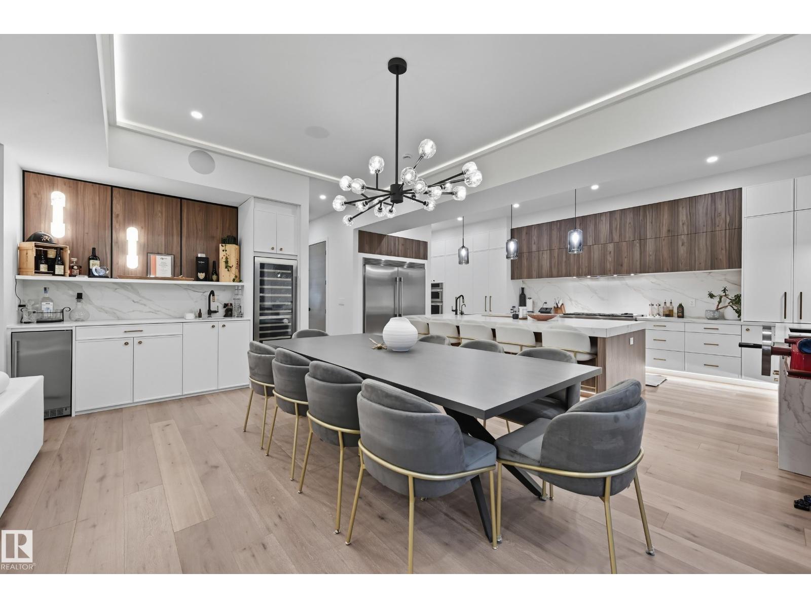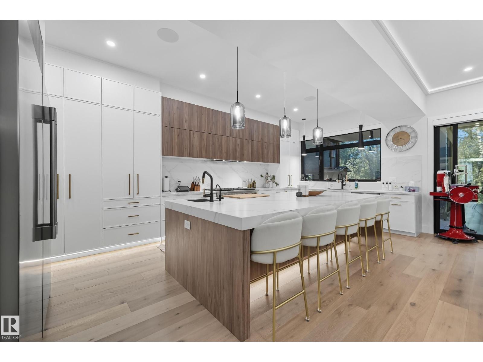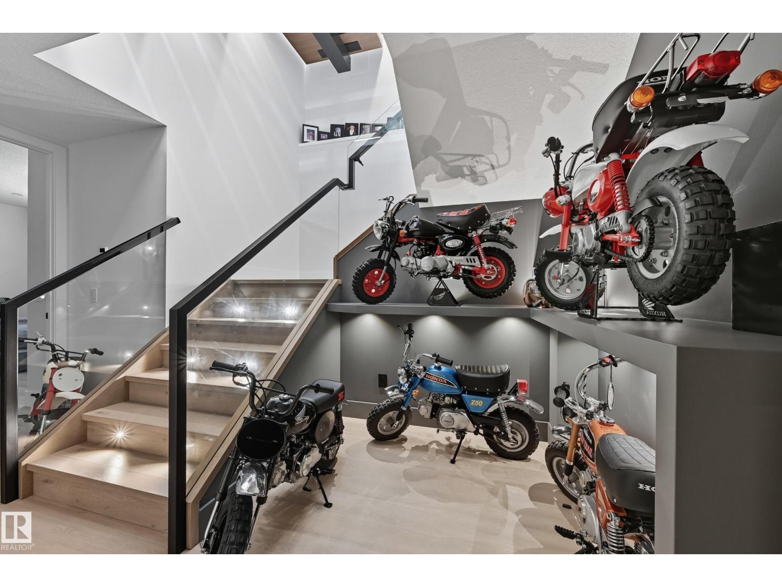 Experience luxury living in this stunning 5,700 sq ft smart home in Edmonton’s prestigious Parkview neighborhood. Just one year old, the home features soaring ceilings, floor-to-ceiling windows, hardwood floors, designer lighting, and a dramatic four-storey glass staircase. The Italian-designed chef’s kitchen includes premium appliances, custom cabinetry, and a waterfall island. The expansive primary suite offers a spa-inspired ensuite with heated floors, steam shower, soaking tub, walk-in closets with LED lighting, and a private patio. Fully integrated smart technology controls lighting, climate, blinds, security, and audio. Additional highlights include a four-level elevator, entertainment basement with gym, bar, golf simulator, guest suite, a 6-7 car EV-ready garage, and a 1,600 sq ft rooftop patio with hot tub and breathtaking city and ravine views. (id:63190)