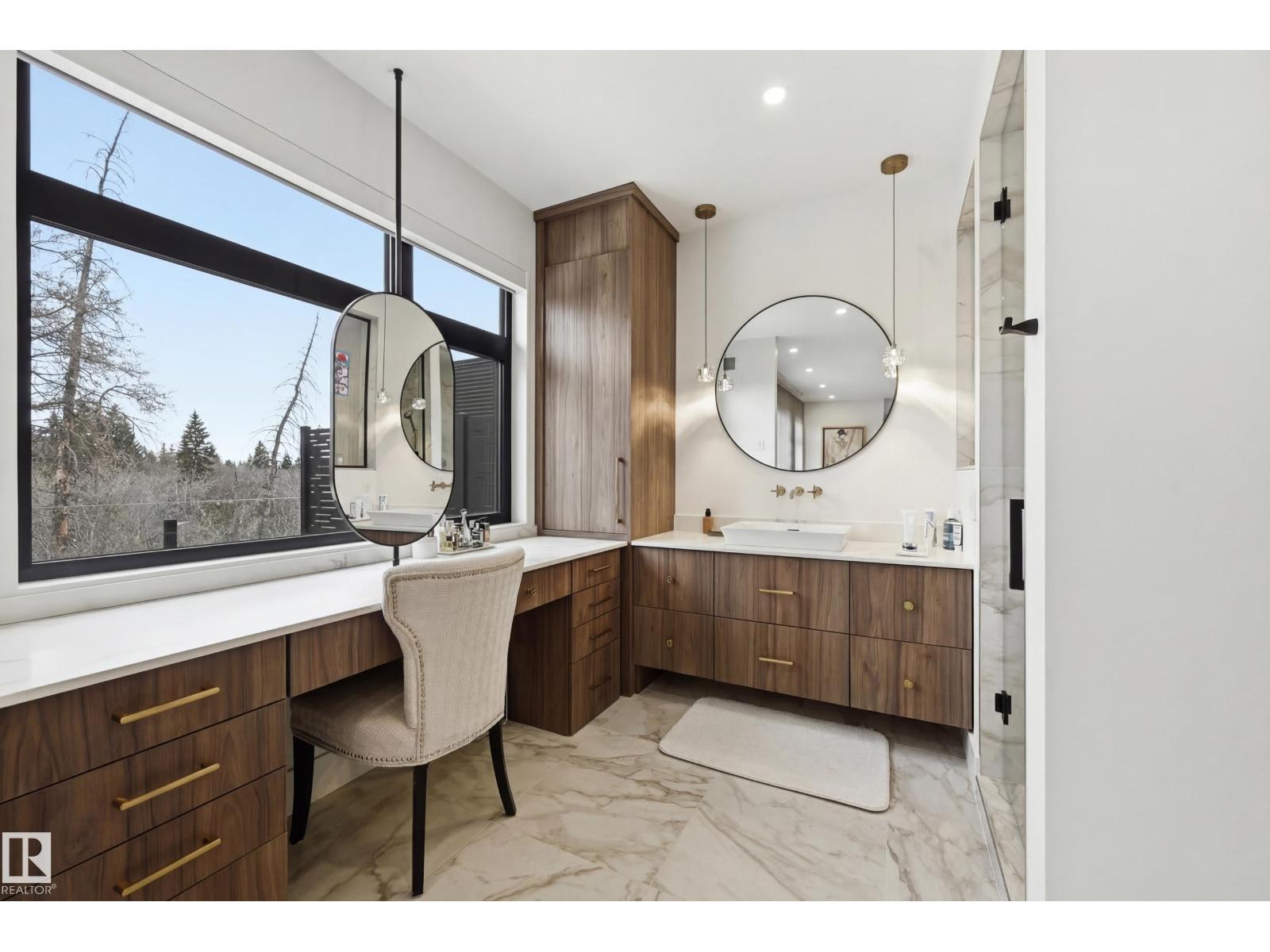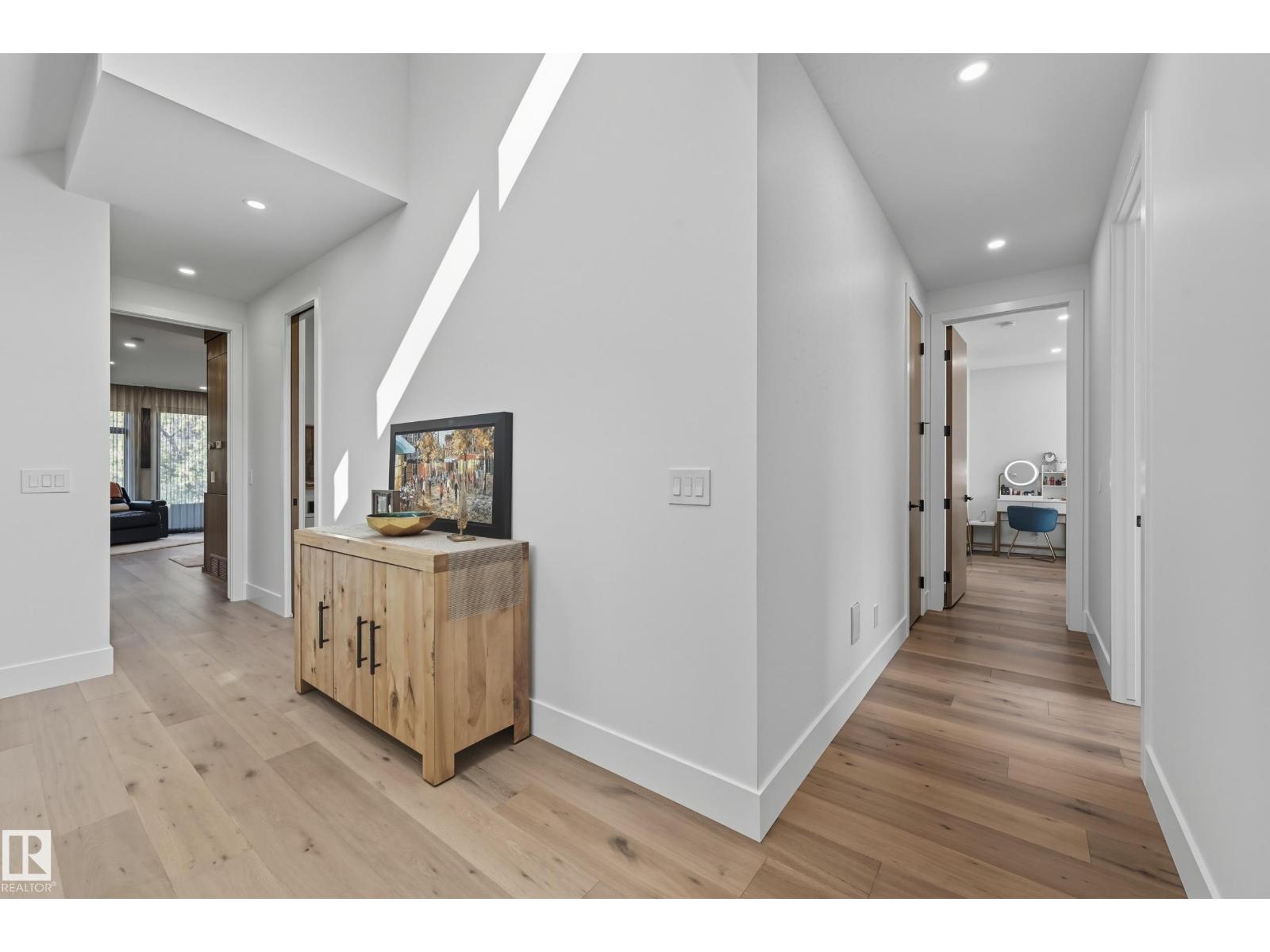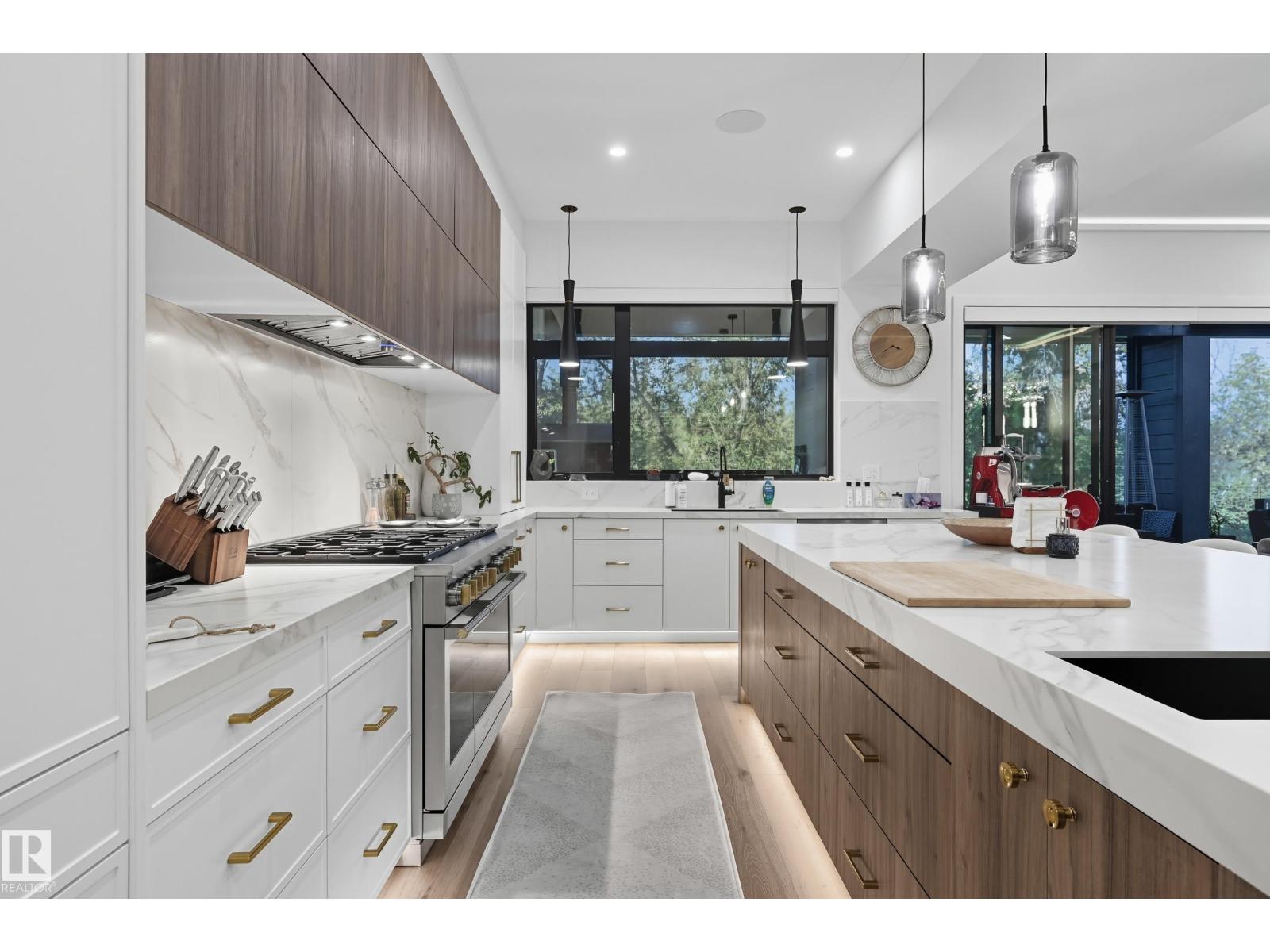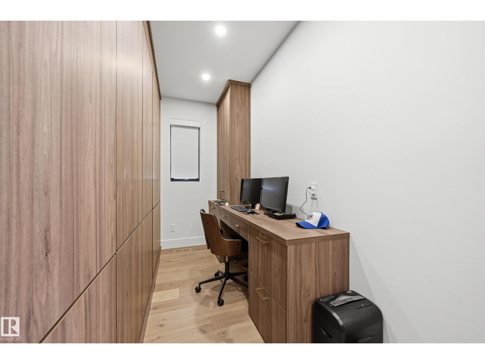 Experience luxury living in this stunning 5,700 sq ft smart home in Edmonton’s prestigious Parkview neighborhood. Just one year old, the home features soaring ceilings, floor-to-ceiling windows, hardwood floors, designer lighting, and a dramatic four-storey glass staircase. The Italian-designed chef’s kitchen includes premium appliances, custom cabinetry, and a waterfall island. The expansive primary suite offers a spa-inspired ensuite with heated floors, steam shower, soaking tub, walk-in closets with LED lighting, and a private patio. Fully integrated smart technology controls lighting, climate, blinds, security, and audio. Additional highlights include a four-level elevator, entertainment basement with gym, bar, golf simulator, guest suite, a 6-7 car EV-ready garage, and a 1,600 sq ft rooftop patio with hot tub and breathtaking city and ravine views. (id:63190)