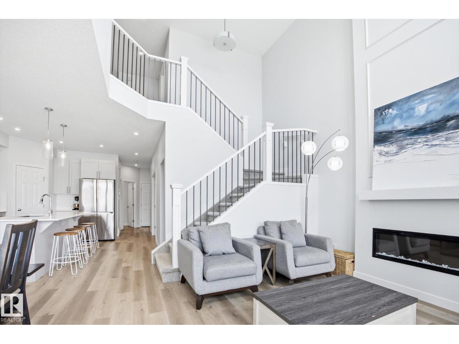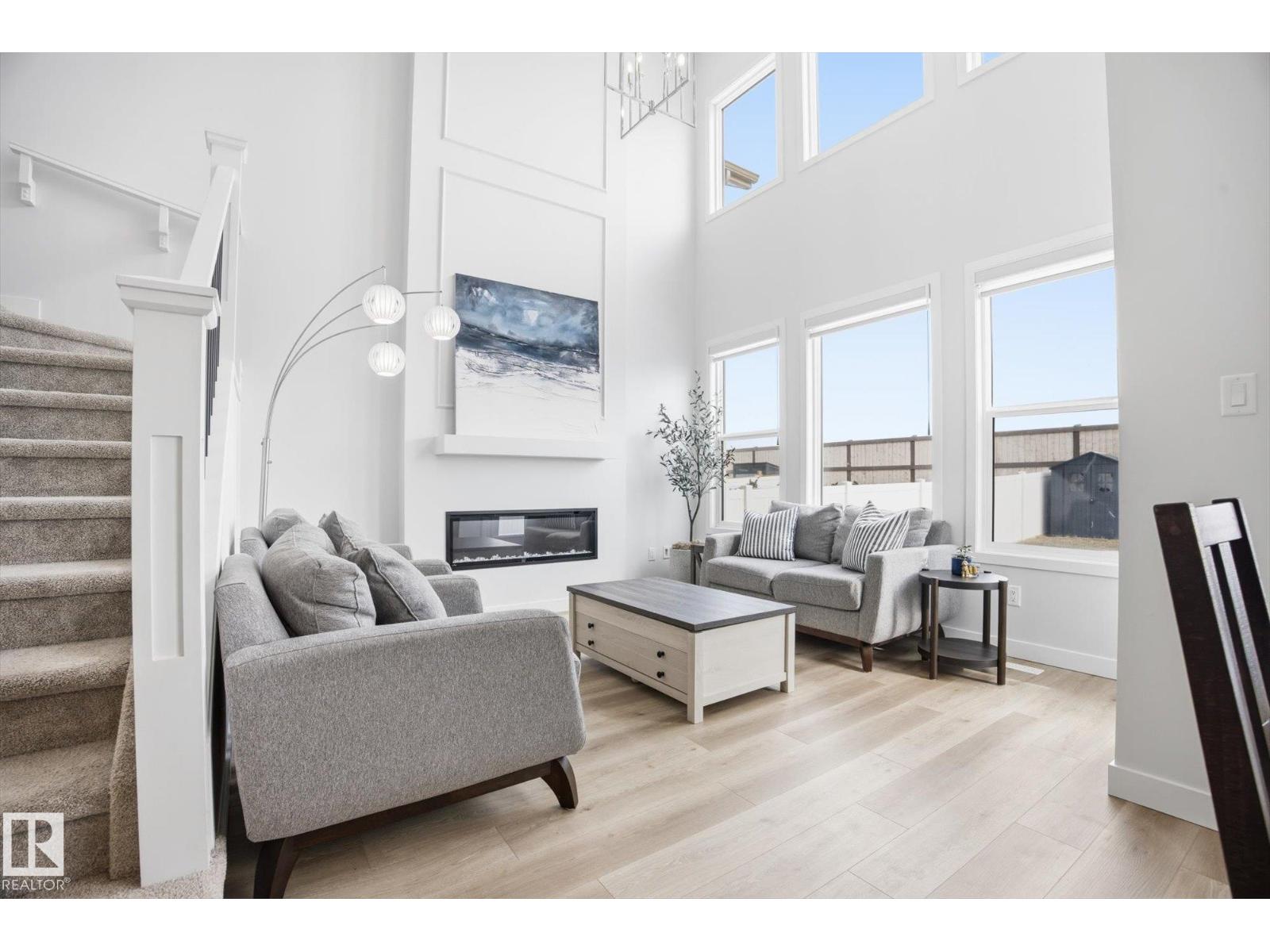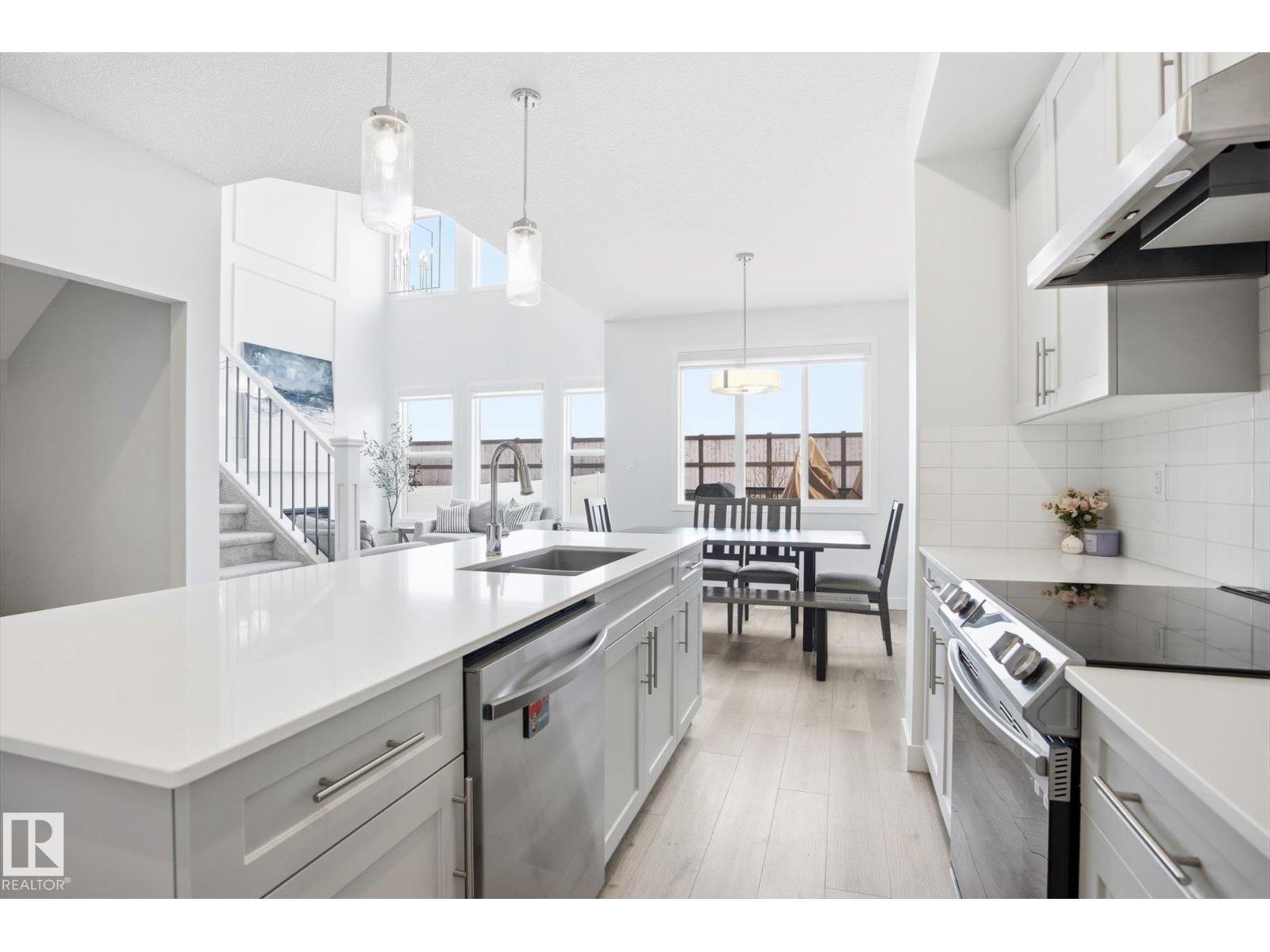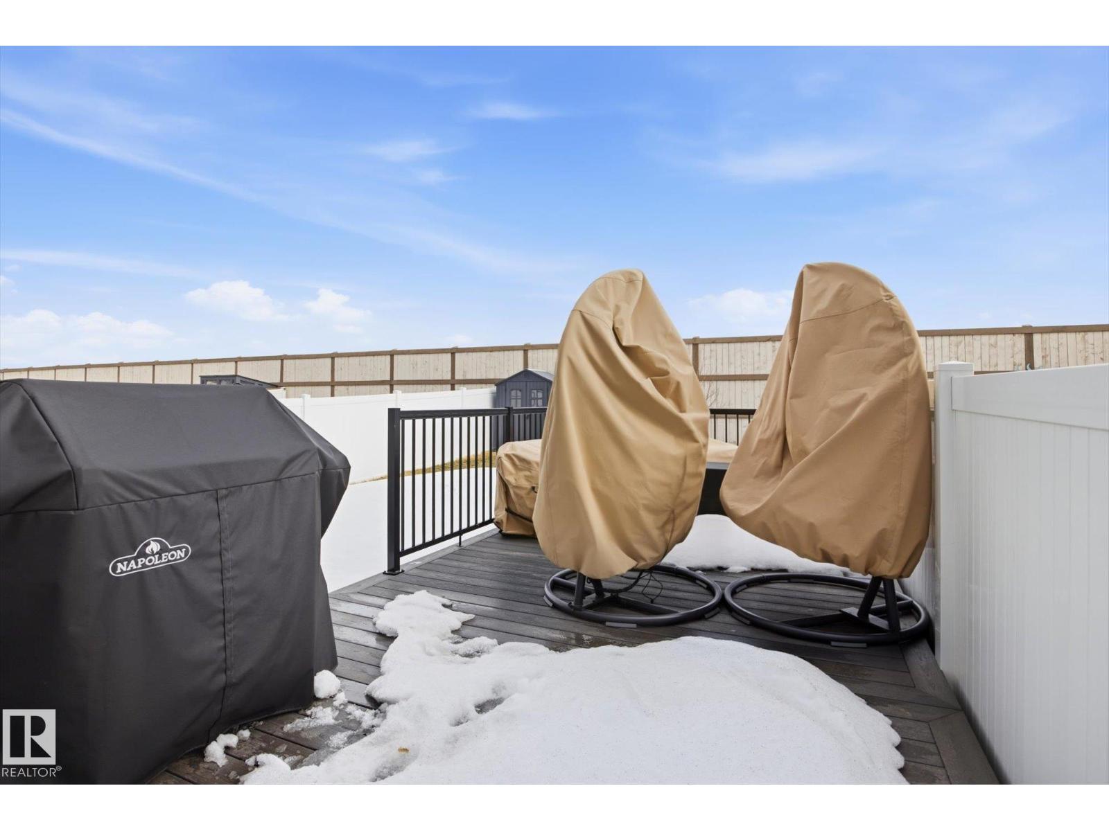 ~ 4 BEDROOM, 3.5 BATHROOM TWO STOREY ~ FULLY FINISHED BASEMENT ~ CENTRAL AIR CONDITIONING ~ DOUBLE ATTACHED GARAGE ~ QUIET LOCATION in SHERWOOD PARK ~ FULLY LANDSCAPED including a LARGE MAINTENANCE FREE DECK ~ Welcome to the “Calypso,” an exceptional home by award-winning Pacesetter Homes in the heart of Summerwood, just steps from scenic walking trails. The main level impresses with luxury vinyl plank flooring and a dramatic open-to-above great room filled with natural light. The chef-inspired kitchen features quartz countertops, a tile backsplash, an island with a flush eating bar, and an undermount sink. A discreet two-piece powder room and versatile flex space complete the main floor. Upstairs, the primary retreat offers a walk-in closet and a four-piece ensuite, complemented by two additional bedrooms, a stylish main bath, and a spacious bonus room. Fully finished basement with bedroom, den, full bath & Family Room. BONUS: Water Softener and Radon Gas pump installed. Home was completed in Oct 2023. (id:63190)