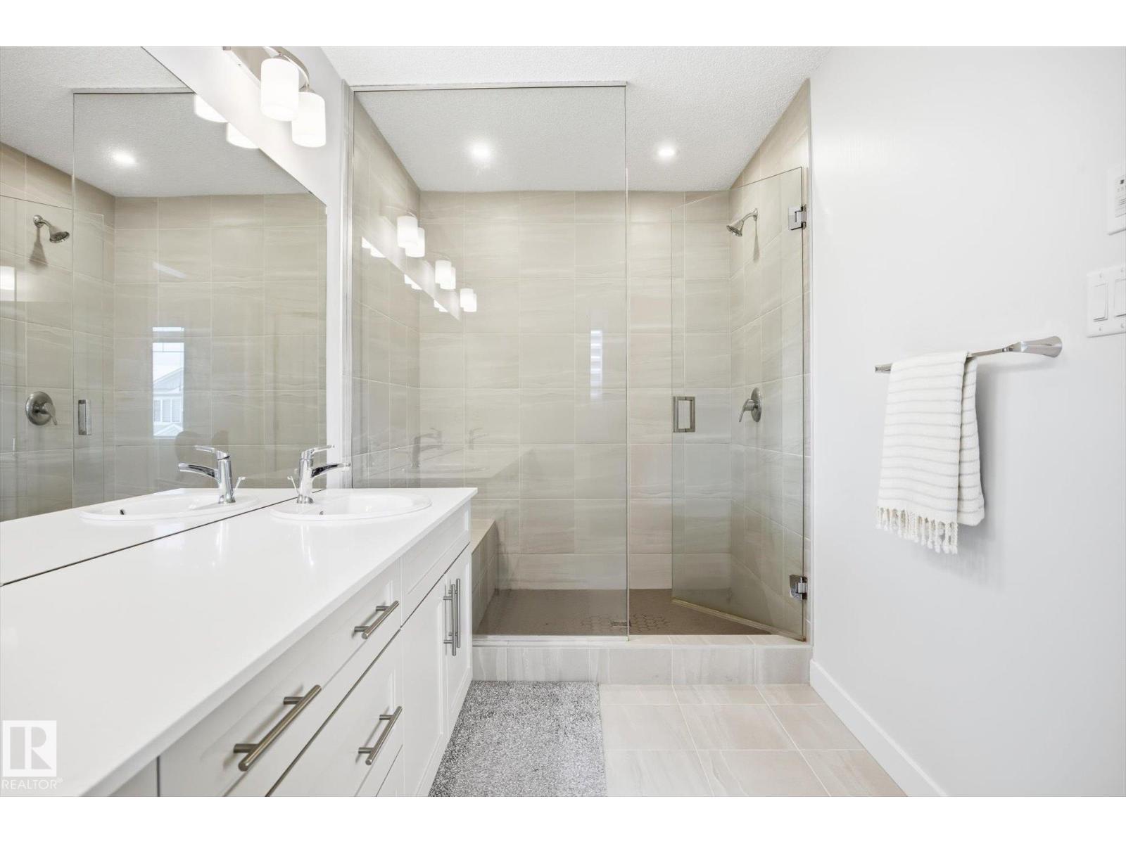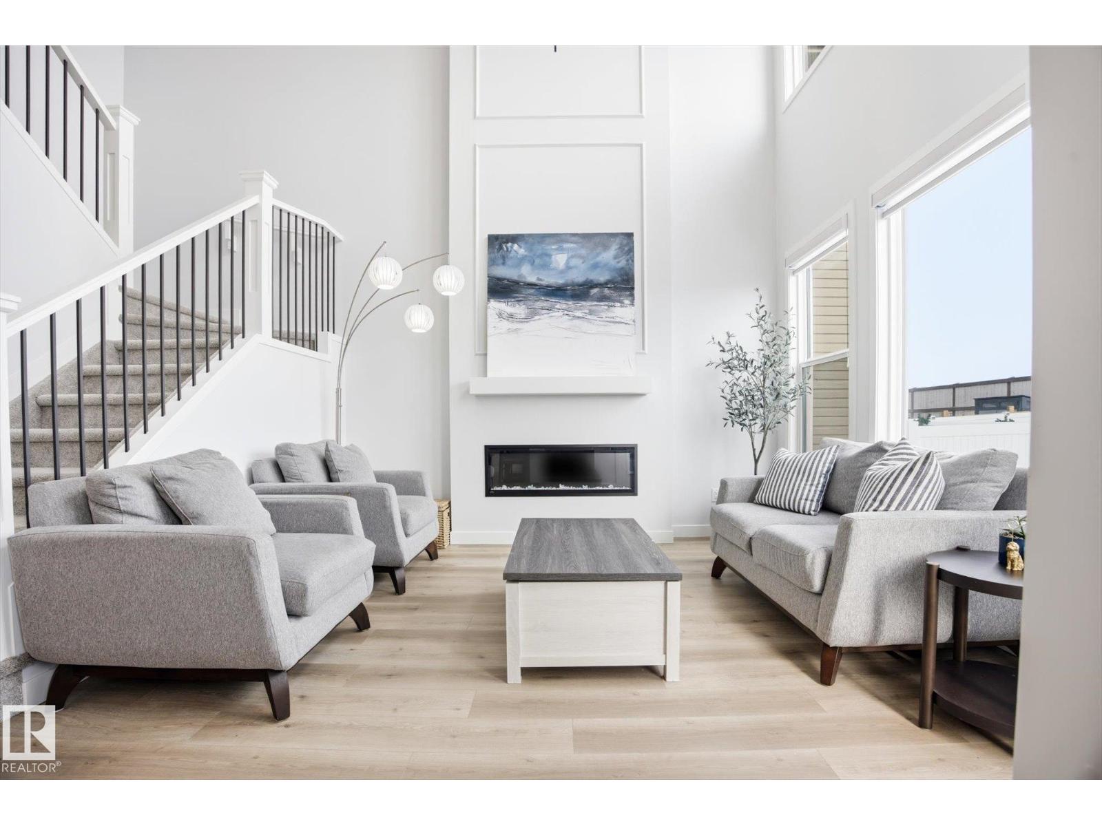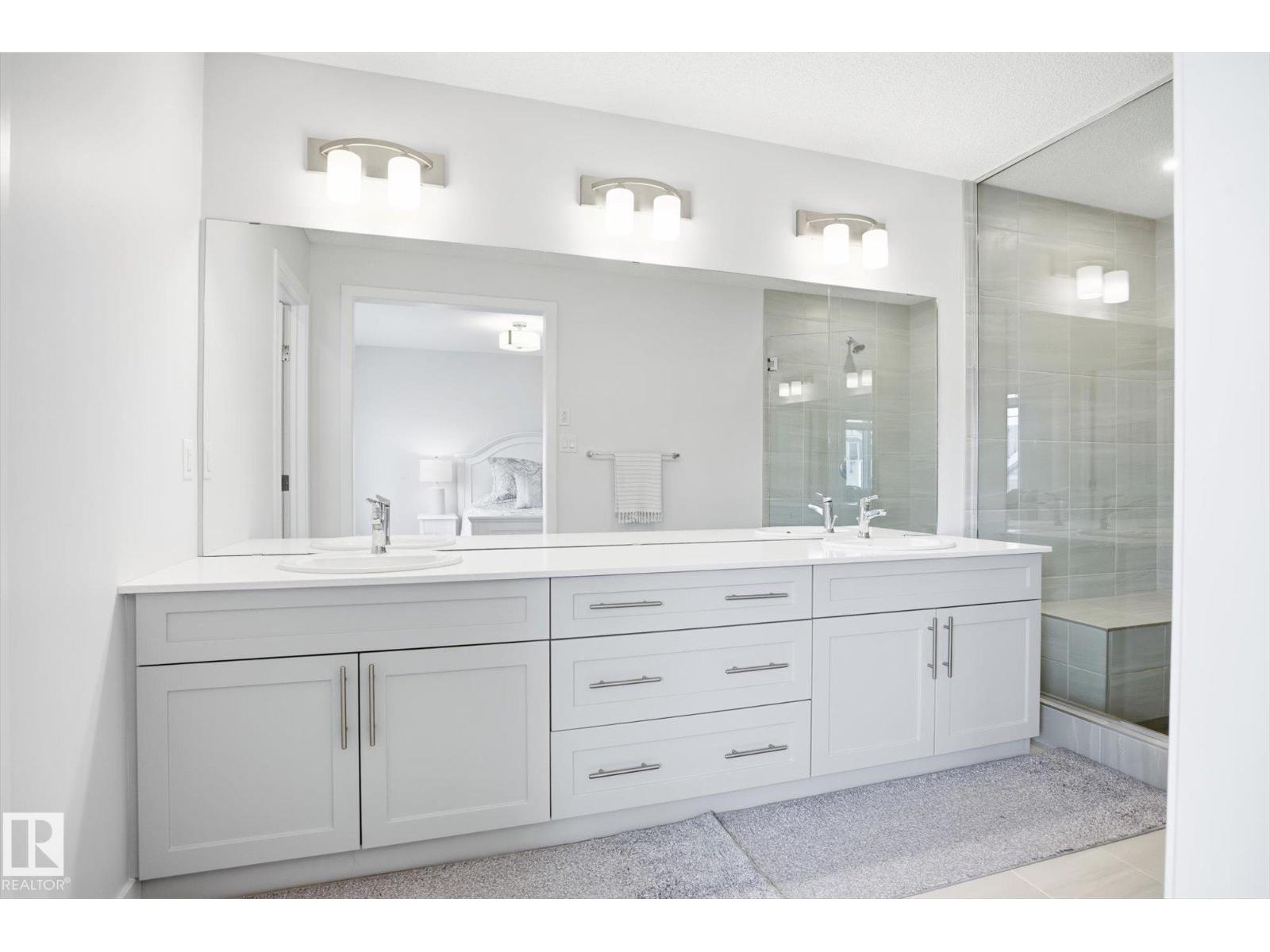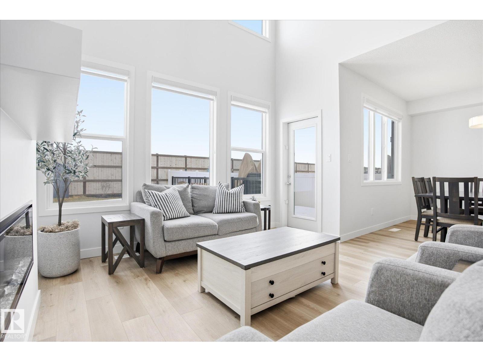~ 4 BEDROOM, 3.5 BATHROOM TWO STOREY ~ FULLY FINISHED BASEMENT ~ CENTRAL AIR CONDITIONING ~ DOUBLE ATTACHED GARAGE ~ QUIET LOCATION in SHERWOOD PARK ~ FULLY LANDSCAPED including a LARGE MAINTENANCE FREE DECK ~ Welcome to the “Calypso,” an exceptional home by award-winning Pacesetter Homes in the heart of Summerwood, just steps from scenic walking trails. The main level impresses with luxury vinyl plank flooring and a dramatic open-to-above great room filled with natural light. The chef-inspired kitchen features quartz countertops, a tile backsplash, an island with a flush eating bar, and an undermount sink. A discreet two-piece powder room and versatile flex space complete the main floor. Upstairs, the primary retreat offers a walk-in closet and a four-piece ensuite, complemented by two additional bedrooms, a stylish main bath, and a spacious bonus room. Fully finished basement with bedroom, den, full bath & Family Room. BONUS: Water Softener and Radon Gas pump installed. Home was completed in Oct 2023. (id:63190)