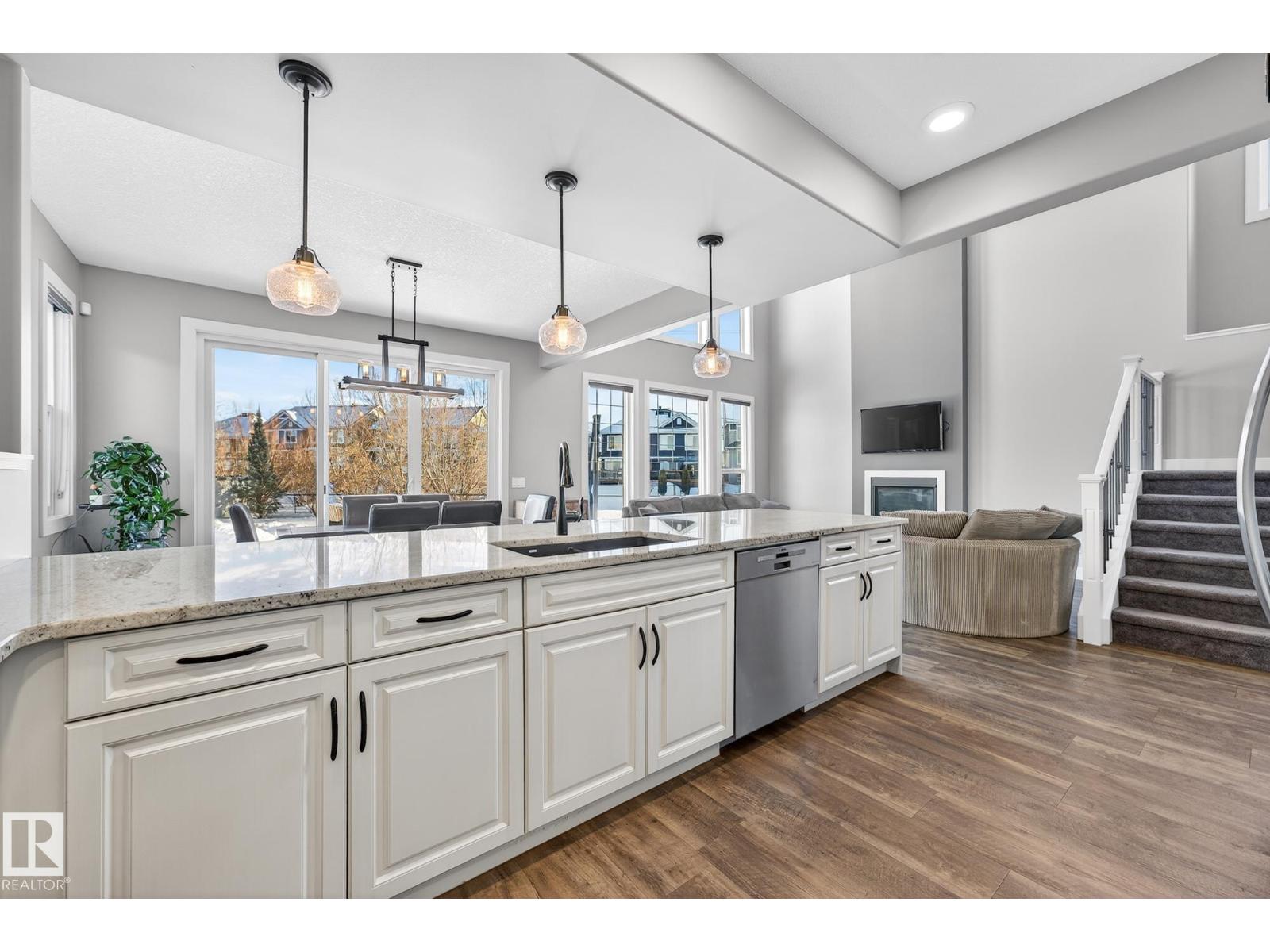 AC, IRRIGATION SYSTEM, TRIPLE TANDEM HEATED GARAGE! WELCOME to this exceptional 5-bedroom, 3.5-bath home in Lake Summerside, offering space, style, & a true lifestyle upgrade. Tucked into a quiet cul-de-sac, this fully finished home features no direct rear neighbours and open views behind, creating a rare sense of privacy and light. The bright, open-concept main floor showcases soaring ceilings, oversized windows, & a chef-inspired kitchen with quartz countertops, ceiling-height cabinetry, and stainless steel appliances. Enjoy seamless indoor-outdoor living with triple patio doors leading to a maintenance-free deck with Gas BBQ hookup, Irrigation System, & Hot Tub. Stay cool with central A/C. Upstairs offers a luxurious primary suite with ensuite and walk-in closet, plus 3 additional bedrooms and laundry. The finished basement adds a Rec Room, 5th bedroom, and full bath. Enjoy exclusive year-round lake access—this is Summerside living at its finest.Make your move! (id:63190)