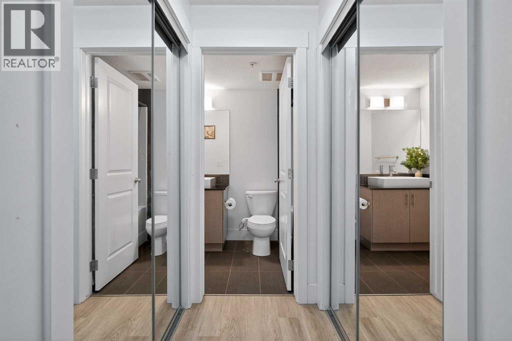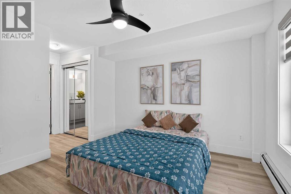 Come to the Open House on Saturday, April 11th, from 2 pm to 4 pm. Discover exceptional ground-floor living in this brilliantly lit corner unit at #4106, 240 Skyview Ranch Road NE. Spanning roughly 940 square feet, this two-bedroom, two-bathroom residence welcomes you with a wonderfully spacious and dedicated entryway, instantly providing a house-like feel that keeps the main living areas distinct and clutter-free. Moving inside, the open-concept living room is bathed in gorgeous natural light courtesy of the coveted South and East-facing windows, creating a warm and inviting atmosphere throughout the day. The interior boasts a refined, modern aesthetic with crisp paint and durable luxury vinyl plank flooring, both newly updated in 2025. Cooking and entertaining are effortless in the stylish kitchen, beautifully finished with sleek quartz countertops, a casual breakfast bar, and a stainless steel appliance package. The primary bedroom serves as a private retreat complete with his and hers closets and a full ensuite bathroom, while the generous second bedroom and additional bathroom offer fantastic versatility for family or a home office. What truly sets this property apart is the unparalleled convenience of its layout. Ground-level patio doors open directly to the outside, allowing you to bypass elevators and communal hallways entirely. This creates a seamless daily routine, especially for families, as students can step out the door and stroll straight across the street to Prairie Sky School. Outdoor enthusiasts will love having soccer and baseball fields just steps away, and commuting is a breeze with a nearby bus stop and quick access to local restaurants and shopping. Complete with a heated underground parking stall conveniently located right next to the elevator, plus abundant street parking directly outside your patio for guests or a second vehicle, this home flawlessly combines smart design with an unbeatable, walkable lifestyle. (id:63190)
