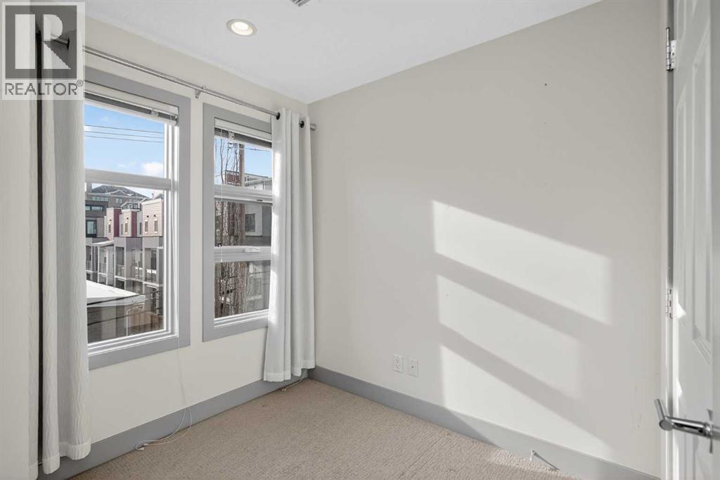This home offers 1438 square feet, spread across two levels and rooms know what they’re meant to be. Most condos on the market are single-level and tightly packed, but here the space has room to breathe. One of the bedrooms tucks away a quiet nook—use it as an office, a media space, or somewhere to retreat when the day calls for it—along with a generous walk-in closet. Outside, the neighbourhood unfolds at an easy pace: Marda Loop sits about a fifteen-minute walk away—close enough for coffee, dinner, and errands, far enough to keep the peace at home. Set on the top floor and at the end of the building, this two-storey condo lives within a small eight-unit complex that feels more private than most. The layout is balanced and deliberate, with two true bedroom suites, each with its own ensuite, but thoughtfully different in their storage: one with a walk-in closet, the other with a wide, wall-to-wall closet that keeps everything within easy reach. The main level opens beneath nine-foot ceilings, anchored by a kitchen designed for real use rather than display—built around a quartz island, a gas stove, and upgraded stainless appliances—flowing naturally into a living area that feels open without feeling exposed. Upstairs, the separation continues, along with in-suite laundry and one of the home’s quieter luxuries: outdoor space on both levels. Two south-facing balconies—one above, one below—catch the sun from morning through evening and offer a sense of openness that’s hard to find in condo living. Below it all, a titled stall in the heated, secured underground parkade keeps the practical side of life as thoughtfully handled as the rest. (id:63190)