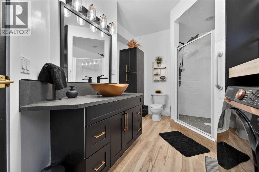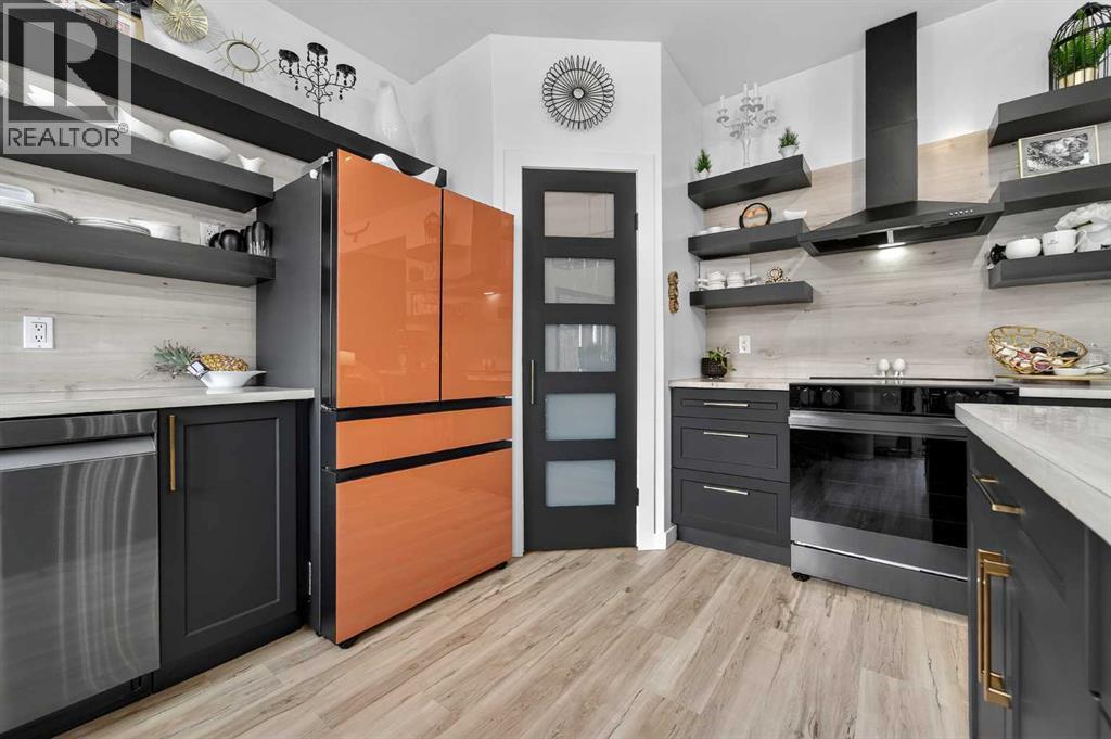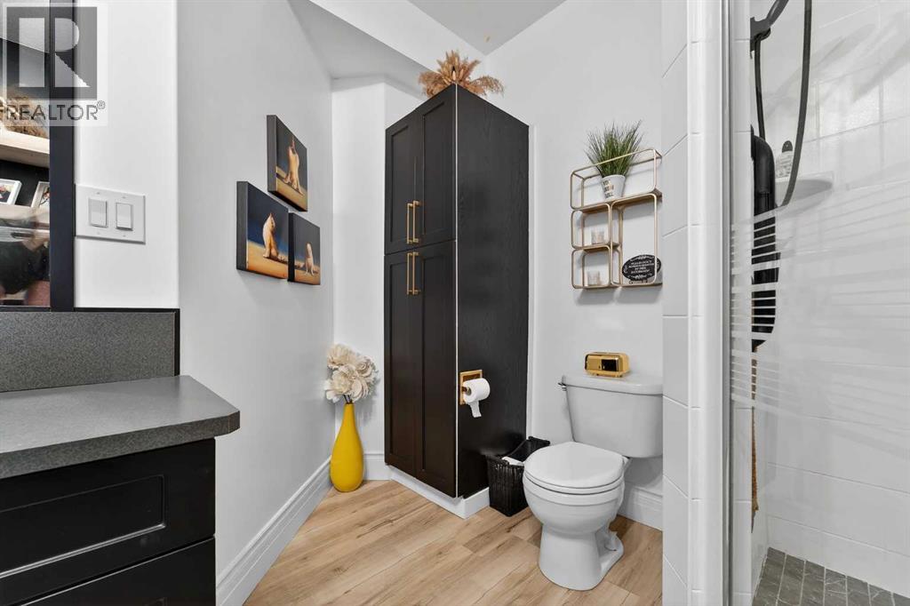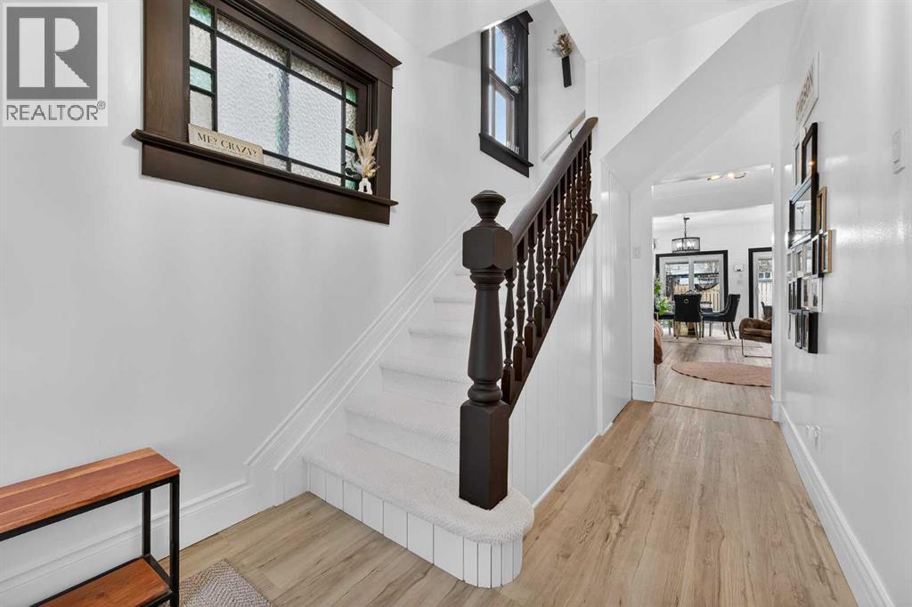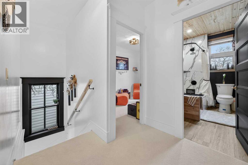 Located in the heart of London Road, just steps from tree lined streets, parks, and within walking distance to downtown shops, restaurants, and everyday amenities, this fully renovated character home offers a rare combination of historic charm and modern design. Originally built in 1910, the home has been thoughtfully updated from top to bottom while still maintaining the character that makes this neighbourhood so desirable. The main floor features a bright and open layout where the living room flows naturally into the dining area and kitchen, creating a comfortable space for both everyday living and entertaining. The kitchen offers sleek black cabinetry, open shelving, high end appliances, and a large island with seating, all tied together with modern finishes and clean design. Two sliding patio doors extend the living space outdoors onto a full width composite deck, offering plenty of room for lounging, dining, and enjoying the backyard. Also on the main floor is a unique and highly functional space with its own exterior entrance, making it ideal for a home office, studio, or small home based business. This room could also function as a main floor bedroom, with a three piece bathroom and laundry located directly beside it, adding to the flexibility of the layout. Upstairs, you’ll find a spacious primary bedroom complete with a large walk in closet, along with two additional bedrooms and a full four piece bathroom. The upper level continues the same balance of character and modern updates, creating a cohesive feel throughout the home. Throughout the property, black accents, feature walls, and updated finishes bring a modern edge while still respecting the original design. The exterior has also been fully redone with updated siding, windows, and a welcoming front porch that adds to the home’s curb appeal. Situated on a quiet street in one of Lethbridge’s most established neighbourhoods, this home offers walkability, character, and a level of flexibility that is rare ly available, all within minutes of the downtown core. (id:63190)