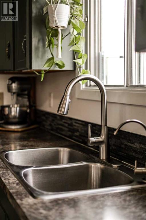 Four bedrooms under $500,000 in the Crowsnest Pass is genuinely hard to find, and this bi-level in Bellevue delivers exactly that. With 1,036 square feet on the main level and an additional 900 square feet below, there is real room here for a growing family to spread out, settle in, and make their own. The living room centres around a floor-to-ceiling stone wood-burning fireplace that gives the space an unmistakable warmth and character you simply cannot replicate. Three bedrooms sit on the main floor alongside a renovated five-piece bathroom that is one of the home's true highlights. The double vanity, live-edge wood countertop, and subway tile backsplash bring a thoughtful, finished feel to a space that gets used every single day. Downstairs, a fourth bedroom and a renovated three-piece bathroom with a corner shower add both function and privacy, making the lower level a natural fit for older kids, extended family, or overnight guests. A generous games room anchors the basement, and an additional flex space opens the door to a fifth bedroom, a home office, or whatever the next chapter of your life actually calls for. Outside, the fully fenced yard gives kids and pets room to run. A deck off the back of the home creates an easy outdoor living space, garden beds are ready for the growing season, and a storage shed keeps everything organized. Back lane access also leaves room for a future garage. Crowsnest Pass has seen steady growth over the past several years, with rising property values and increasing investment in the community reflecting strong demand from people who want to live differently. Bellevue sits quietly within that momentum, close to schools, parks, the local arena, and a community trail system that connects the entire Pass. Skiing at Pass Powderkeg, Castle Mountain, and Fernie are all within reach for families who live for the mountains as much as they live in them. This home has been loved by a young family and is ready for the next one. (id:63190)
