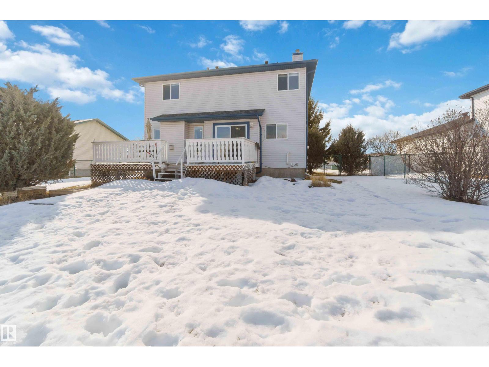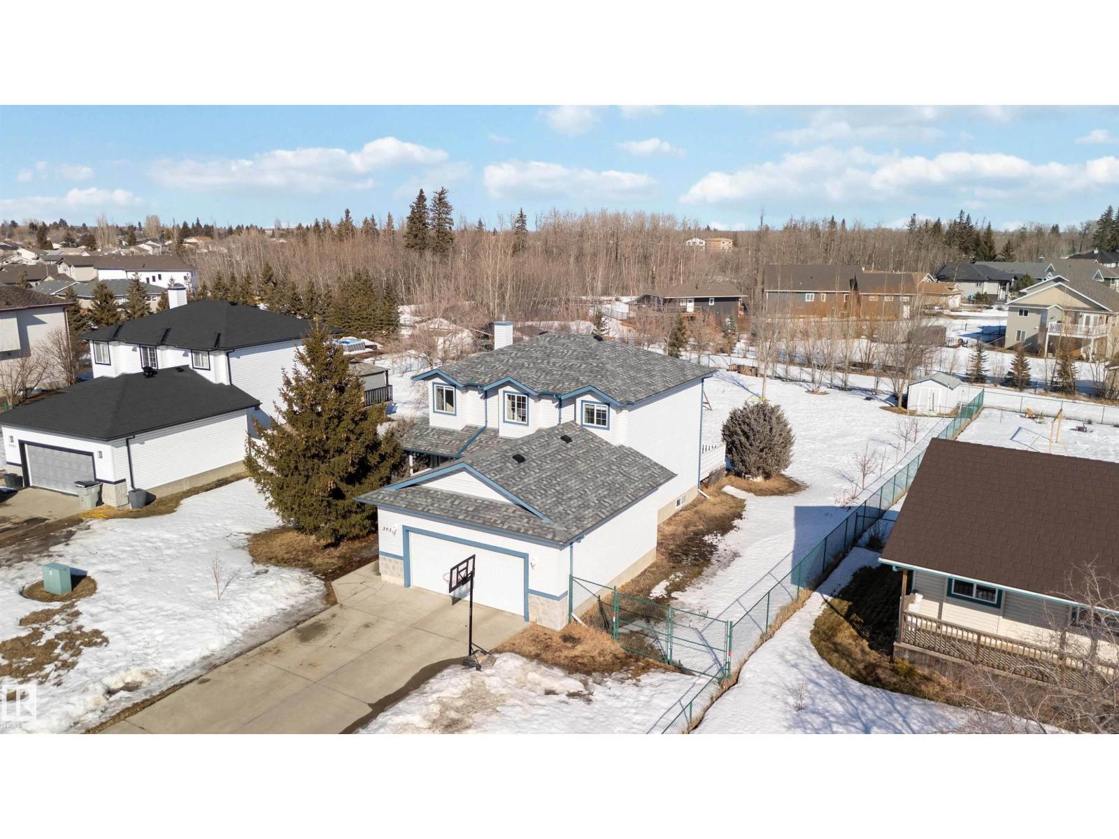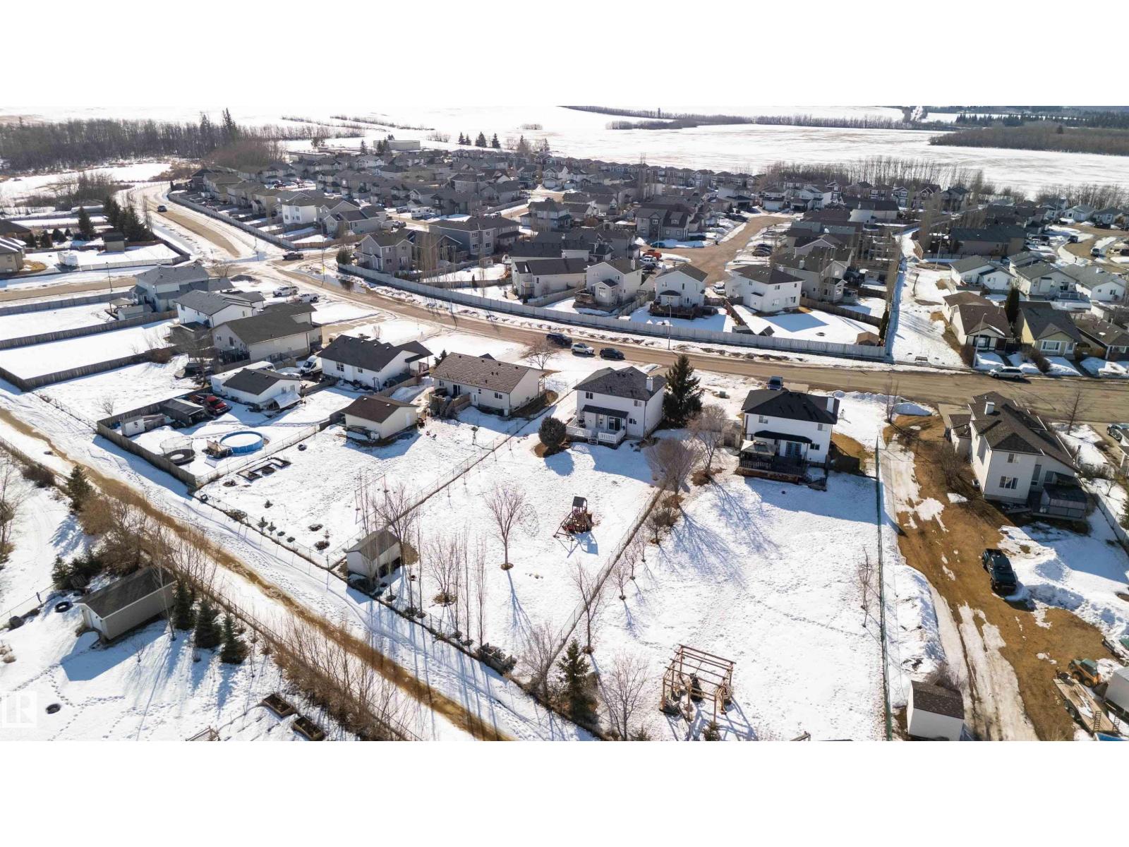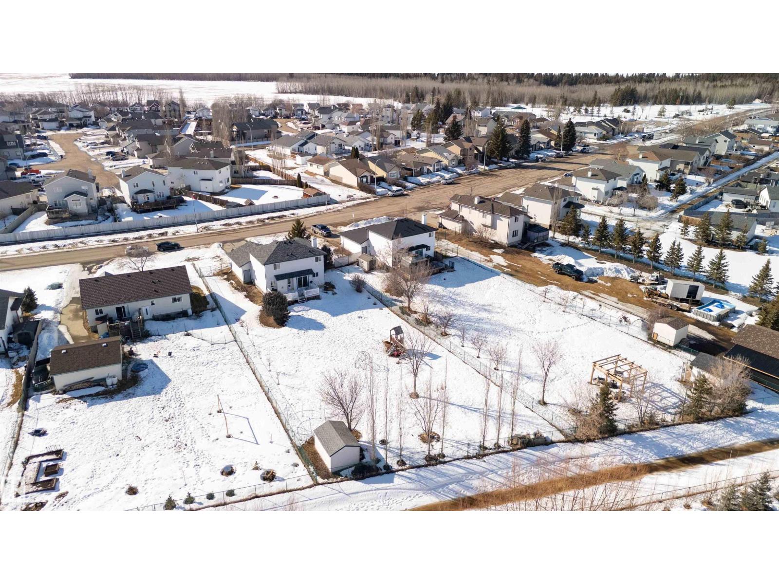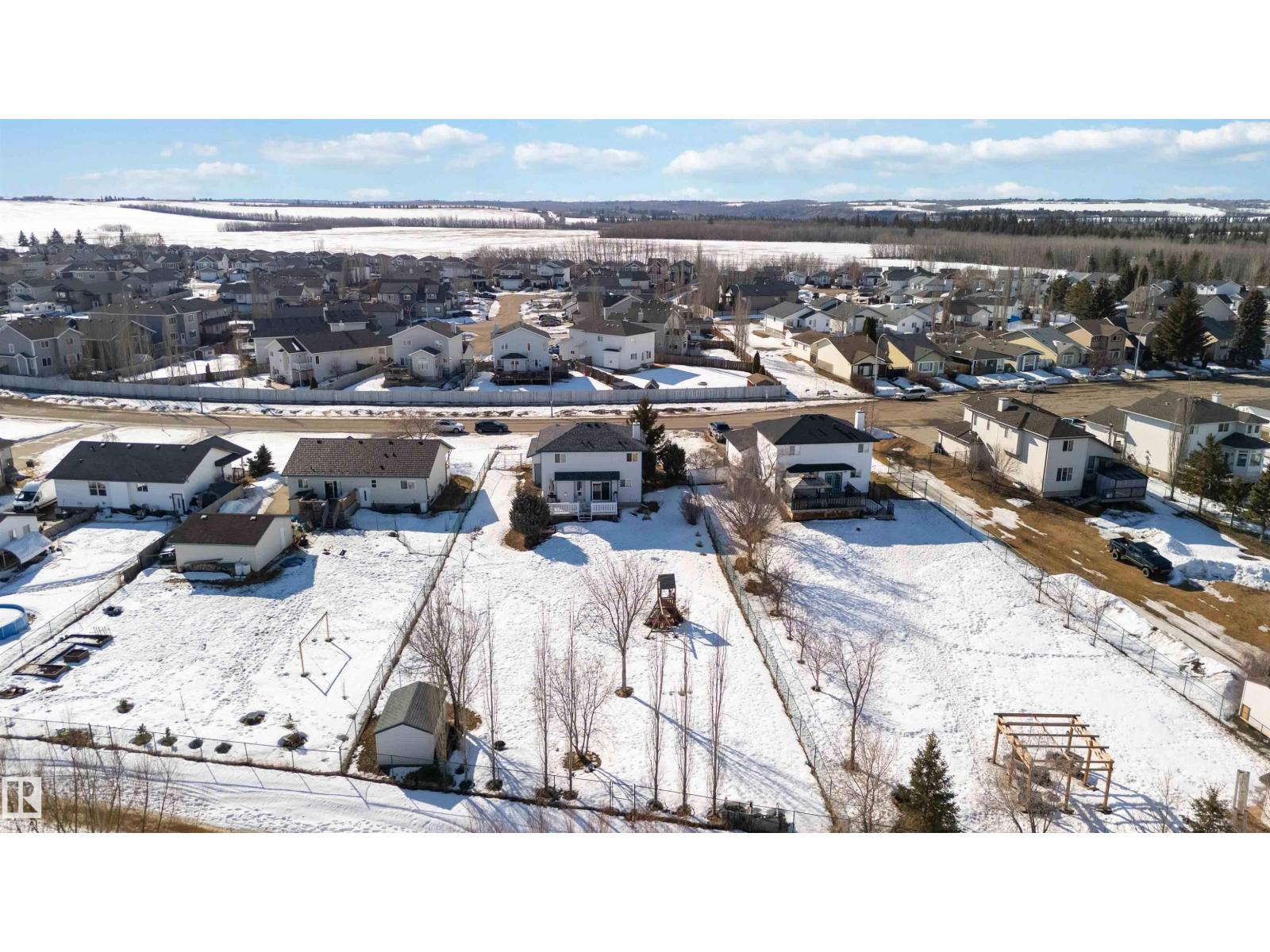 Ever dream of owning a .4-acre lot with the convenience of city water? This solid 2004-built, 1,816 sq. ft. two-storey home offers the perfect balance of massive outdoor space for the kids to play without the high maintenance of full acreage living. Featuring 5 bedrooms, two main-floor living rooms, and a fully developed basement with an additional rec room, there is space for everyone. The home is topped with a new roof (2024) and features a bright, west-facing layout. Outside, you’ll find a large garden, numerous fruit trees, a shed, and a deck with a gas BBQ hookup. The property includes a double attached garage and ample parking for an RV. Perfectly situated for convenience, you are walking distance to the elementary school and just 15 minutes from CFB Edmonton. This is a rare opportunity to secure a spacious family home on a prime, oversized lot. (id:63190)
