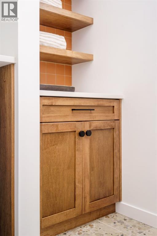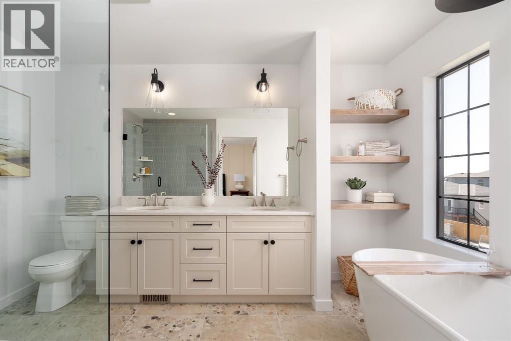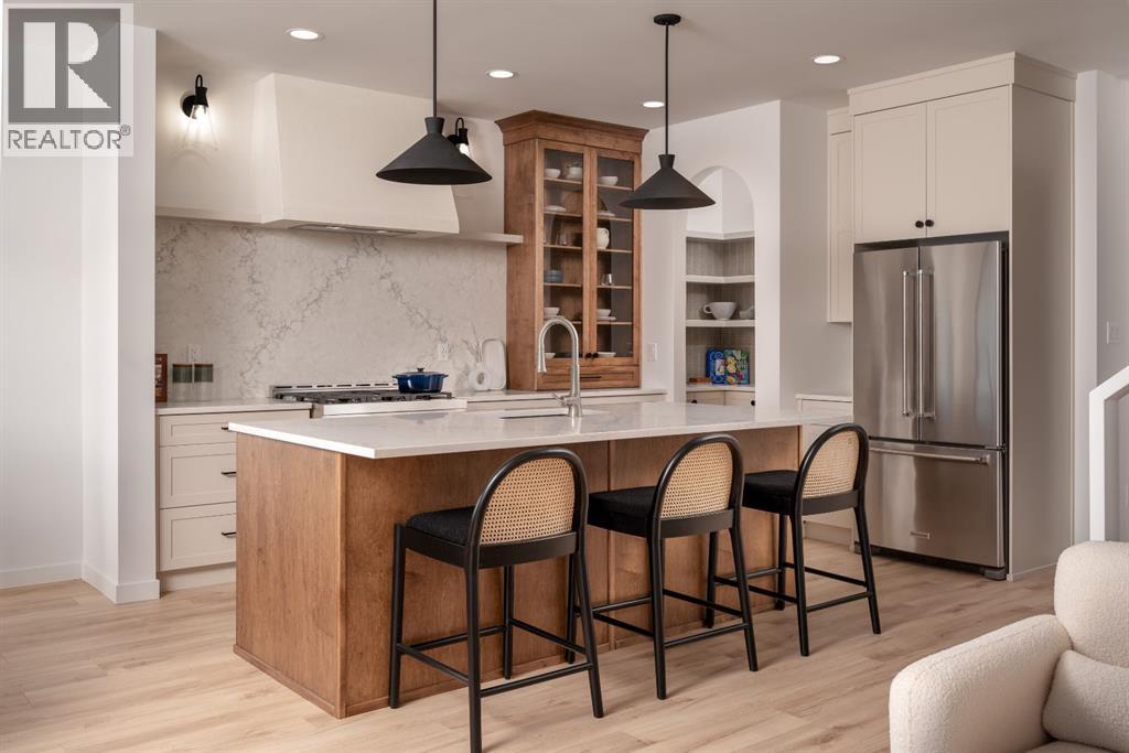 Avonlea show home for sale. Take advantage of all the upgrades and inclusions. Here’s your chance to own a stunning 3 bedroom, 2.5 bathroom show home full of style and thoughtful details. Featuring upgraded beige James Hardie accent siding and elegant beige fieldstone accents, plus custom painted MDF and stained maple cabinetry, this home is designed to impress. Premium touches include Kohler fixtures, white quartz countertops with soft grey veining, a custom ensuite shower tile pattern, and a kitchen with a plastered hoodfan and spice shelf. Bathrooms and laundry feature beige terrazzo-inspired tile, and stained header details add character to the living room and primary bedroom windows. Bonus features include a spacious deck, Fenced, fully landscaped front and back yard, mudroom, walk in pantry, bonus room, washer and dryer, and air conditioning, painted garage, making this home as functional as it is beautiful. Basement is undeveloped but laid out for future 4th bedroom, bathroom and family room. Great location with walking distance to pond and playground. NHW (id:63190)