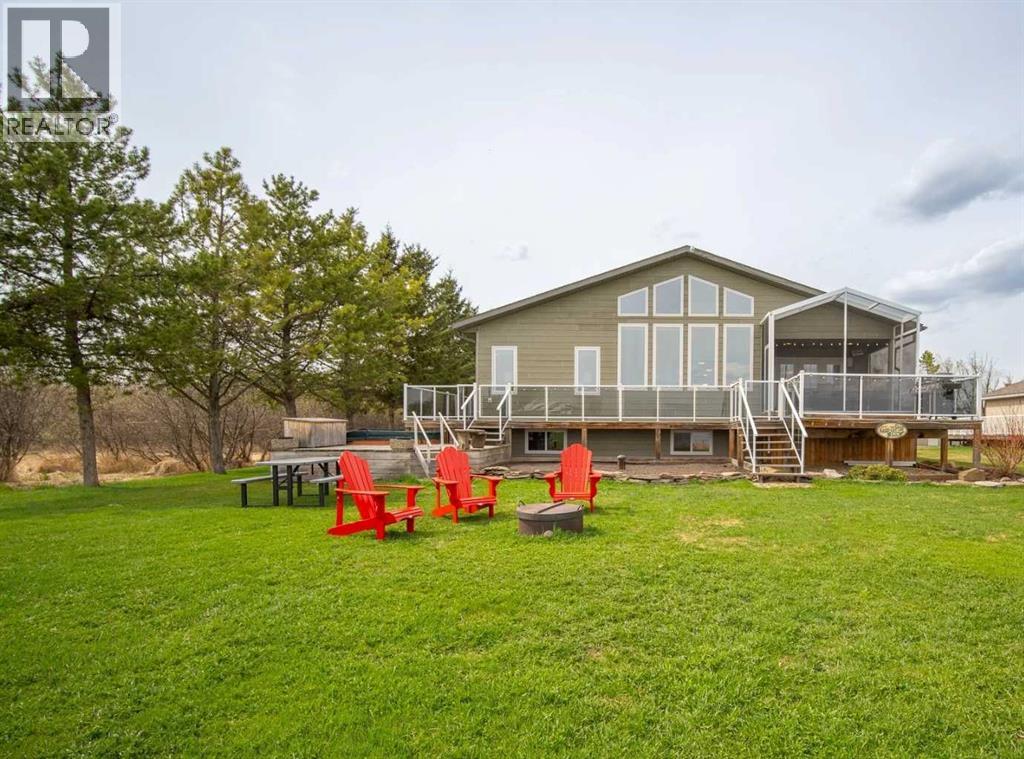 Discover this stunning 7 bedroom waterfront home on Pigeon Lake with almost 3500 sft of developed living space! Only 1 hour from the city this four season home is perfect for families, entertainers, outdoor lovers, and Airbnb hosts alike. The bright main floor features an A-frame living room, cozy wood-burning fireplace open to your dining and well-appointed kitchen - all with Bose sound system. Step out onto your screened-in room, soak in the hot tub, or host gatherings on the expansive patio. The beautiful private primary suite features lake views, an ensuite, and walk-in closet. Main floor laundry, two additional bedrooms, a full bathroom and family theatre room complete the main floor. The fully finished basement adds four more bedrooms, a full bath, room for multiple families to stay, all with their own space! The detached shop features a work area, 2 single bays great for storing all your toys and a whole home back up generator! Don’t miss this rare opportunity to own a piece of lakefront paradise! (id:63190)