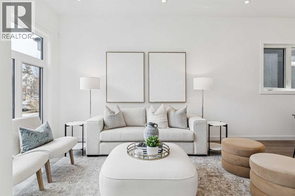 Open House Sat April 25, 1pm-4pm! Situated on a 25' x 135' south-backing lot on a quiet, tree lined street in sought after Hillhurst! Located just five doors down from West Hillhurst Park (soccer field, baseball diamond, & playground), this newly constructed detached home offers over 2,800 sq ft of executive level living space. A bright & spacious front foyer opens into an expansive living area with large windows; gleaming hardwood floors throughout the main level beautifully accentuate the soaring 10ft ceilings. A centrally located dining area sits adjacent to the kitchen making it ideal for entertaining. The chef inspired kitchen features a commercial grade Jenn-Air package including gas cook top, wall oven,, & SS refrigerator; a large island offers ample seating & generous prep space. The commercial grade hood fan is a must have for serious chef's. An informal living area resides at the south end of the floor plan & is flooded with natural light through floor-to-ceiling South facing windows; the stone clad gas fireplace & custom millwork adds warmth & ambience. The South backyard is made even more impressive by the rare 135-foot lot depth which offers ample room for seating areas & green space/kids play space. A beautiful powder room & a spacious mudroom (with both open & closed storage) completes the main level. Open riser stairs lead you to the upper level where you will find three generously sized bedrooms, a convenient laundry room & a quiet study/office space (ideal for homework/working from home). The primary bedroom is a true sanctuary: large enough to accommodate a sitting area it features a custom walk-in closet & a luxurious 5-piece ensuite with heated floors, dual vanity, a deep soaker tub & standalone shower. Multiple skylights flood the upper level with natural light. The second & third bedrooms are spacious & include built-in closet organizers. The 4pc main bath also enjoys in-floor heat. The fully developed lower level features a large media area - perfect for movie nights - & is complemented by a nearby wet bar. A fourth bedroom & full bathroom provide an ideal setup for guests &/or extended family. The Hydronic in-floor Heating System is hooked up & operational & Central Air Conditioning has been already installed; working together they ensure comfort throughout all seasons. The double garage (built with 2x6 construction) provides room for vehicles & all of your gear. This home presents a great opportunity to live in one of the city’s most desirable inner city communities & is located just one block from Queen Elizabeth School (K–12), a few blocks to the shops & restaurants of Kensington, & just four blocks to Riley Park. The location offers an exceptional inner-city lifestyle with unmatched walkability & is ideal for active families & professionals alike, call today for more information! (id:63190)
